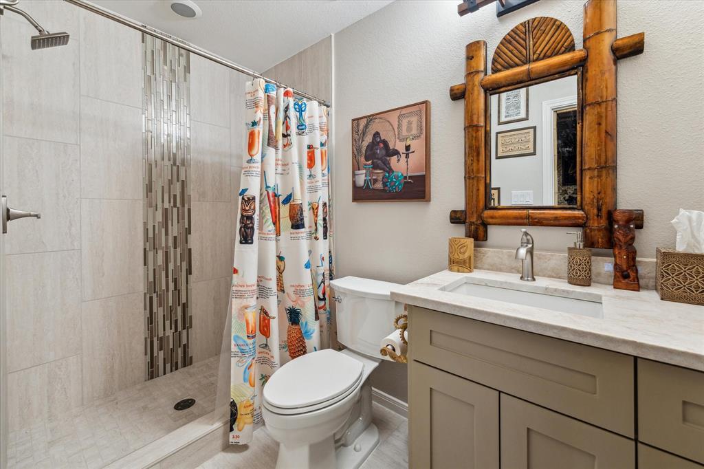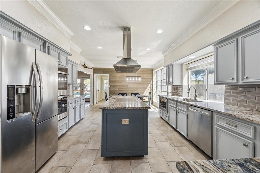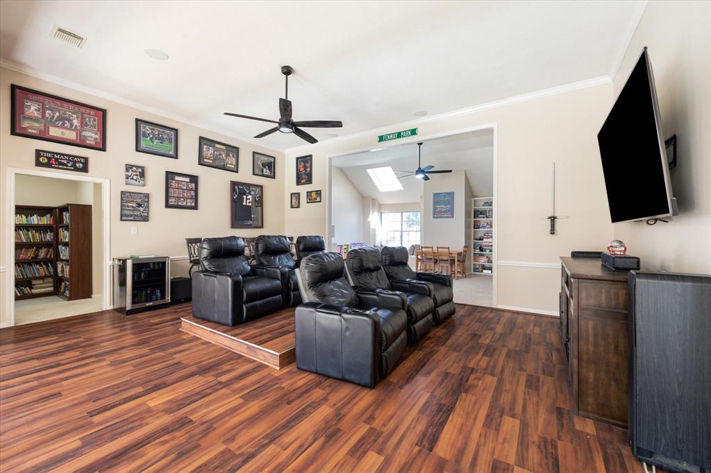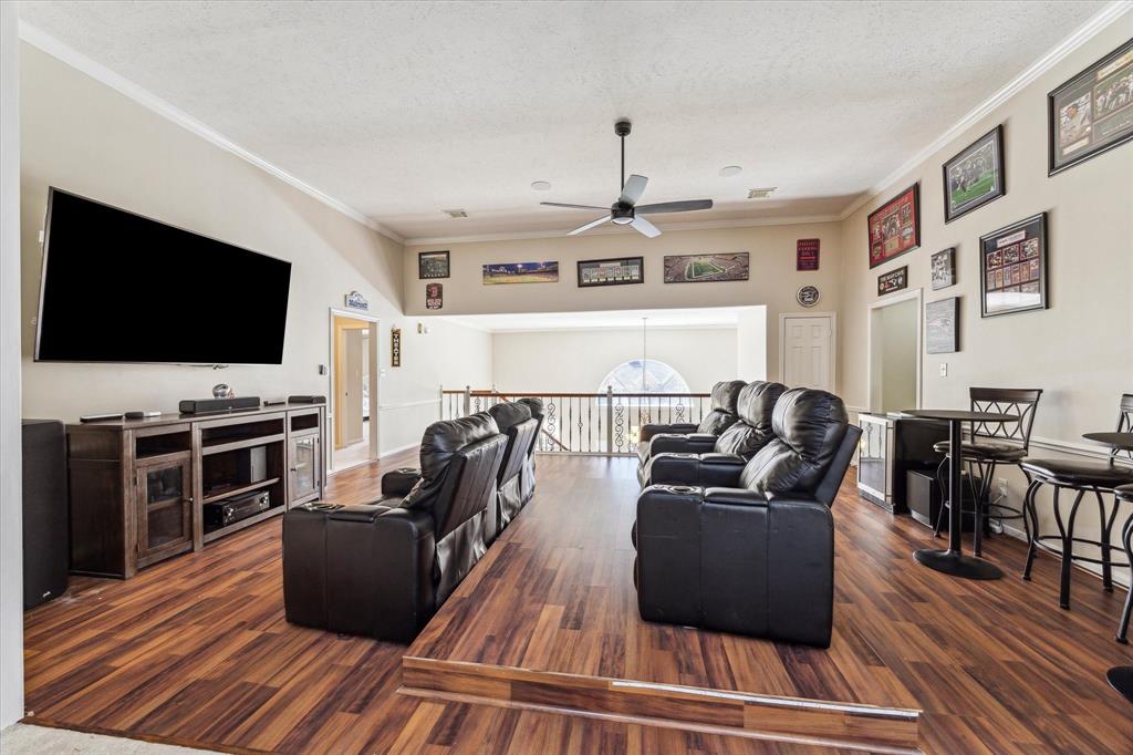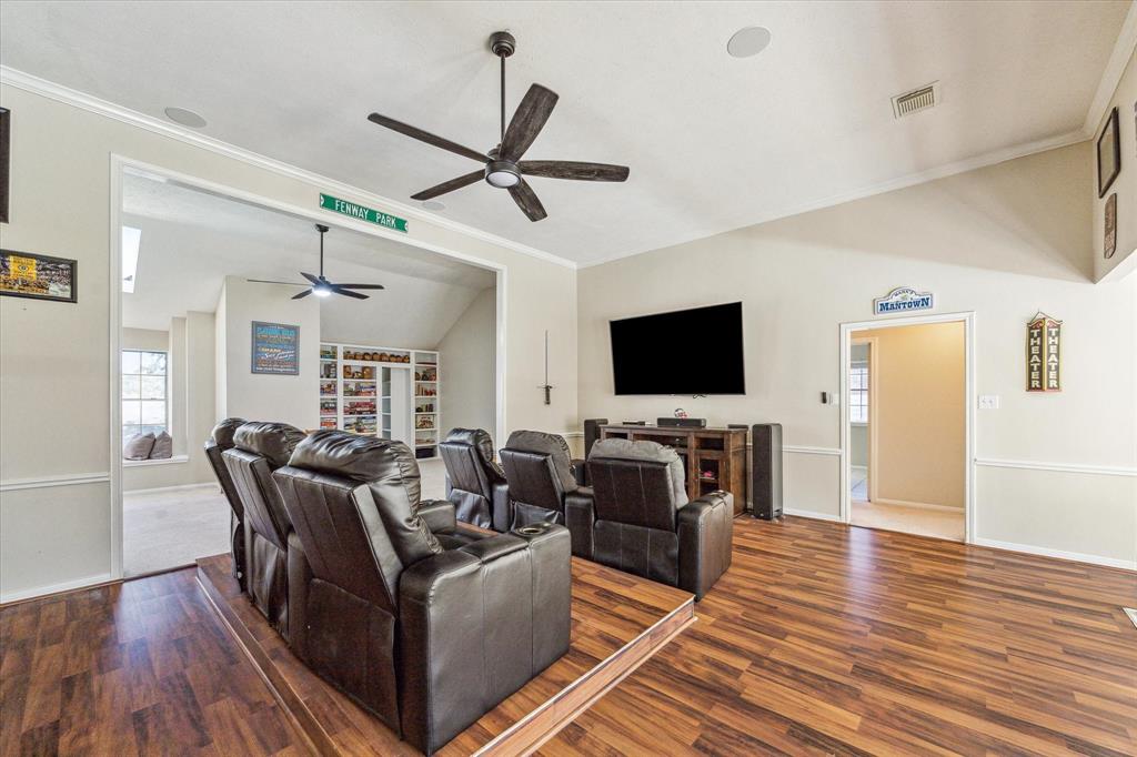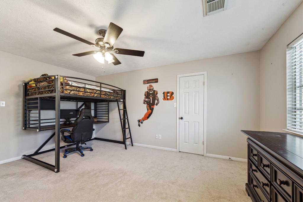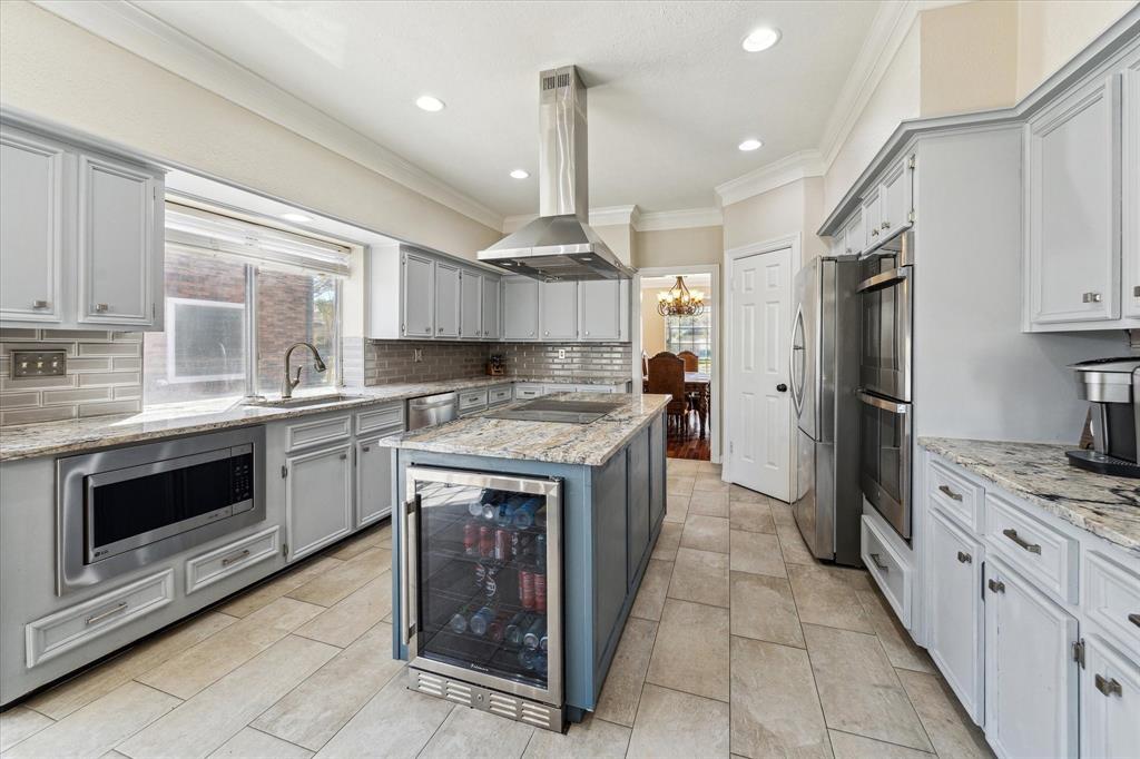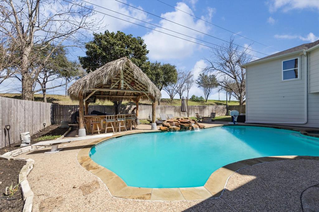 A rare find in Pin Oak Village, this 5,776 sqft. home offers an expansive layout on a quiet street. Designed for comfort & entertaining, this home features Brazilian hardwood floors, granite countertops, intricate moldings, & an island kitchen with walk-in pantry. The spacious primary suite is located downstairs, while upstairs offers a double game room with skylights—ideal for homeschooling or recreation. A hidden room with a full bath adds a unique touch & is one of six bedrooms this home offers. Additional highlights include a study with built-ins & ample storage. Step outside to your private backyard oasis, featuring a swimming pool, spa, extensive decking, & a tiki hut. With no rear neighbors, the property backs to a berm for added privacy. Pin Oak offers a low tax rate, great neighborhood amenities which include a pool, tennis and pickleball courts, & is zoned to highly acclaimed Katy ISD, specifically: Katy Elem. & Katy HS. Conveniently positioned for easy commuting & shopping.