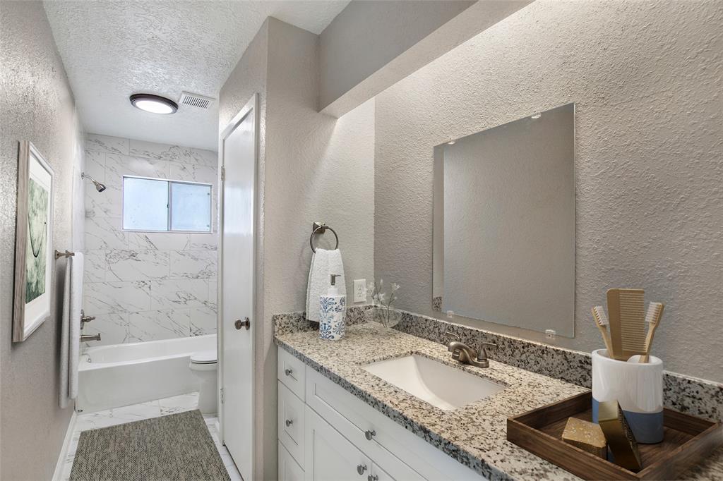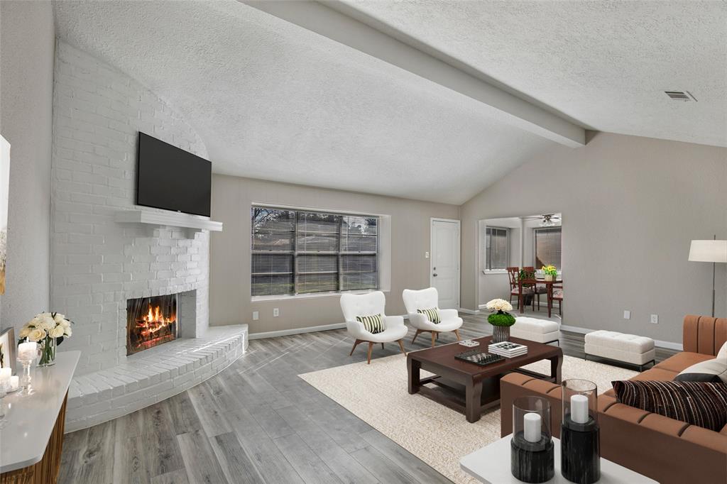 Welcome to 5510 Ashgate Drive, a charming single-story home in Spring, Texas, located in the Greengate Place community. This 3-bedroom, 2-bathroom home offers 1,641 sq. ft. of living space on a 6,955 sq. ft. lot. AC is 2019. The living room features high ceilings and a cozy wood-burning fireplace, perfect for relaxing or entertaining. The updated kitchen boasts granite countertops and modern appliances. The primary suite includes a walk-in closet and ensuite bath, while two additional bedrooms feature carpet and provide flexibility for family or guests. Durable tile and vinyl plank flooring, energy-efficient ceiling fans, and a two-car garage with a utility area add comfort and practicality. The fenced backyard is ideal for outdoor activities or quiet evenings. Conveniently located near shopping, dining, and major highways, this home is zoned to Anderson Elementary, Dueitt Middle, and Spring High School in Spring ISD.