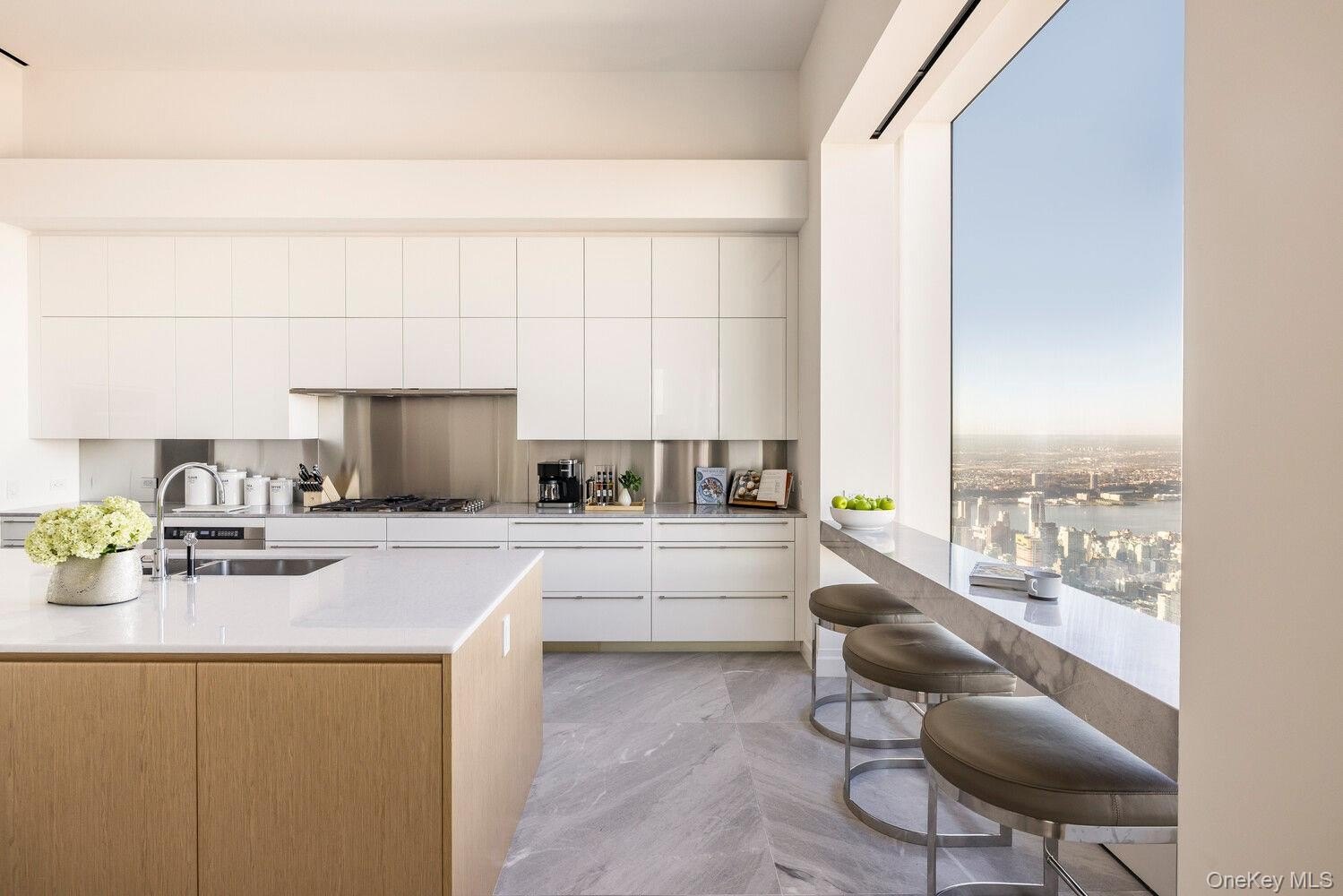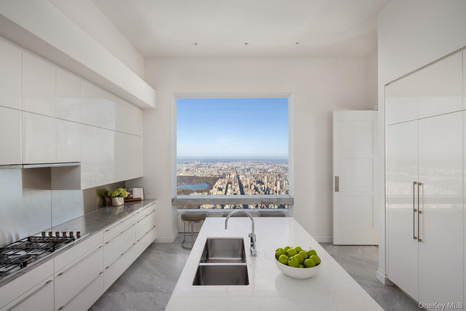 Welcome to the pinnacle three-bedroom plus library residence at the highest level for this configuration, featuring the building's exclusive 1 of 1 half-floor east-to-west design that delivers sweeping northern panoramas of Central Park from sunrise to sunset across all rooms. Soaring beyond 1,400 feet over Midtown, this home spans over 3,950 square feet with three bedrooms, a library, three full bathrooms, and a powder room. Enter directly from the elevator into a refined foyer, then enter the unit that offers solid oak floors, 12'6" ceilings, and hallmark 10x10 windows framing stunning vistas. A elegant hallway flows into a corner great room combining living and dining areas, illuminated by north, west, and east orientations that capture dynamic city and park scenes. The bright chef's kitchen boasts marble surfaces and flooring, a generous island, sleek white lacquer and oak millwork, premium Miele stainless appliances, and polished chrome Dornbracht hardware. Tucked in a secluded corner, the main bedroom suite commands iconic Central Park outlooks-typically found in full-floor units-along with ample wardrobes and a dedicated dressing area. Its spa-like bath includes marble cladding, sculpted cubic vanities with 22-inch oval basins, tailored wood storage, a deep standalone tub, standalone shower, underfloor heating, and Dornbracht chrome accents. The secondary bedrooms each include private baths for optimal comfort. The thoughtful design links the sleeping quarters smoothly to the entry, half bath, and concealed laundry. This exceptional half-floor haven on the 94th level defines elite Manhattan living, blending vast proportions, refined craftsmanship, and breathtaking horizons into a sophisticated urban escape. 432 Park Avenue is the result of a visionary collaboration between renowned architect Rafael Vinoly and esteemed interior designer Deborah Berke. Rising 1,396 feet above Park Avenue and 57th Street, this iconic condominium tower has garnered global recognition for its unprecedented design and well-appointed amenity package. Residents enjoy access to over 30,000 square feet of curated amenities including a private restaurant with cuisine overseen by Michelin-starred Chef Shaun Hergatt. state-of-the-art fitness center, 75-foot indoor pool with steam and sauna area, massage room, billiards room, screening room, business center, children's playroom, and onsite Les Clefs d'Or concierge for to fulfill every need or request. Additionally, the building's port-cochere provides ease and privacy.