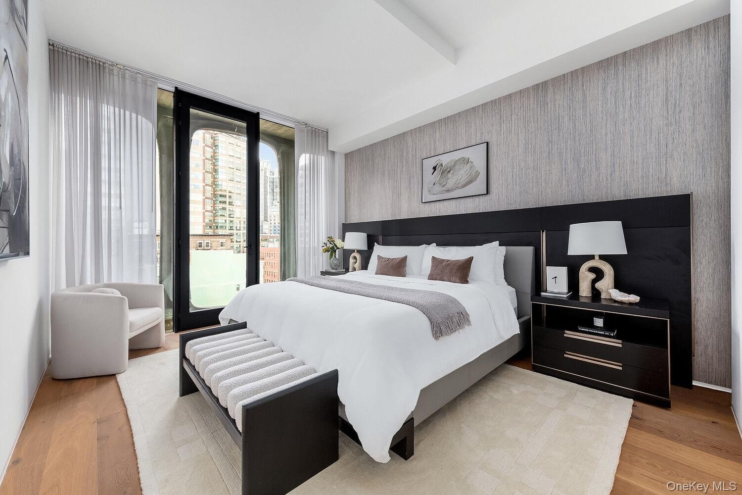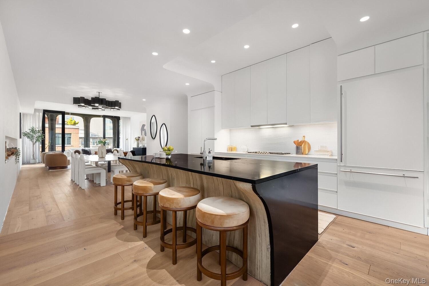 Residence 7B at XOCO is a sun-drenched grandly-sized 2,658 SF, 4 Bedroom, 3.5 Bath corner residence with coveted views to the south, east and west over SOHO. Walking through custom-designed entry doors, natural light illuminates a level of finish including hand-sculpted plaster coves, medallions, and soffit edges throughout. The sculptural cast-aluminum facade, seen through oversized windows, provides a dramatic backdrop for the enormous free-flowing living area encompassing the kitchen and dining room. The custom-designed kitchen opens to both the living and dining rooms and features white oak and white lacquer cabinetry, honed Black Saint Laurent marble center island, Bianco Greciale marble countertop and backsplash, full suite of Gaggenau appliances, Sub-Zero wine cooler and stainless-steel sink with Dornbracht faucet and Insinkerator disposal. The large primary bedroom suite features two oversized walk-in-closets / dressing rooms and a five-fixture bath featuring honed Gray Argento marble walls and floor, honed Black Saint Laurent marble top vanity, custom-designed Austrian white oak cabinetry, an elegantly free-standing deep soaking tub, separate rain shower, and cove lighting with Dornbracht fixtures in polished chrome throughout. Three spacious and elegantly proportioned additional bedrooms have open views east across classic SoHo cast-iron architecture and iconic rooftop water towers. This home features 7.5-inch-wide plank Austrian white oak floors, ceilings heights of over 10' and a zoned Daikin climate control system complemented by zoned hydronic radiant floor heating. This unique residence is part of the full service XOCO condominium at 325 West Broadway, complete with 24-hour doorman and fitness center.
