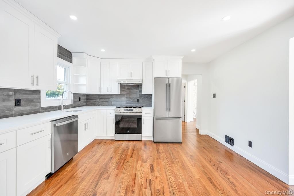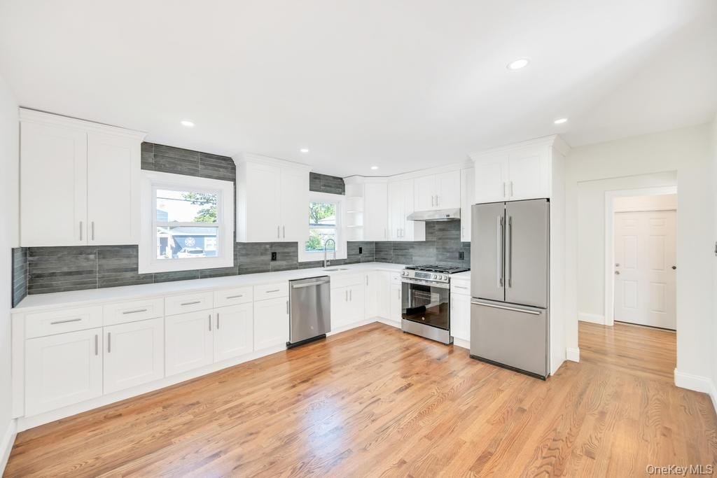 Three Village School District and A Full Basement, This 4 Bedroom, 1.5 Bath Colonial Checks All The Boxes and is Move in Ready! Step Inside to Hardwood Floors through First Floor, Brand New Eat in Kitchen with Ceiling High Cabinets with Soft Close Feature, Quartz Countertops, Brand New Stainless Steel Appliances. Perfect for Entertaining, Enjoy the Open Concept Dining Room and Living Room with Wood Burning Fireplace and Tons of Natural Light. Renovated Half Bath on First Floor is Perfect for Guests. Upstairs, You’ll Find Brand New Vinyl Flooring, 4 Bedrooms, including a Nice Sized Primary with Double Closets, Expansive Full Bath with Jacuzzi Tub with New Tiling and Vanity. Large Unfinished Basement with Epoxy Floors. Enjoy Gas Heat and Cooking, Upgraded Heating System (Forced Hot Air) and Electric Panel, 1 Car Garage, Recessed Lighting Throughout, Updated Hot Water Heater. Brand New Roof, Front Siding, Front Soffits Gutters, Garage Door, Front Door and Stoop. Forced Air Allowing for Easy Addition Of Central Air.