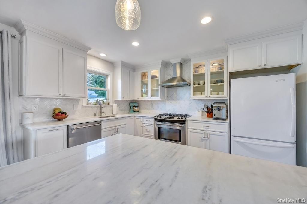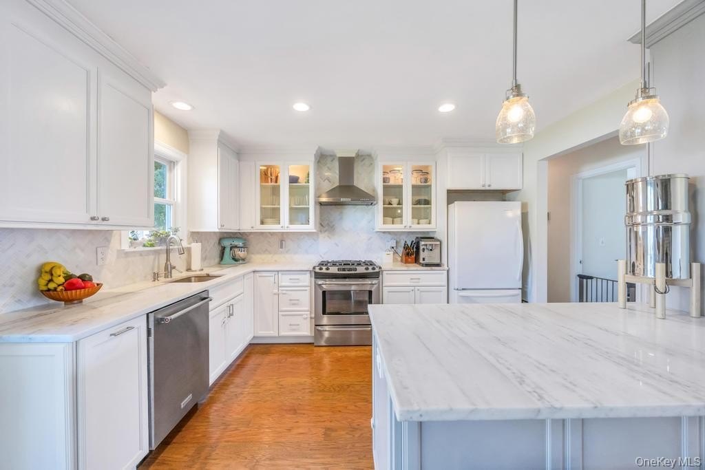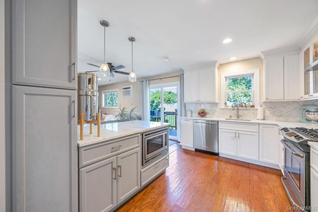 Look No Further – 113 Ithaca Street in Bay Shore Has It All! Located in Islip School District, this 3 Bedroom, 1 Bath Ranch Delivers Style, Comfort, and Updates You’ll Love. Step Into a Sunlit Living Room With a Cozy Wood Burning Fireplace and Gleaming Hardwood Floors That Flow Throughout. The Kitchen Is a True Showpiece With Quartzite Countertops, Custom Hardwood Cabinets, Center Island, Tiled Backsplash, Pantry, and Recessed Lighting – Perfect for Everyday Living and Entertaining. Major Upgrades Give Peace of Mind, Including a Brand New Roof (2025), 200 Amp Electric, Hot Water Heater and Boiler (2010), Plus Washer and Dryer Only 4 Years Old. Connected to Sewer (Not Cesspool!), Front and Backyard Sprinklers, and a Brand New Vinyl Fence Add Convenience and Curb Appeal. The Full Unfinished Basement Offers High Ceilings and Prime Potential for Additional Living Space. With a 1-Car Garage and Move-in Ready Finishes, This Home Checks All the Boxes!