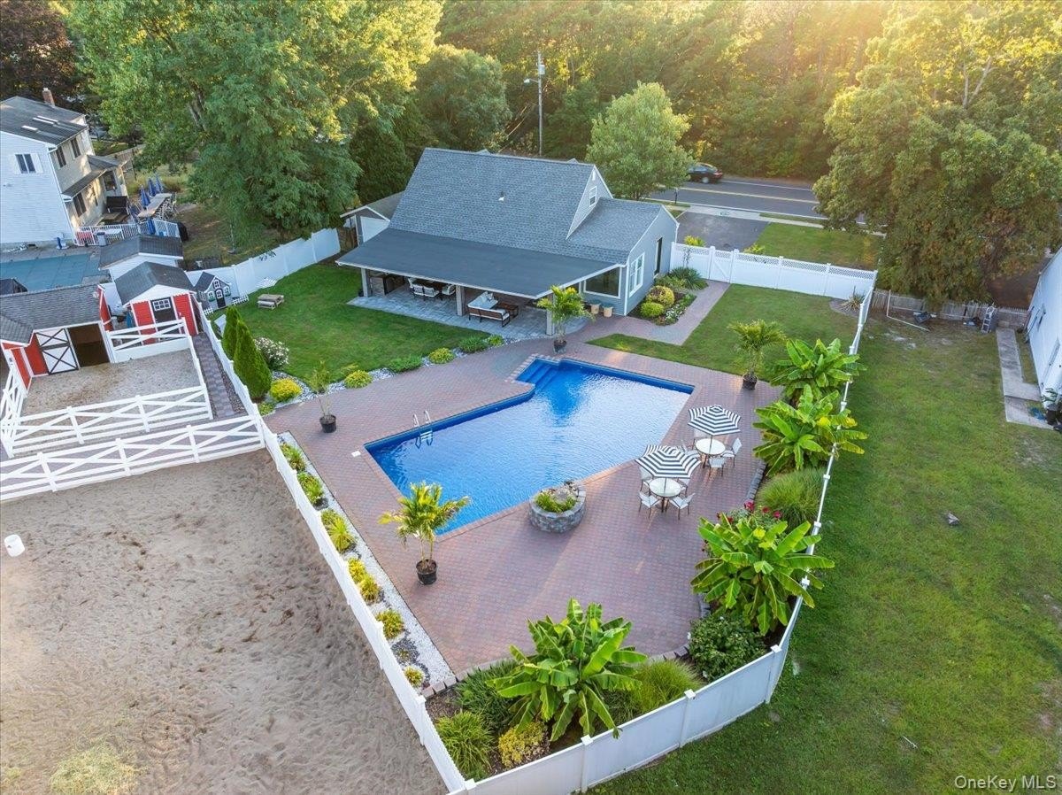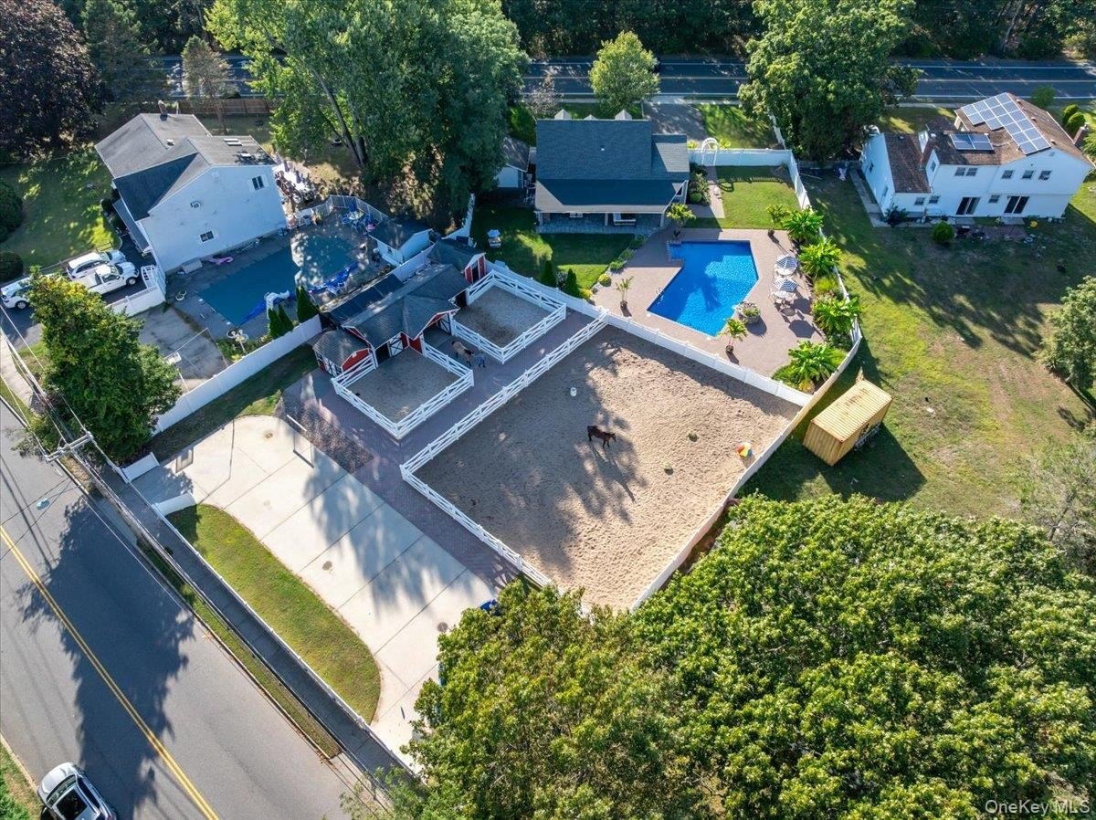 But the real magic lies outside. Imagine spending your summers lounging by the sparkling in-ground pool, or hosting unforgettable barbecues in your incredible outdoor kitchen. This al fresco cooking space makes entertaining a breeze! For those with a passion for horses, this property is a true gem. A classic barn stands ready for your equestrian needs, and direct access to bridal paths means you can saddle up and explore the beautiful local trails.