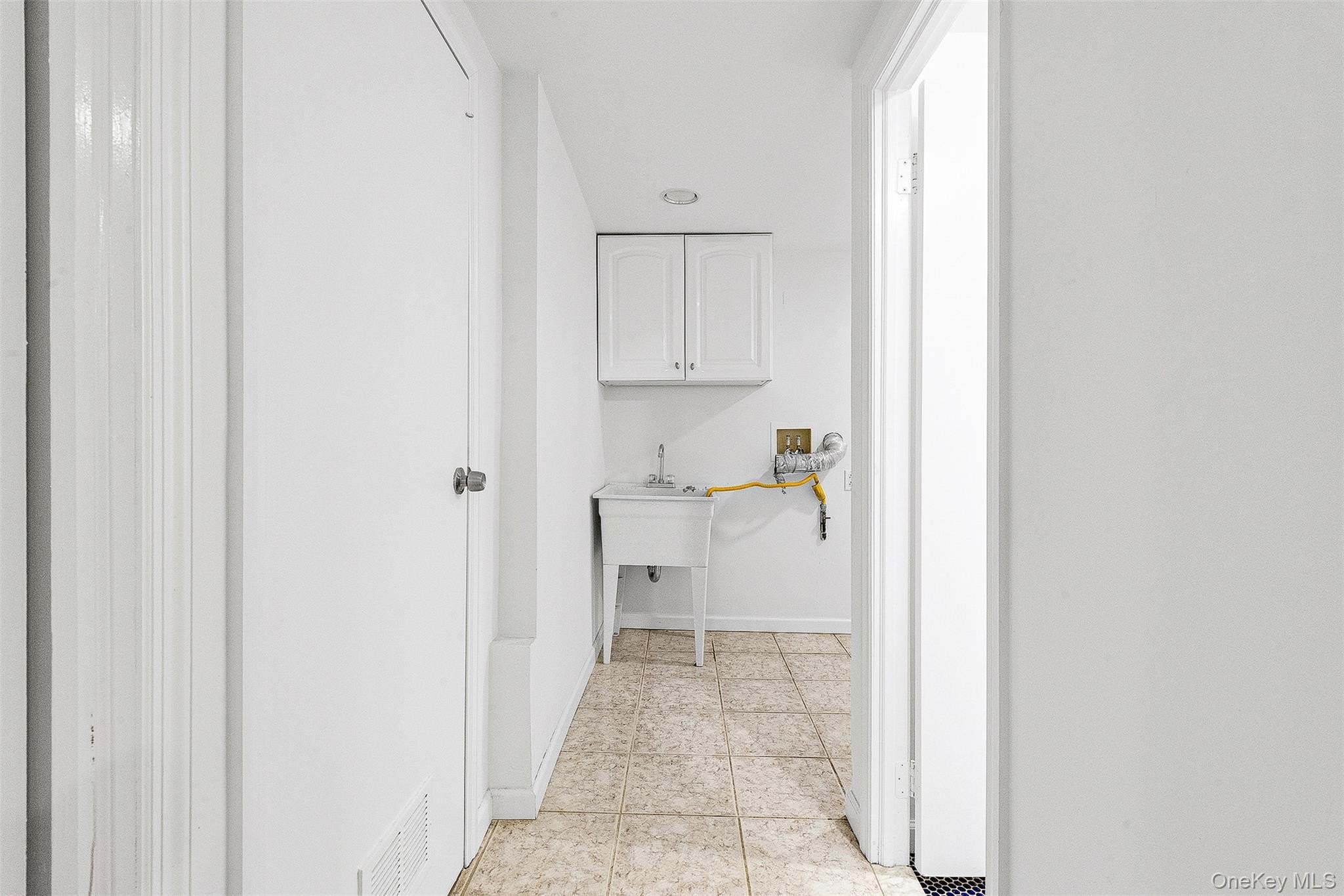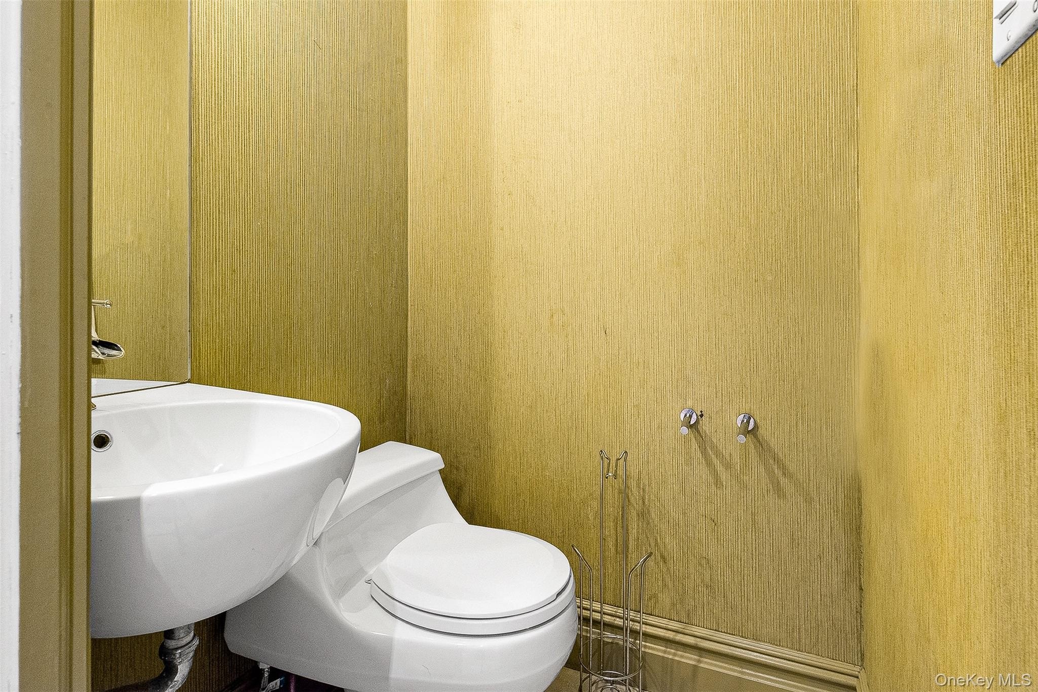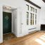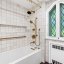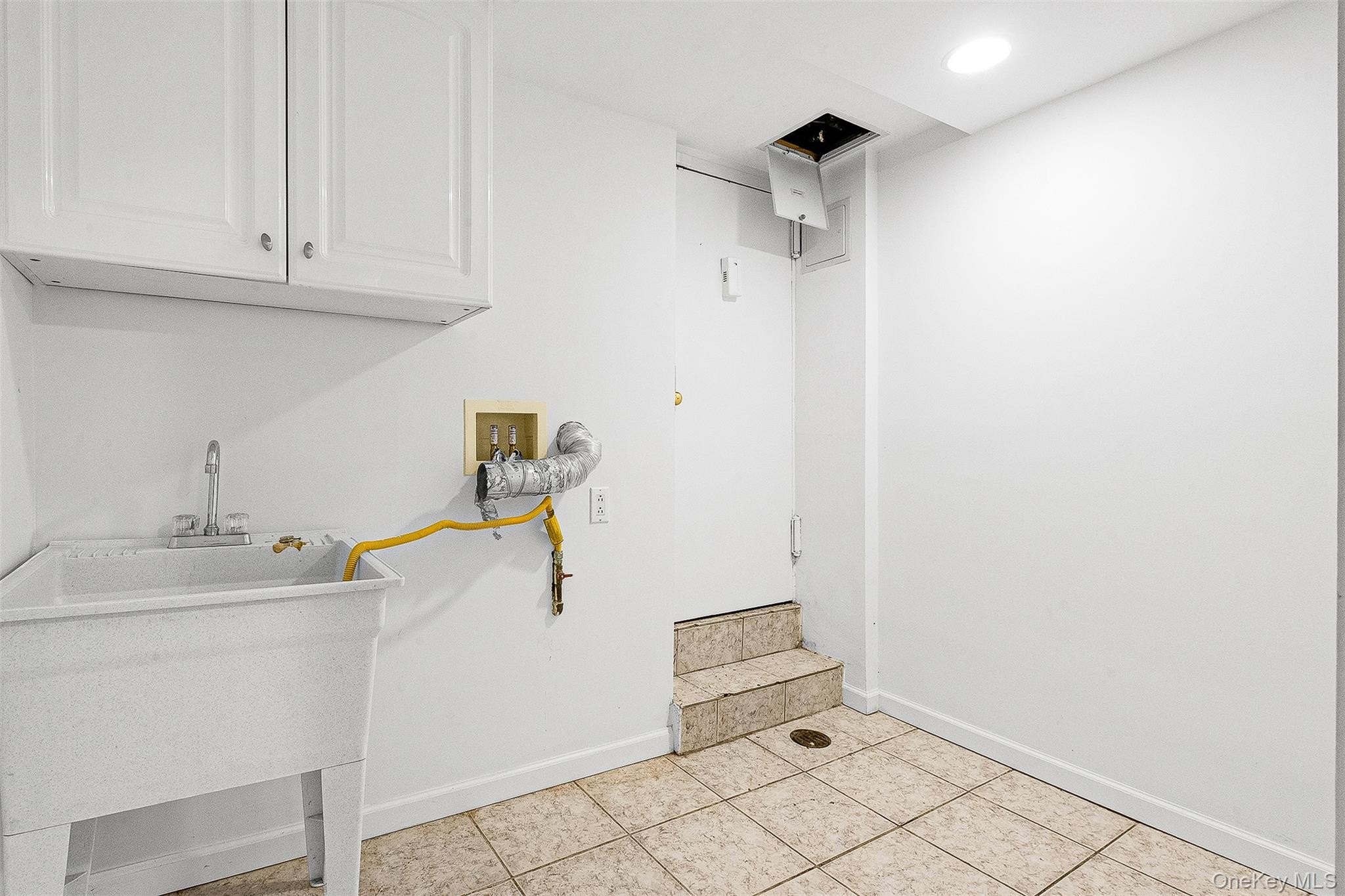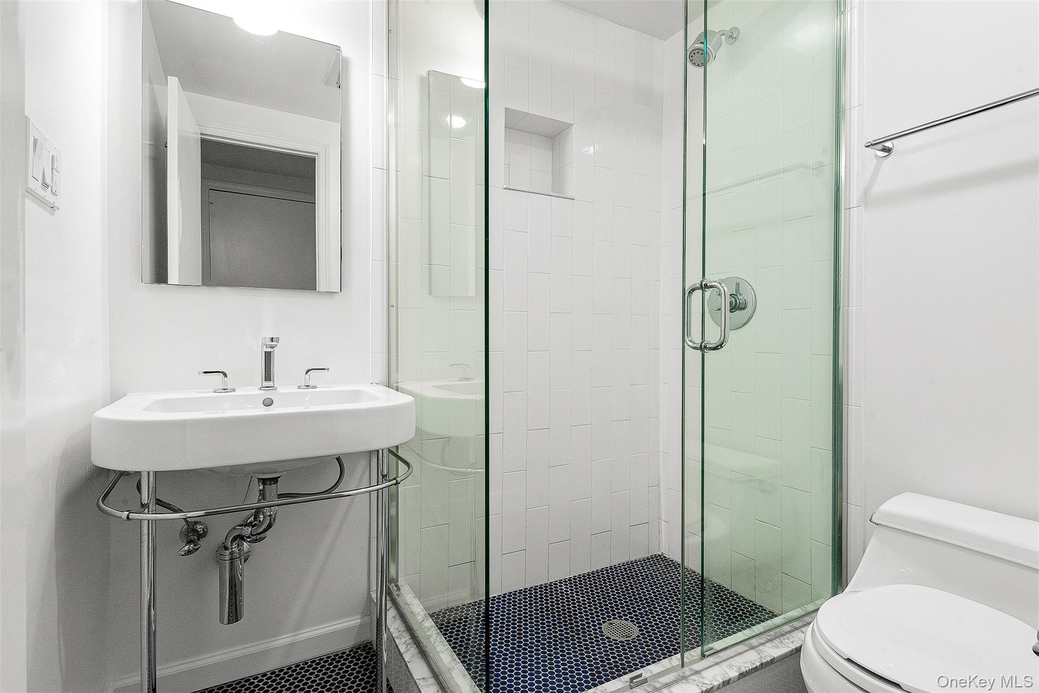 Upstairs, discover three spacious bedrooms, each offering an abundance of light and comfort. The beautifully renovated bathroom exudes spa-like sophistication, custom designed with Restoration Hardware finishes, with an arched diamond-pane window, sleek tiled walls, bold gold fixtures, and matte black flooring. A vanity with double drawers, round illuminated mirror, and a luxurious shower/tub combination elevate the experience. A discreetly tucked washer and dryer provide modern convenience.
