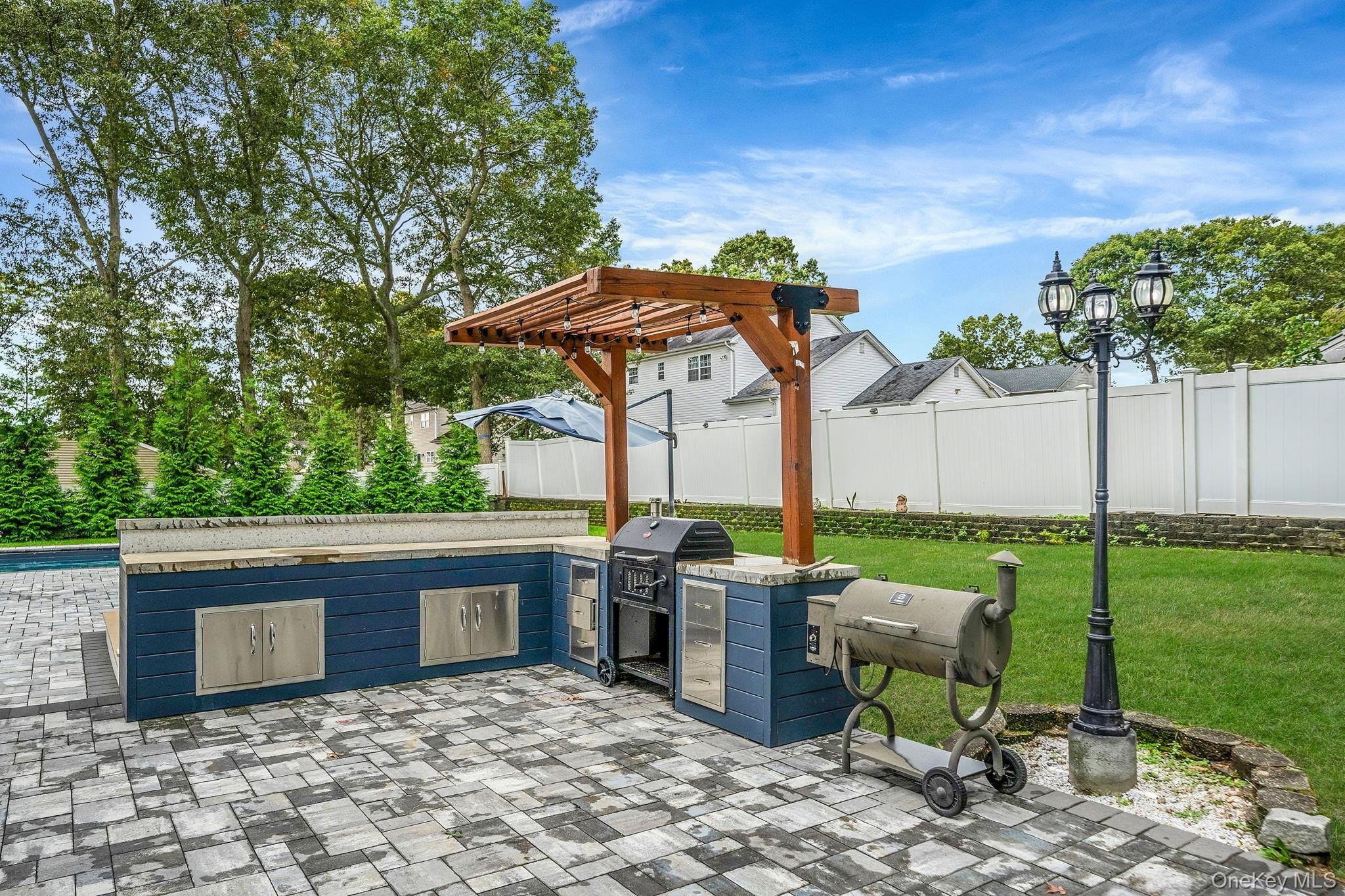 Welcome to 8 Linden Street—your perfect oasis in Coram! This expansive one-family home offers approximately 2,340 square feet of living space, set on a generous 15,000 square foot lot. With four bedrooms and two and a half baths, this home is designed for comfortable living. The updated kitchen and bathrooms are move-in ready, and the home features mini-split units throughout for efficient climate control. Fully paid-off solar panels mean significant energy savings, and there’s a brand-new water heater as well. Outdoors, you’ll love the in-ground saltwater heated pool, perfect for summer fun, and a built-in grill area on durable Trex decking with ArmorTech paving stones. The property also features an eight-zone in-ground sprinkler system to keep your lawn lush and green. With a two-car garage featuring new garage doors, a private driveway, two laundry areas, an attic for storage, and a basement with utilities, this home truly has it all. This is a fantastic move-in ready home with all the modern upgrades you could want.