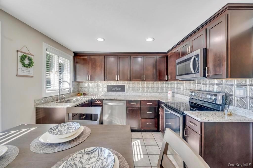 Welcome Home! This Colonial Has Been Tastefully Updated With Great Open Layout and Outdoor Space, Perfect For Relaxing Or Entertaining. Inside, You’ll Find Recessed Lighting, Crown Molding, and Expressed Vinyl Wood Look Flooring (2023) Through the Living Room, Dining Area, and Office or Den, That Give The Home A Fresh Modern Feel. As Well as a Half Bathroom Renovated in 2023. Newer Eat in Kitchen Features Granite Countertops and Stainless Steel Appliances (All Replaced in the Last 5 Years). Upstairs Includes Four Spacious Bedrooms with Newer Carpets and Doors, Brand New Full Bathroom, Along with 2 Ductless Mini-Splits For Efficient 2nd Floor Cooling. The Home Also Offers 200-Amp Electric, 1 Car Garage, Brand New Paver Stoop/ Walkway and Extended Driveway. Cesspool Just Serviced Within The Last Six Months. The Fenced Backyard Is Ready For Gatherings With A Large Deck And Patio Setup That’s Perfect For Fall Evenings.