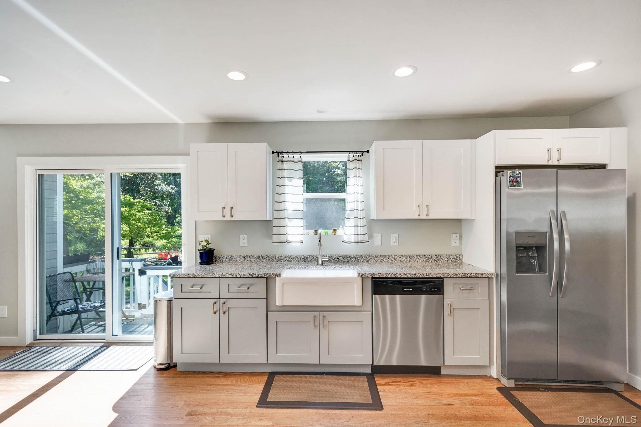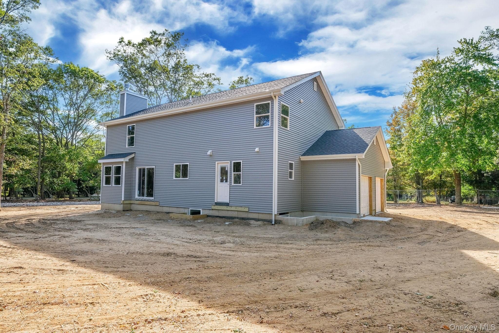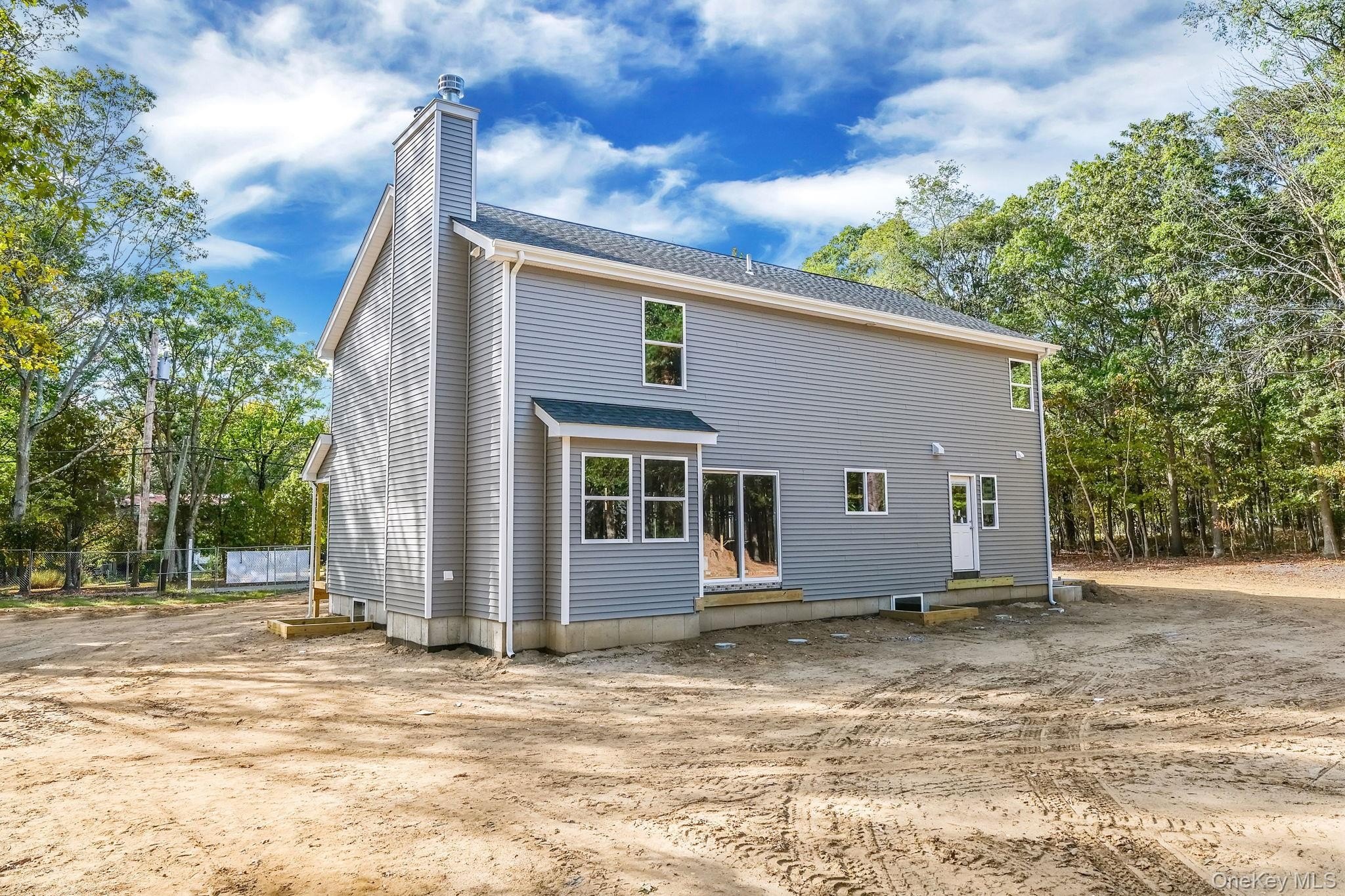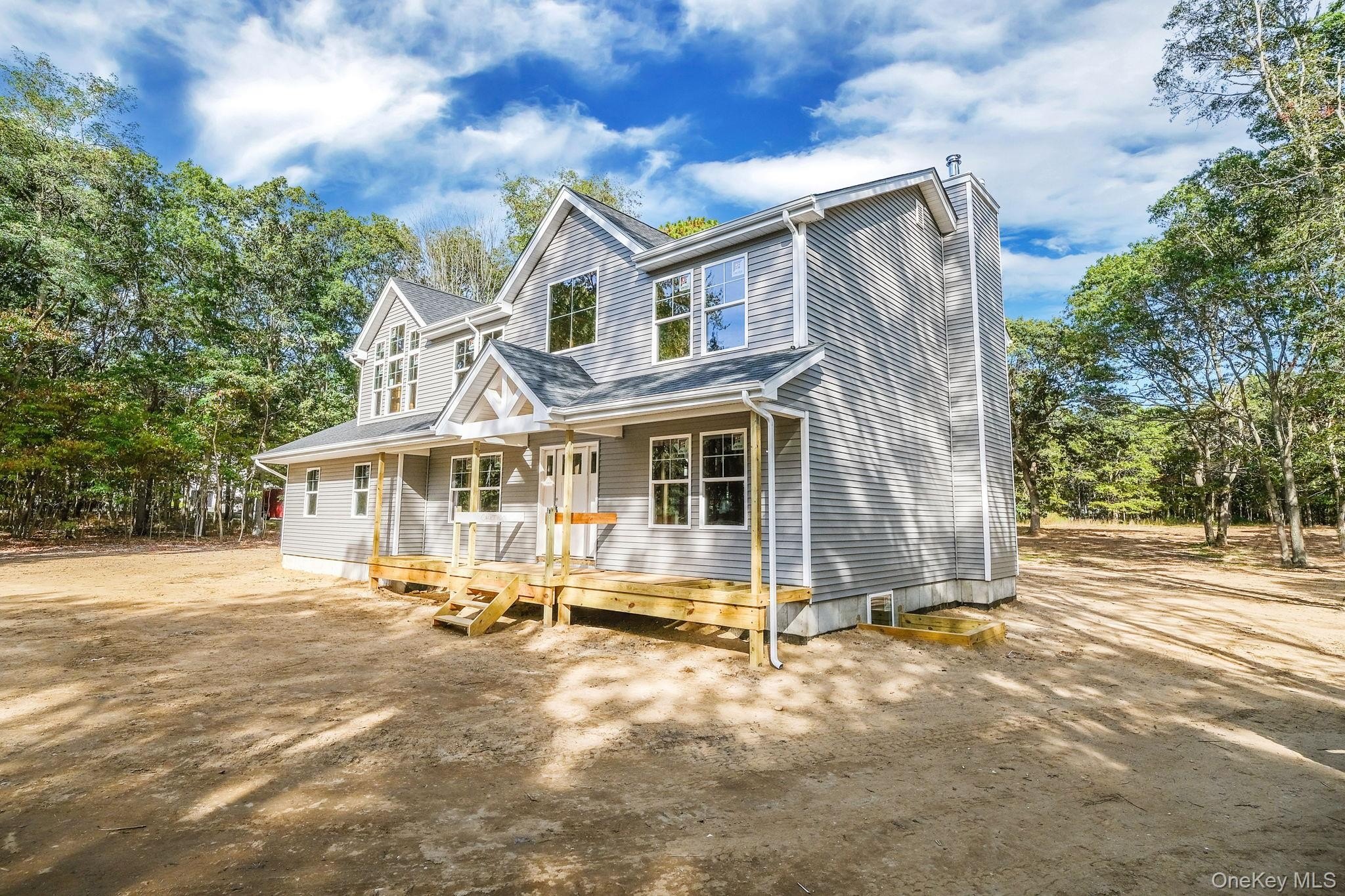 Perfectly situated on a full acre at the end of a quiet dead-end street in Medford, NY, this stunning new construction blends craftsmanship, comfort, and modern design. The exterior welcomes you with a covered front porch, a side-entry 2-car garage, and a new eco-friendly septic system, all thoughtfully planned for convenience and efficiency. Inside, the open-concept layout showcases hardwood floors, recessed high-hat lighting throughout, and a wood-burning fireplace with a granite hearth and custom surround as the living room centerpiece. The chef’s kitchen features granite countertops, a subway tile backsplash, designer stove hood, and stainless-steel appliances, perfect for entertaining and everyday living. A first-floor full bathroom is strategically located at the rear of the home with a door leading directly to the backyard—ideal for a future pool or outdoor entertaining area. Upstairs, you’ll find four spacious bedrooms and two full baths, including a hall bath with a 6-foot-wide soaking tub and a primary suite offering a walk-in closet and a spa-inspired bathroom with a walk-in shower and freestanding soaking tub. Elegant oak stairs and handrails lead the way to the second floor, showcasing the home’s craftsmanship and attention to detail. The property also includes a full basement with two egress windows and an outside entrance, plus a spray-foamed roof for a climate-controlled attic—adding comfort, energy efficiency, and future flexibility. Buyers can still select finishes to match their style. Schedule your showing today and see how your Medford sanctuary is coming together!