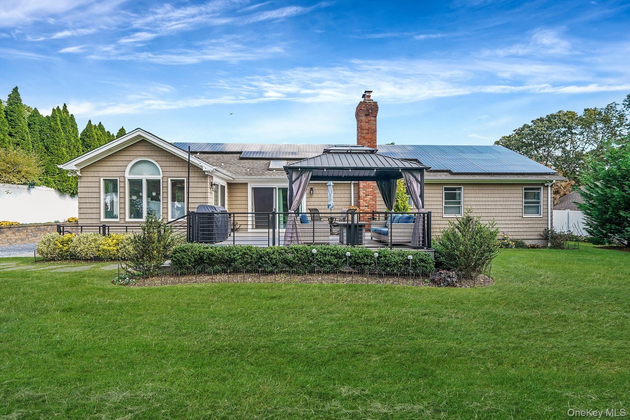Outdoors, the expansive driveway easily accommodates multiple vehicles — with plenty of room for a camper or boat — and leads to a two-car garage. A newer roof outfitted with solar panels enhances energy efficiency and reduces monthly utility costs, combining long-term savings with sustainability.
