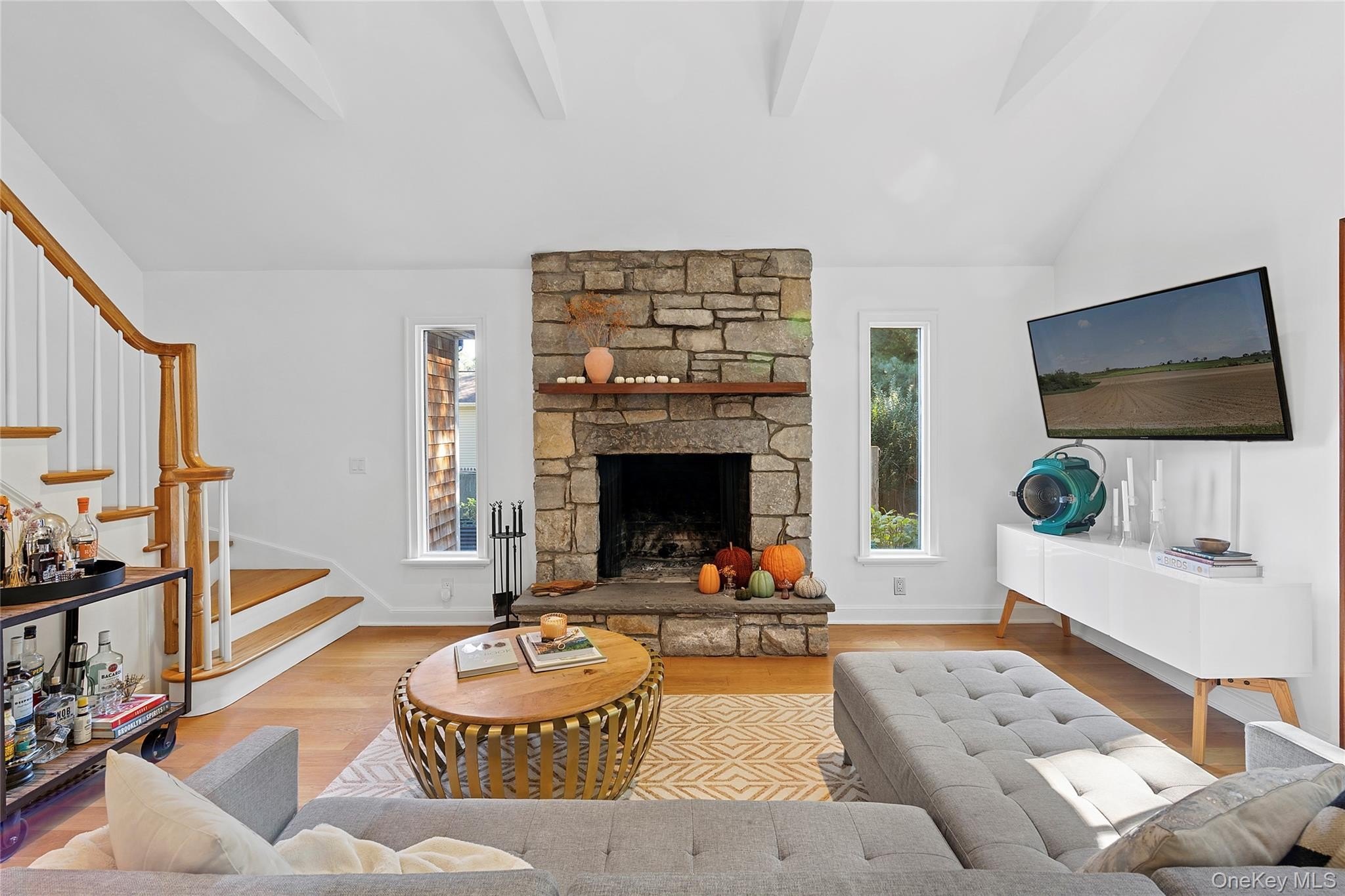 Tucked away at the end of a quiet Wading River lane, 3 Breezy Point Road is where design meets soul. This custom-built gem blends architectural artistry with effortless living - a refined retreat wrapped in coastal calm. Step inside and you'll feel it immediately: soaring ceilings, hand-crafted mahogany doors and windows, and a striking Norman Jaffe-designed fireplace anchoring the living room with quiet confidence. The chef's kitchen is equally impressive - custom cherry cabinetry, quartz counters, and thoughtful details that make every meal feel intentional. The first-floor primary suite is pure sanctuary, complete with oak floors and radiant tiled floors and a bath designed to soothe and impress. An additional guest room and full bath on the main level keep life easy, while upstairs adds flexible space for work, play, or unwinding. With white oak floors running throughout, a rec room, and smartly organized utility areas, this home is as practical as it is poetic. 3 Breezy Point Road is waiting for its new stewards to enjoy the magic that has been created here. Short stroll to the beach, minutes from Wildwood State Park, farm stands, La Plage restaurant, and wineries. EV charger included. You couldn't ask for more.