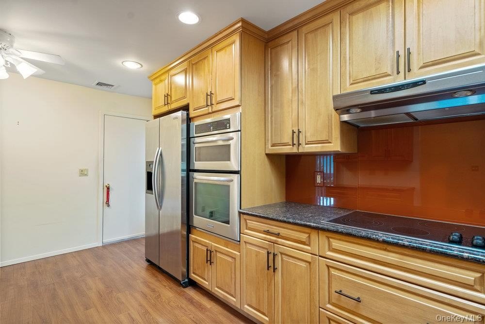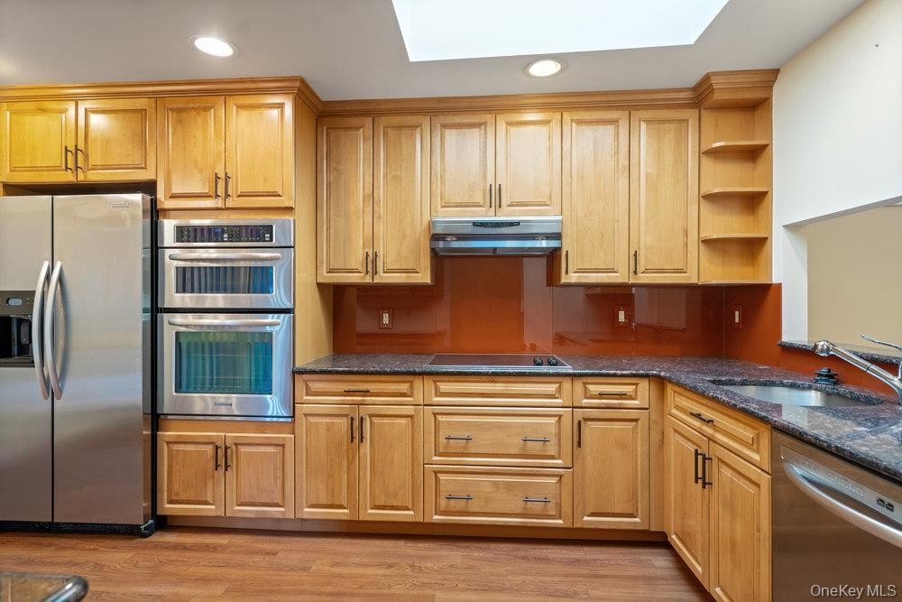 Galleria Ranch converted to three Bedrooms with expansive side and rear lawn areas. The kitchen has been partially opened making entertaining easier with a pass through, all stainless appliances, skylight, wood flooring and a pantry. The Den has doors with an opening to the back hall creating the third Bedroom or use as a home office. The Primary suite has multiple closets and an enlarged shower in the Bathroom, with sliding doors to the backyard. The laundry in located in the hallway leading to the third Bedroom. The backyard has a brick patio and is accessible from the cathedral ceiling Living Room. The home is conveniently located to the main club house where many of the amenities are located. All the windows, doors and heating/cooling units have been changed. Make this your next move while it's still available.