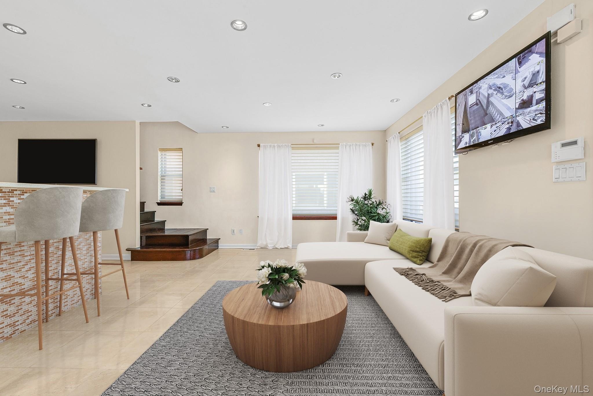 Welcome to this standout corner 2-family solid brick home in the heart of Middle Village—perfect for multi-generational living or as a smart investment property. Step inside the sun-drenched triplex and experience a modern open floor plan designed for everyday luxury. The expansive living and dining area flows effortlessly into a chef’s dream kitchen—outfitted with top-tier Subzero refrigerator, Miele oven, dual electric/gas stoves, beverage fridge, commercial-grade exhaust, and custom cabinetry offering plenty of sleek, hidden storage with clean, minimalistic lines. The main residence boasts 4 bedrooms and 4 spa-like bathrooms, two balconies, a full walk-in basement with soaring ceilings, and an attached 2-car tandem garage. Think luxury living with all the functional bells and whistles: central air and heat, designer bathrooms with digital shower systems, double vanities, jacuzzi tubs, recessed lighting, and custom solid doors throughout.