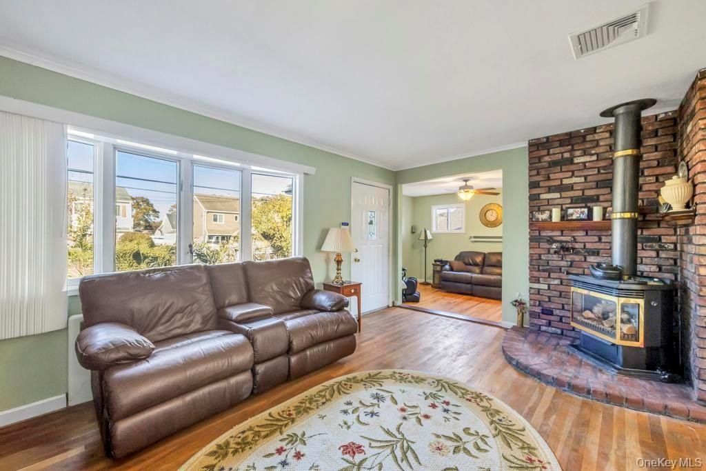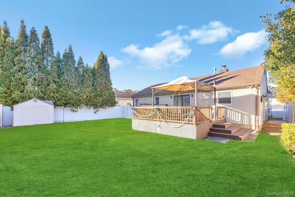 Welcome 136 Fulton Street, Lovingly Owned by the Same Owner for the Last 60 Years in the Village Of Massapequa Park. Step Inside To Find A Warm And Inviting Living Room Featuring A Gas Fireplace, An Open Layout That Flows Seamlessly Into The Dining Area. The Den Offers Additional Living Space And Can Easily Be Used As A Fourth Bedroom Or Home Office. Updated Kitchen, Renovated Within The Last Five Years, Features Modern Cabinetry, Stainless Steel Appliances, And Gas Cooking. Off The Kitchen, A Sliding Glass Door Opens To The Outdoor Deck, Perfect For Entertaining During The Warmer Months. Hardwood Floors Run Throughout, Complemented By Anderson Windows. Finished Basement, With Its Own Outside Entrance, Provides Great Potential For Extended Living Space—Featuring A Full Bathroom And Bedroom Or Office Area—Perfect For Guests Or Family. Laundry Area Located In Basement. Enjoy Central Air Conditioning and a Well Manicured Yard, Fully Fenced with PVC fencing. Conveniently Located Near LIRR, Parks, Schools, Shopping, And Transportation.
