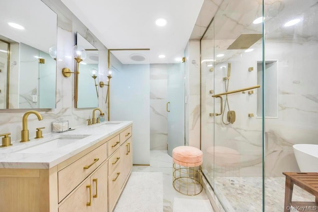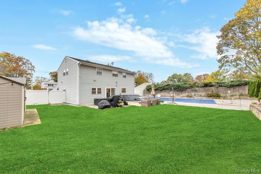 The Show Stopper You've Been Waiting For! Pack Your Bags and Move Right in. Step Into The Foyer With A Coat Closet And Convenient Half Bath Before Entering the Open Concept First Floor Layout. Enjoy a Formal Living Room, Kitchen Renovated Within in the Last 6 Years- Featuring Large Custom Island, Granite Countertops, Custom Tile Backsplash, Ceiling High Cabinets, and Upgraded Stainless Steel Appliances and Forno Stove. Dining Room Perfectly Situated Right off the Kitchen Encompasses Custom Shelves with Bar Area. Partially Finished Basement Provides Excellent Additional Space, Featuring Ample Cabinets For Pantry Storage and a Dedicated Laundry Area w/ 2 Washers and Dryers. Upstairs, You’ll Find Custom Glass Staircase Railing, A Cozy Den Ideal For Large Gatherings. Continuing Up, Two Bedrooms And A Full Bath Lead To The Luxurious Primary Suite, Complete With A Custom En Suite Bathroom Featuring A Walk-In Shower, Custom Ombre Shower Glass Doors Soaking Tub, Double Vanity AND Radiant Heated Floors. Enjoy an Expansive Walk-In Closet with Custom Shelving (Was Converted From The Fourth Bedroom And Can Easily Be Restored Back If Desired By New Homeowner) . Step Outside To Your Own Private Oasis — A Beautifully Designed Backyard With A Patio, Saltwater Inground Pool (2 Year Old Liner), And Hot Tub! Additional Features/ Upgrades: Vinyl Siding, Roof and Windows (Approximately 6 Years Old), Heating System and Central Air (Approx 4 Years Old), Recessed Lighting, Porcelain Tile and Hardwoods Throughout Most of the Home, 1-Car Attached Garage, Upgraded Interior Doors and Moldings, Front And Back Sprinkler Systems (2 Years Old), Paver Walkways and Paver Pool Patio.