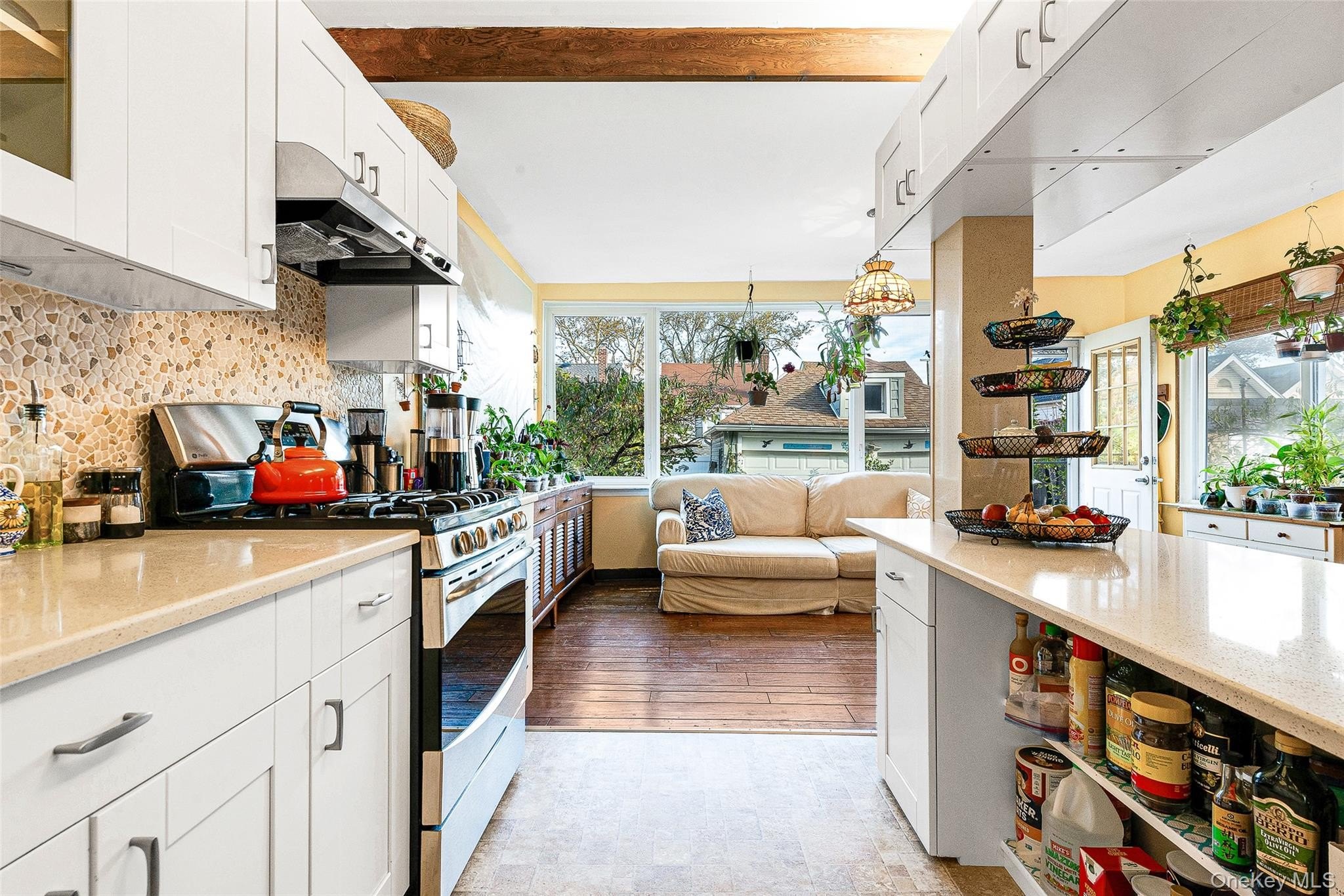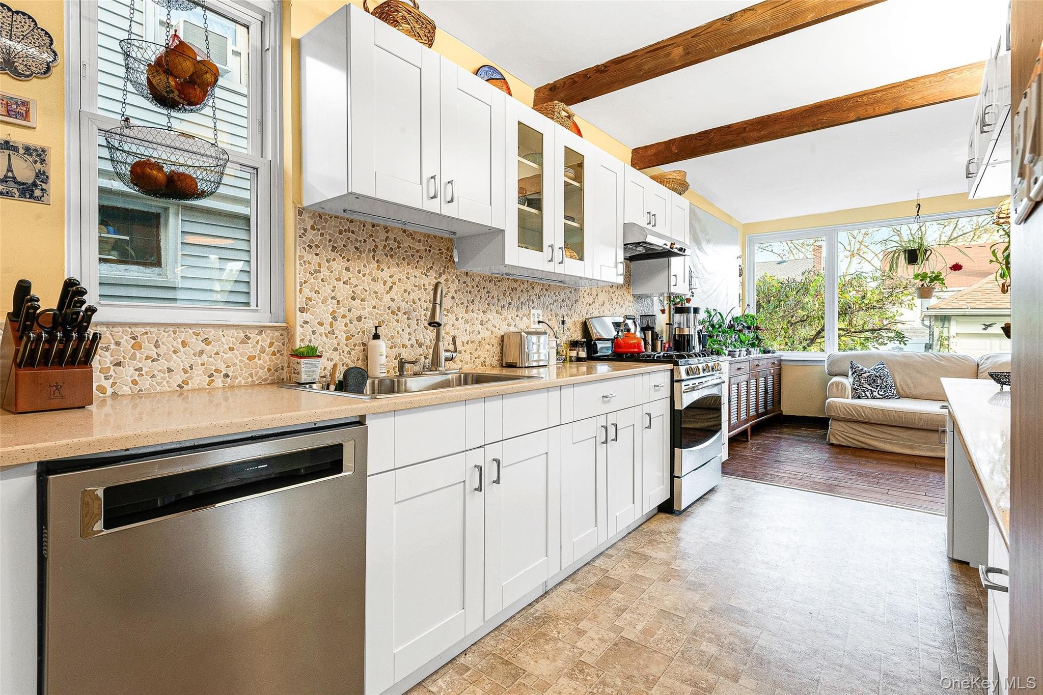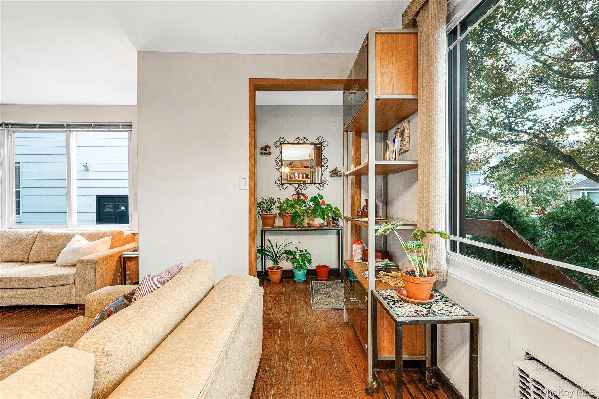 This beautifully maintained detached Colonial sits gracefully on a 30x100 lot, blending timeless Forest Hills charm with warmth and natural light. Built in 1930 and spanning about 1,861 square feet, the home faces south with eastern exposure, so sunlight pours through every window from morning to afternoon. A rare legal extension creates a bright, sunroom like retreat that feels welcoming year-round - the perfect spot to relax, read, or entertain. Step inside to a welcoming entry foyer that leads to a generous living room centered around a mid-century fireplace. The formal dining room features decorative ceiling beams that add subtle architectural flair, while the open eat-in kitchen offers plenty of storage and flows seamlessly into the sunny extension where daily living feels effortless and connected.
