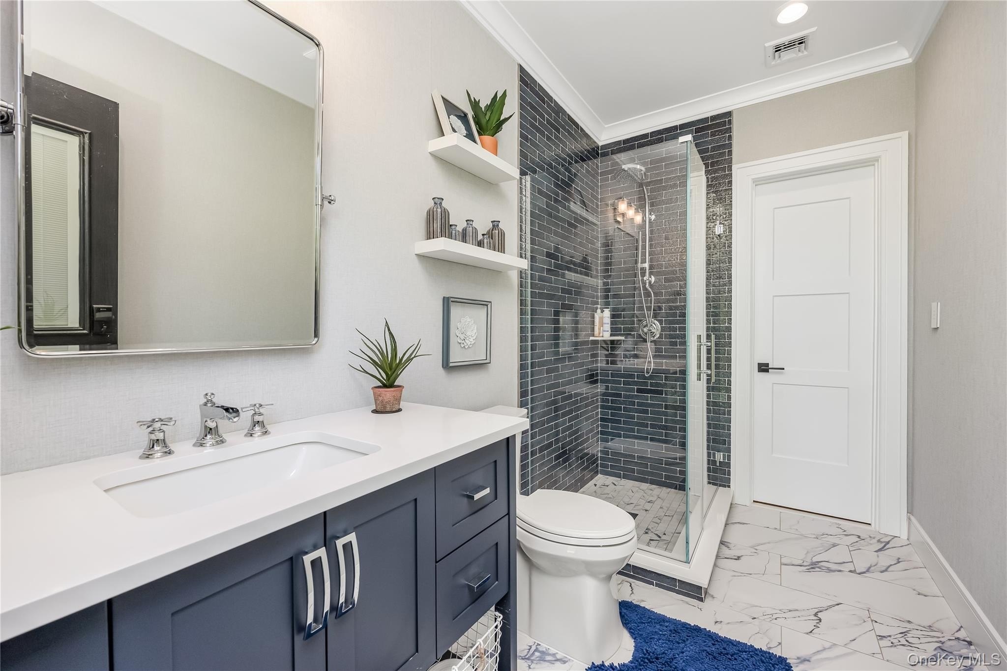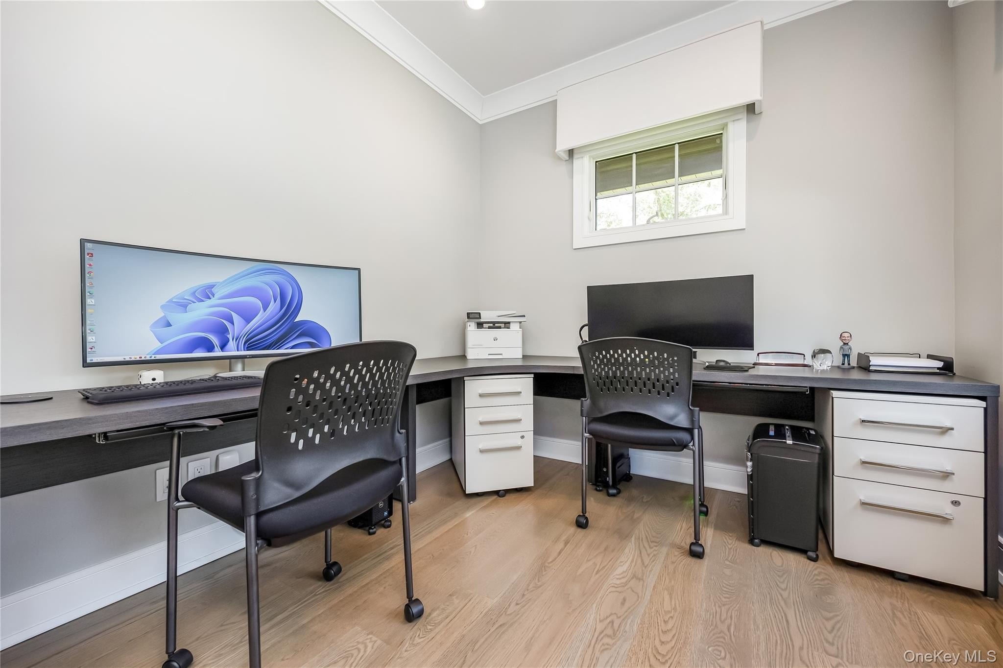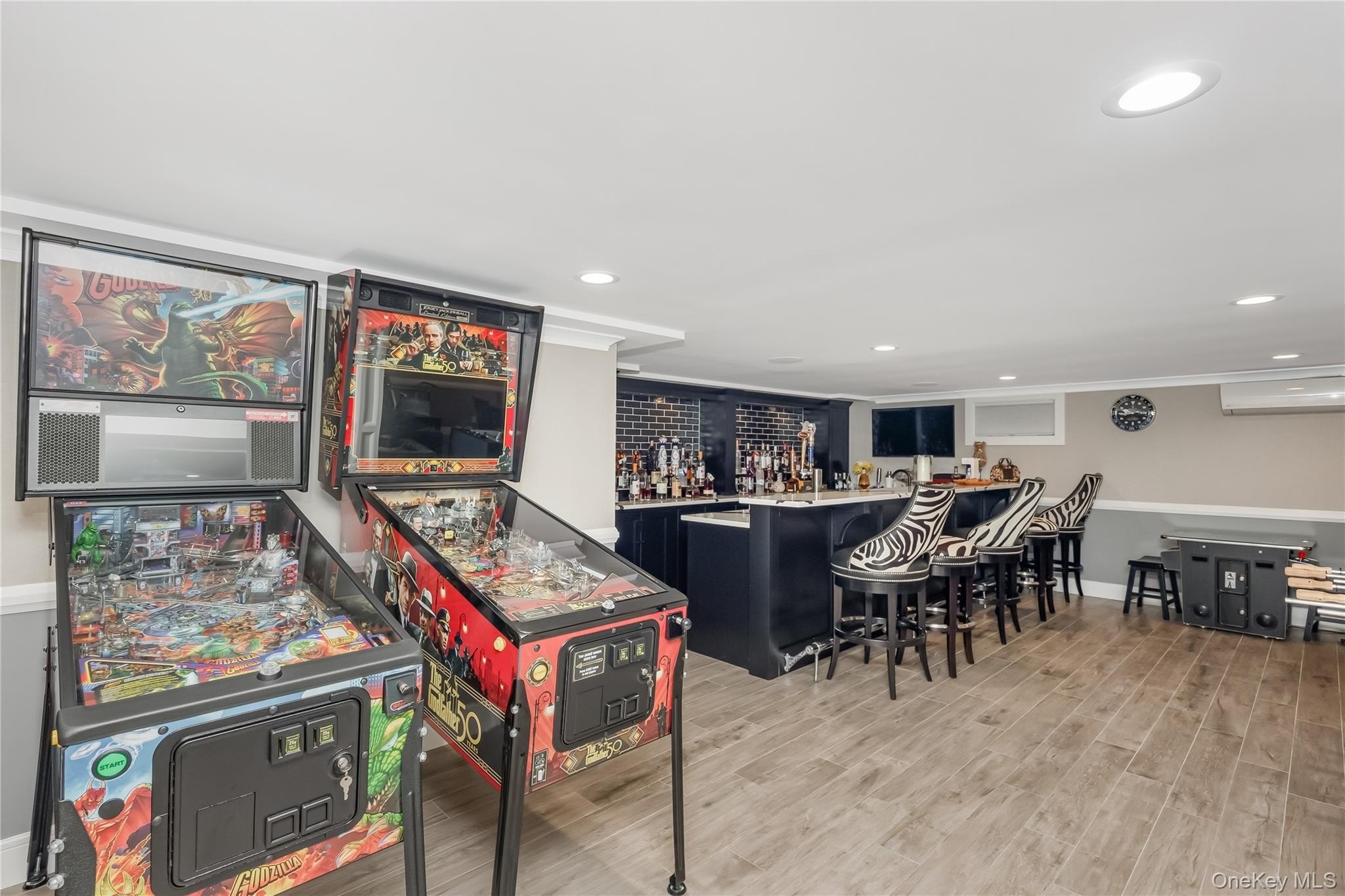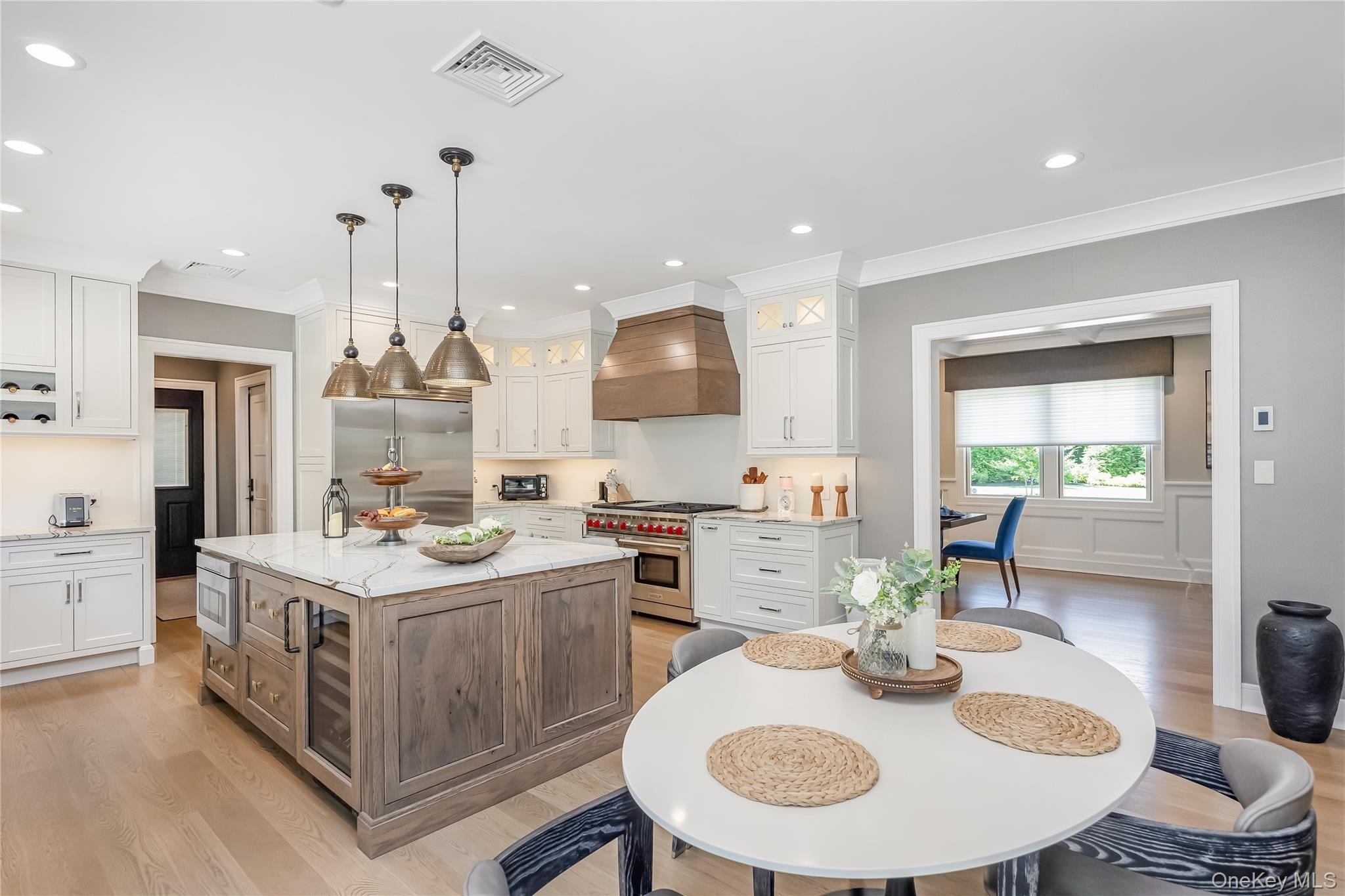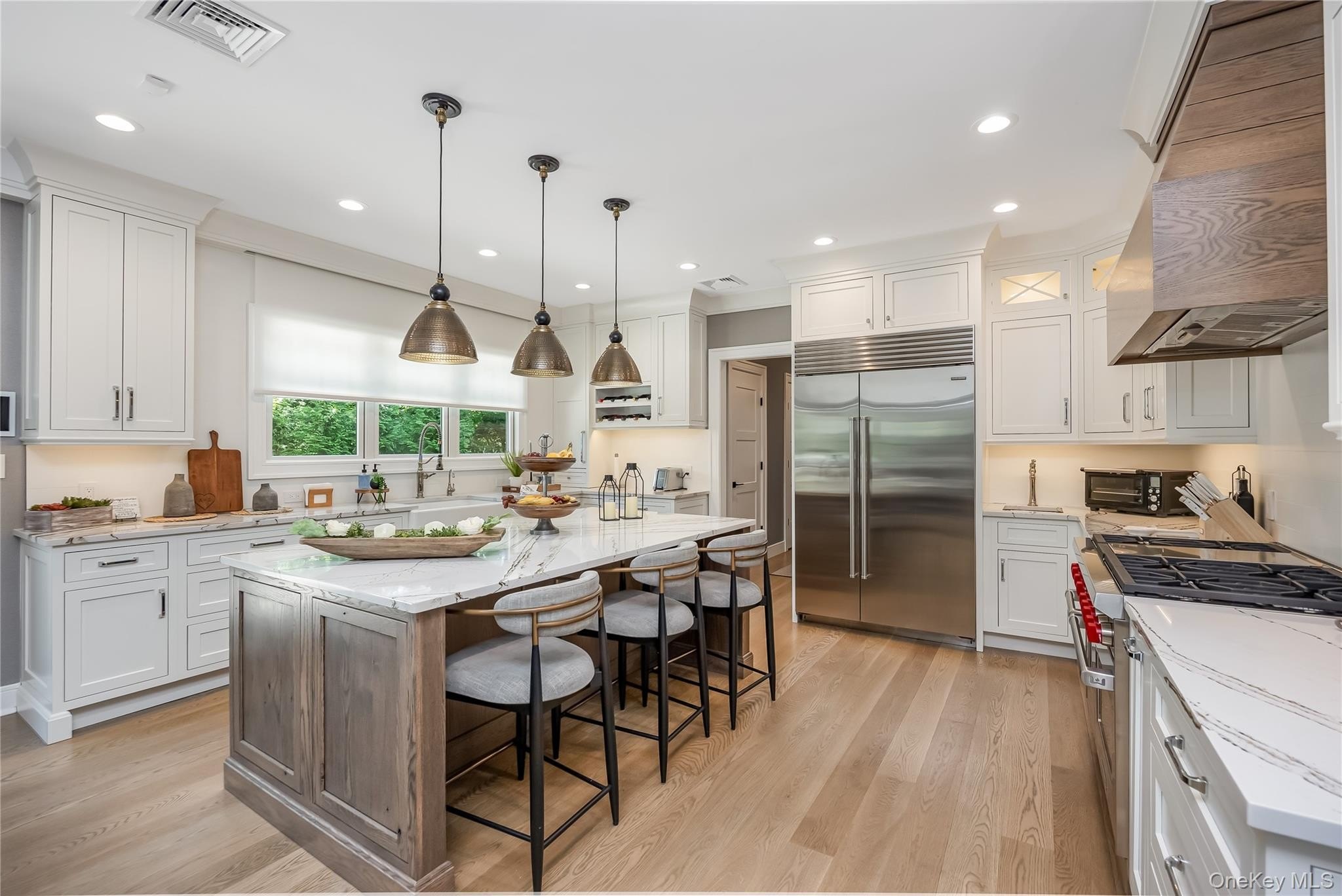 Welcome to your dream home-an elegant gated 9-room Colonial nestled in one of the most vibrant and sought-after suburban communities. Blending timeless architecture with luxurious modern upgrades, this residence is a true masterpiece inside and out! Step inside to discover expansive living and dining areas, both adorned with custom built-in cabinetry and a charming wood-burning fireplace in the living room. Crystal sliding glass door opens into a dedicated office featuring a built-in desk designed to accommodate two workstations, ideal for remote professionals or creative pursuits. A culinary enthusiast's paradise awaits including Wolf professional-grade stove, Sub-Zero refrigerator, Marvel wine fridge, Beko hidden dishwasher, High-end Candlelight cabinetry, sleek Cambria countertops, & a 2nd utility sink. Whether you're preparing weekday meals or hosting guests, this kitchen seamlessly combines function and style. Lutron lighting and shade system, as well as a filtered water system throughout the entire house. Your sanctuary awaits in the spacious master bedroom, featuring a cozy gas fireplace and a fully customized Candlelight closet system. The en-suite bathroom offers spa-like luxury with Cambria countertops and rich Candlelight cabinetry. Convenience and elegance continue upstairs with custom cabinetry and a fully equipped laundry room featuring LG washer and dryer units. Entertain in style in your fully finished basement to include: Full bar with Cambria countertops, Marvel refrigerator, beer tap & keg fridge, and Sub-Zero ice machine, Silhouette professional wine cellar (approx. 50-bottle capacity), Glass-enclosed room perfect for a home gym or studio, Built-in Candlelight cabinetry for sleek storage Your outdoor oasis is an entertainer's dream. The backyard features: - Built-in XO BBQ station - Marvel outdoor refrigerator - Custom outdoor cabinetry and cooking area Adjacent to your in-ground pool, the charming pool house includes: - Marvel refrigerator - Marvel keg fridge The storage unit behind the pool house is as large as the pool house! Perfect for summer gatherings or serene evenings by the fire. This exceptional home offers a rare blend of luxury, functionality, and style in a lively, community-focused neighborhood. A must-see for discerning buyers who appreciate quality craftsmanship and effortless indoor-outdoor living. Contact us today to schedule your private tour!
