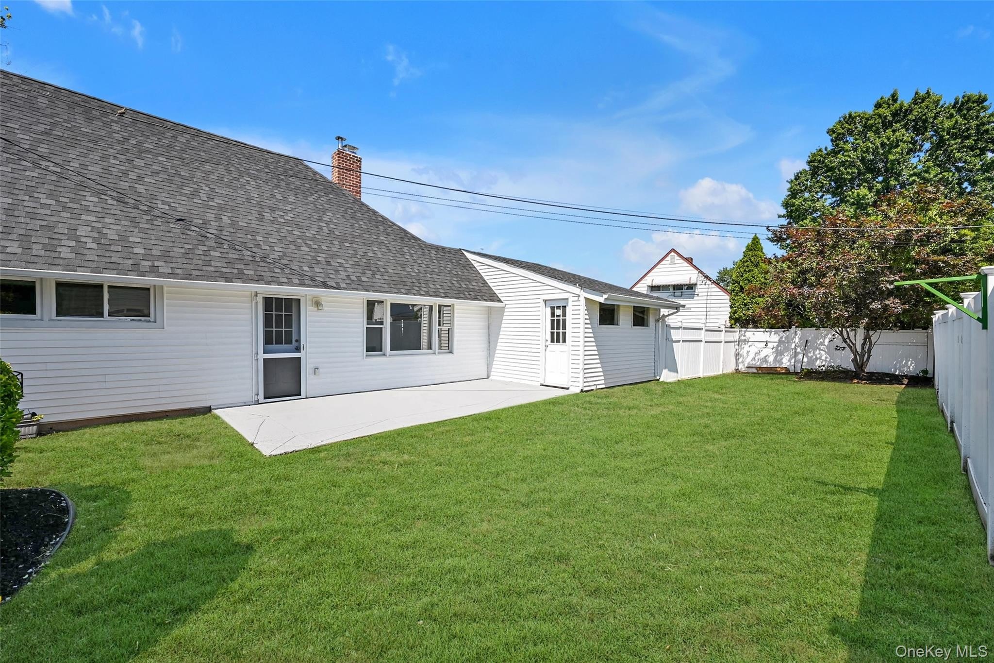Step into your dream home. This charming, move-in ready expanded cape offers both character and modern updates such as a new roof, new gutters, new chimney lining and more. The bright and airy living room is filled with natural light from newly updated windows. The spacious eat-in kitchen features stainless steel appliances, while the bathrooms have been tastefully updated. The second-floor suite includes a walk in closet and a laundry room. Additional storage is available in the rear, along with a private driveway and a generous 8,100 sq ft lot, perfect for relaxing or entertaining. Conveniently located just minutes from public transportation on Newbridge Road and the Hicksville LIRR station. Don't miss the opportunity to own this beautifully updated home before it's gone!