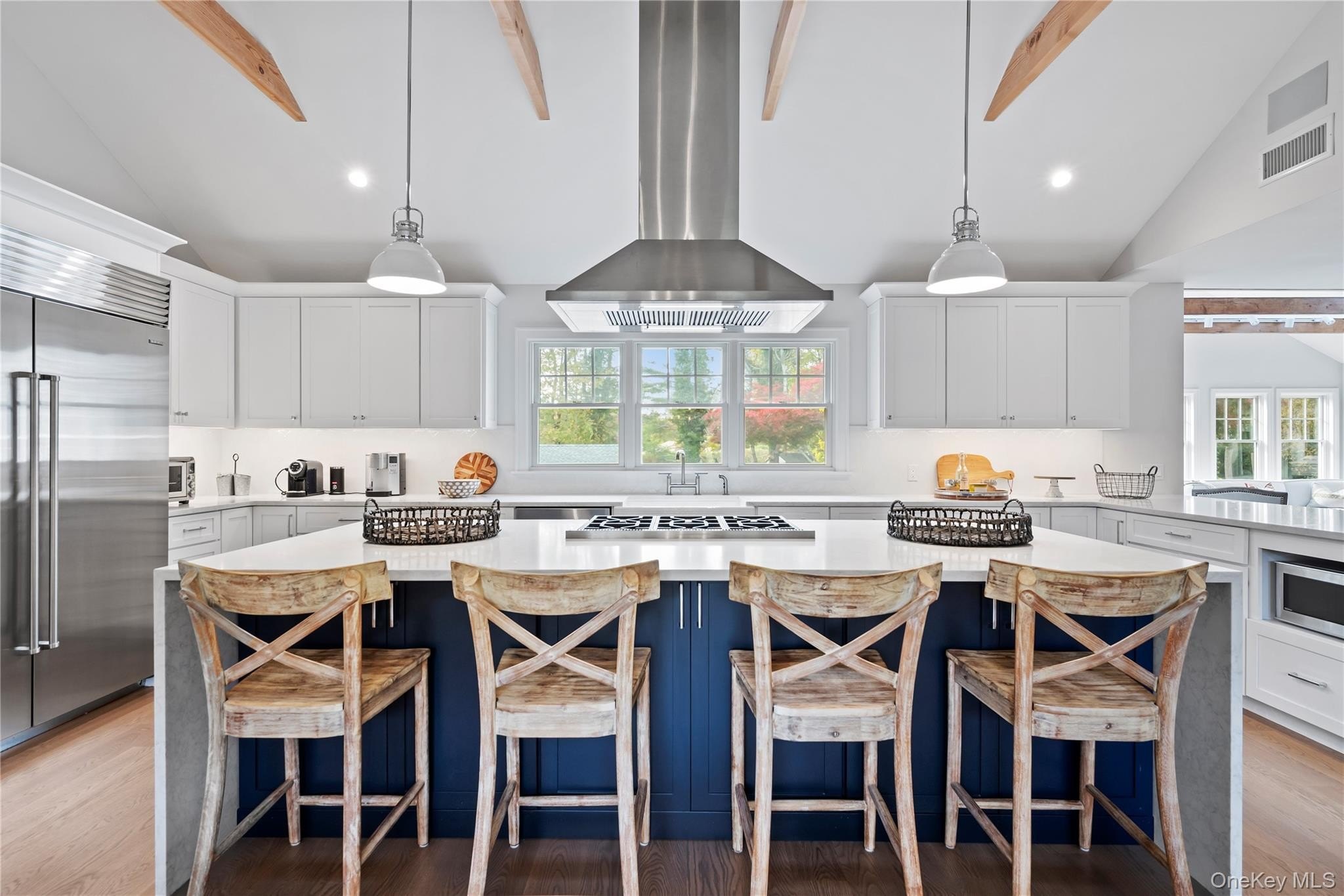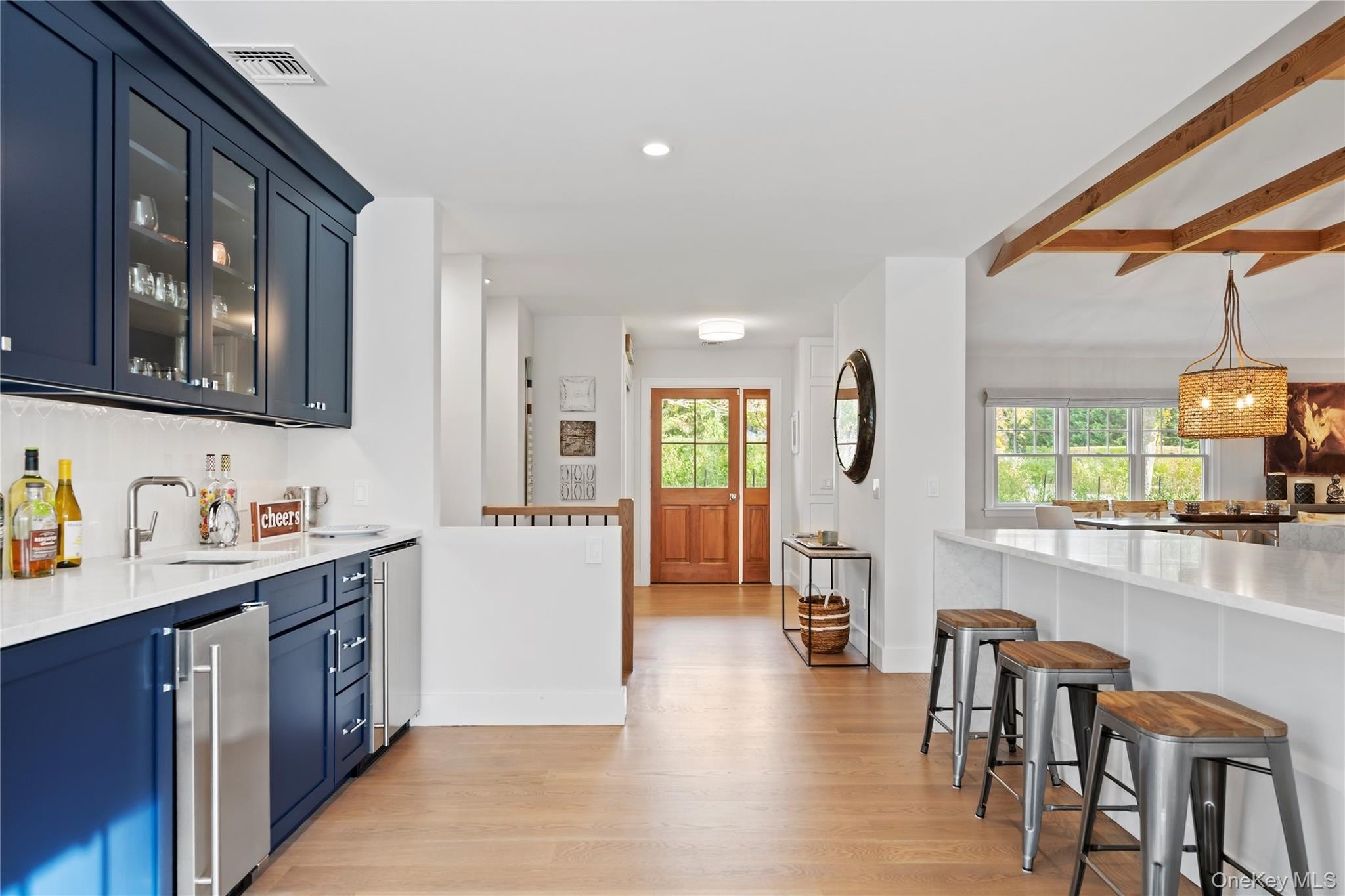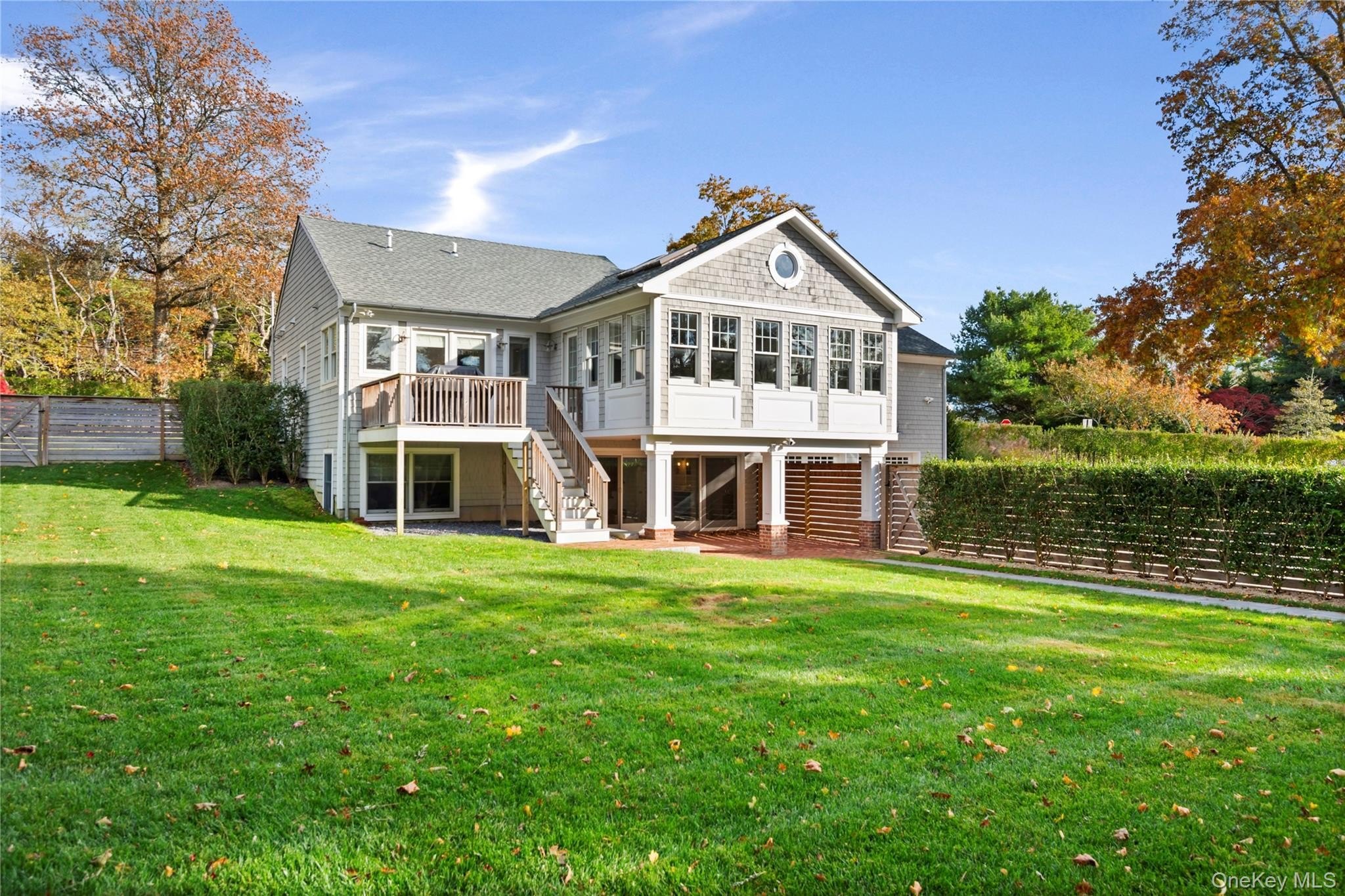 Completely Renovated Southampton Gem!!! This stunning Southampton home sits impeccably on a generous manicured property. Located on highly desirable North Main Street. The entire home has been completely and tastefully modernized from top to bottom with designer flair. Move in Ready. This 3,000 square feet home features four ensuite bedrooms, two half baths, and a private lower level with an en-suite bedroom and home office in addition to a cozy den. Some of the new upgrades include open concept living, exposed rafters, modern track lighting and a warm and inviting gas burning fireplace. The gourmet chef's kitchen includes a Sub Zero Refrigerator, Miele Stove/Oven, wet bar with Marvel ice maker and much more, as well as a Quartz counter tops and a generous size island with a charming breakfast nook. Beautiful hardwood floors guide you through this well laid out home with abundant natural light. The primary suite boasts Anderson French doors leading you out to a private balcony where you can enjoy your morning coffee or sip a glass of your favorite wine as you overlook a professional landscaped yard with brand new gunite pool and oversized heated pool house with porcelain floor tiles, kitchenette with sink and beverage fridge plus quartz countertop. Some notable, additional features are a 6 zone wirleless Sonos AV system, Lutron lighting, ring security and lighting system, WIFI signal extenders, Cambridge pavers and Brand New Roof installed 2025. Privacy and elegance converge in this unique location just minutes from eclectic shopping and world class ocean beaches. Experience a classic Hamptons home in a serene neighborhood just down the road from Southampton Village!