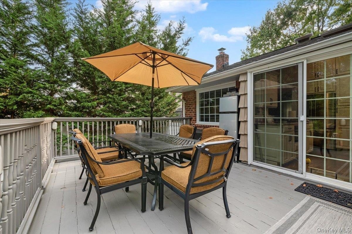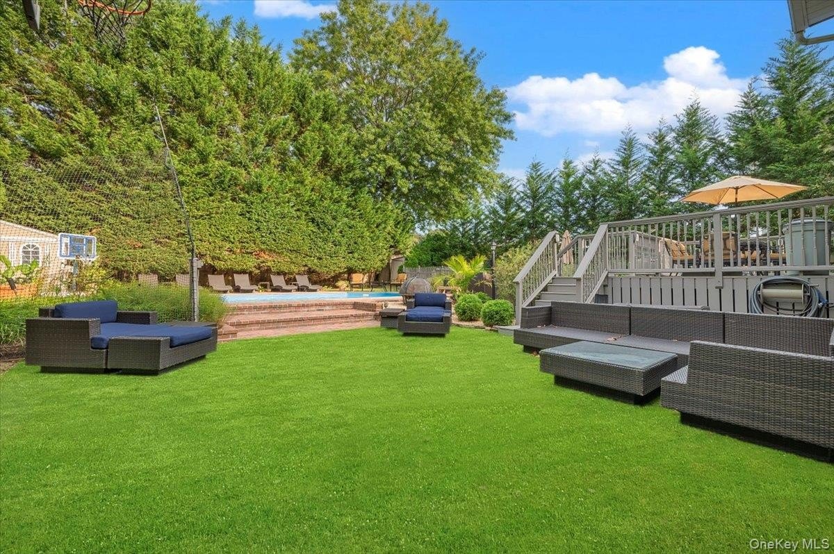 Welcome to 9 Flint Lane, a beautifully maintained home in one of Jericho's most sought-after neighborhoods. This expanded split-level residence offers 3 bedrooms (with potential for 4) and 2 full bathrooms, blending comfort, flexibility, and modern updates. The inviting main level features a bright living room, formal dining room, and an eat-in kitchen with granite countertops, convection oven, and Andersen windows. An expansive den, full bath, closet, and private outside entrance creates the perfect option for a guest suite, home office, or 4th bedroom. A finished basement provides laundry, storage, and recreational space for added convenience. The true highlight is the private backyard retreat, designed for both relaxation and entertaining. Here, you'll find a sparkling pool, deck, and professional landscaping, plus direct access to a neighborhood park-ideal for summer gatherings and year-round enjoyment. Located within the Jericho School District, with close proximity to the Hicksville train station, shopping, dining, and easy access to the LIE and Northern State Parkway, this home delivers both lifestyle and convenience. Don't miss this rare opportunity to own a home that offers space, flexibility, and a backyard oasis in the heart of Jericho.