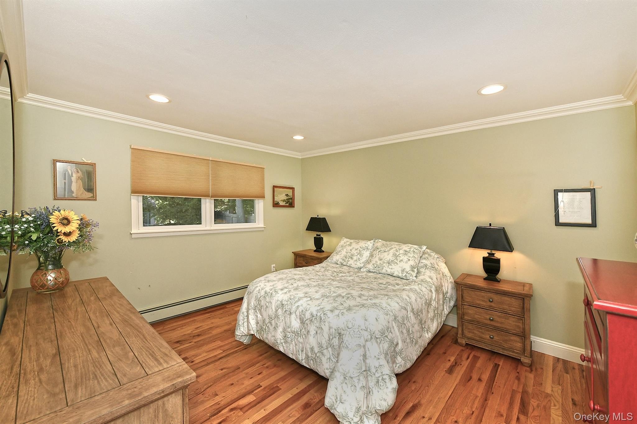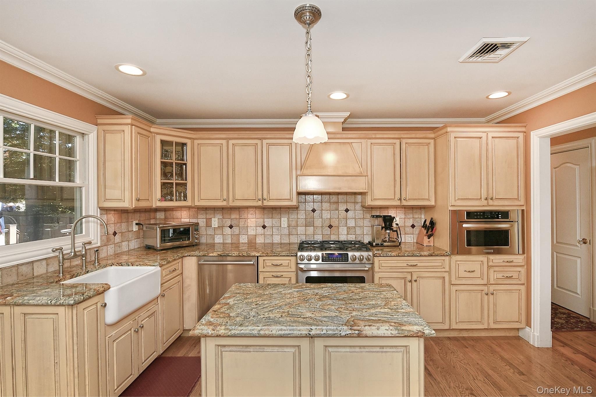 Welcome to 7 Cardiff Court! True pride of ownership is evident in this beautifully maintained 4-bedroom, 2-bath Hi Ranch. The French country-inspired kitchen features a center island, granite countertops, tumbled marble backsplash, stainless steel appliances (including a Bosch dishwasher), gas cooking, a farmhouse sink, and abundant cabinetry. The kitchen opens to the dining area and bright living room with gleaming hardwood floors throughout. Both bathrooms have been tastefully updated. The spacious family room offers a cozy wood-burning fireplace and a convenient laundry area. Step outside to a lovely two-tiered Azek decking-perfect for relaxing or entertaining-overlooking a fully fenced, peaceful, and private backyard. Additional highlights include beautiful moldings, interior solid wood doors, blue stone stoop, cedar impression siding, Andersen windows, new Roth oil tank, one-car garage, and in-ground sprinklers. Located on an ideal cul-de-sac close to everything you need, this home is truly move-in ready!