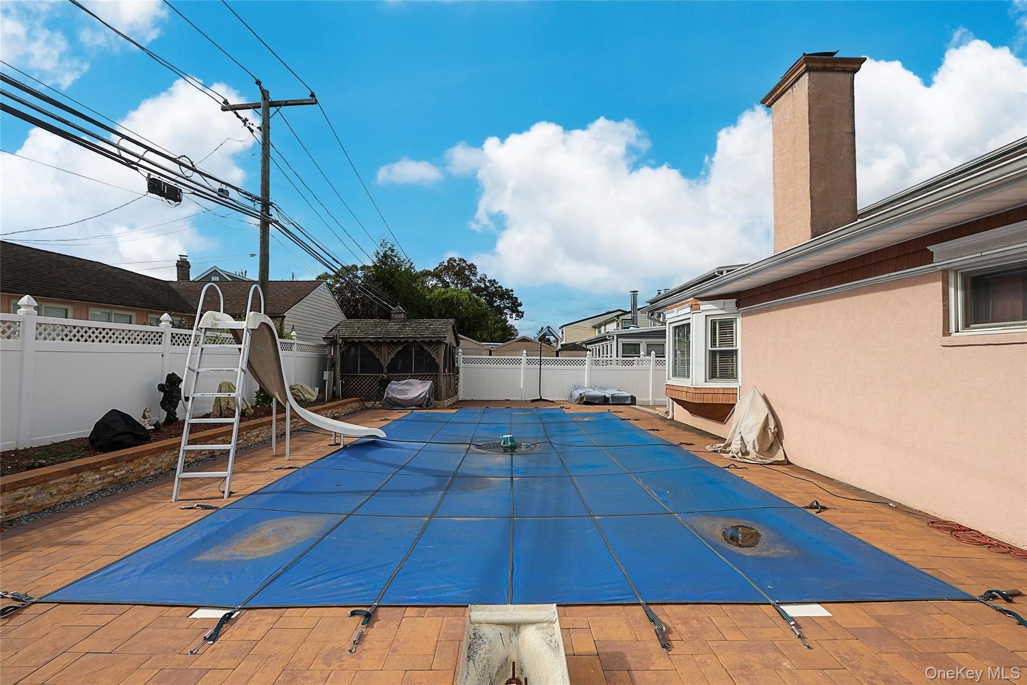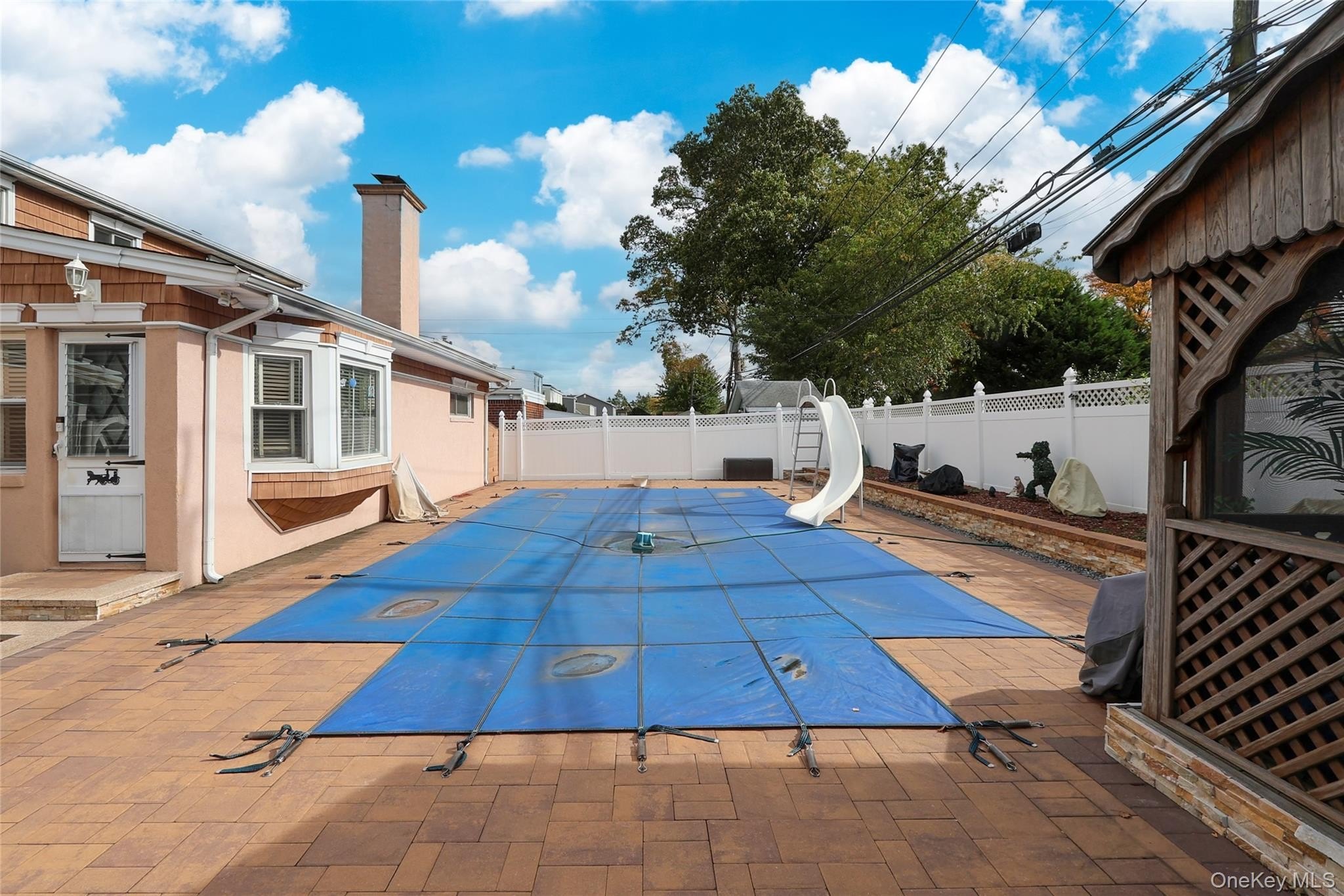 Welcome to 993 Ferngate Drive in Franklin Square , the first time on the market in almost 50 years! This custom designed expanded cape located mid block on a quiet street has beautiful curb & yard appeal and unique features. Set on a 60 x 100 lot, this spacious three bedroom, two full bathroom residence features two extensions, an inviting front porch, and gorgeous pavers and stonework throughout the property. Turf front lawn is maintenance free! Enjoy outdoor living with a large in-ground solar heated pool complete with diving board and slide, 2 year old pool filter, new privacy fence and a charming gazebo-perfect for entertaining. There is also an electronic awning, shed and sun visor in this custom designed fenced in yard. Open concept kitchen with stainless appliances, large family room, finished basement. This home has large rooms, many closets and a lot of storage. 8 year old roof. Updated 200AMP electric, young hot water heater, boiler and CAC unit. Forced heat and a thoughtfully designed layout for year-round comfort. Attached garage with new custom door. Sprinkler/ alarm. Conveniently located near restaurants, shops and parkways. Motivated seller.