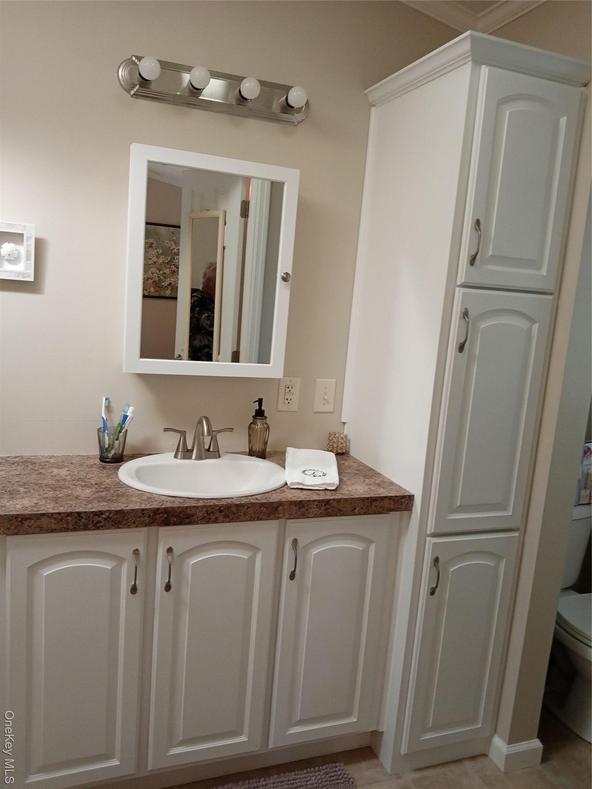 Welcome to Hometown America Glenwood Village! A Stunning immaculate 2-bedroom, ranch-style manufactured home, built in 2008, has just hit the market and is ready for its new owner. Step inside and be greeted by a spotless, bright, and airy interior. The eat-in kitchen features crisp white cabinetry, updated appliances, and sunshine-bringing skylights.The home offers a highly desired split bedroom layout floor plan for maximum privacy. The primary suite is a true retreat, boasting a large bedroom and an en-suite master bath complete with a spacious walk-in shower. At the opposite end of the home, you'll find the second full bathroom and an additional guest bedroom. Outdoor living & convenience Enjoy quiet, private gatherings on your Trex deck, thoughtfully bordered by privacy trees. The property also includes a convenient carport and a shed for all your extra storage needs.Don't miss this opportunity! This is hands-down the best buy on Long Island for senior living. Call today.