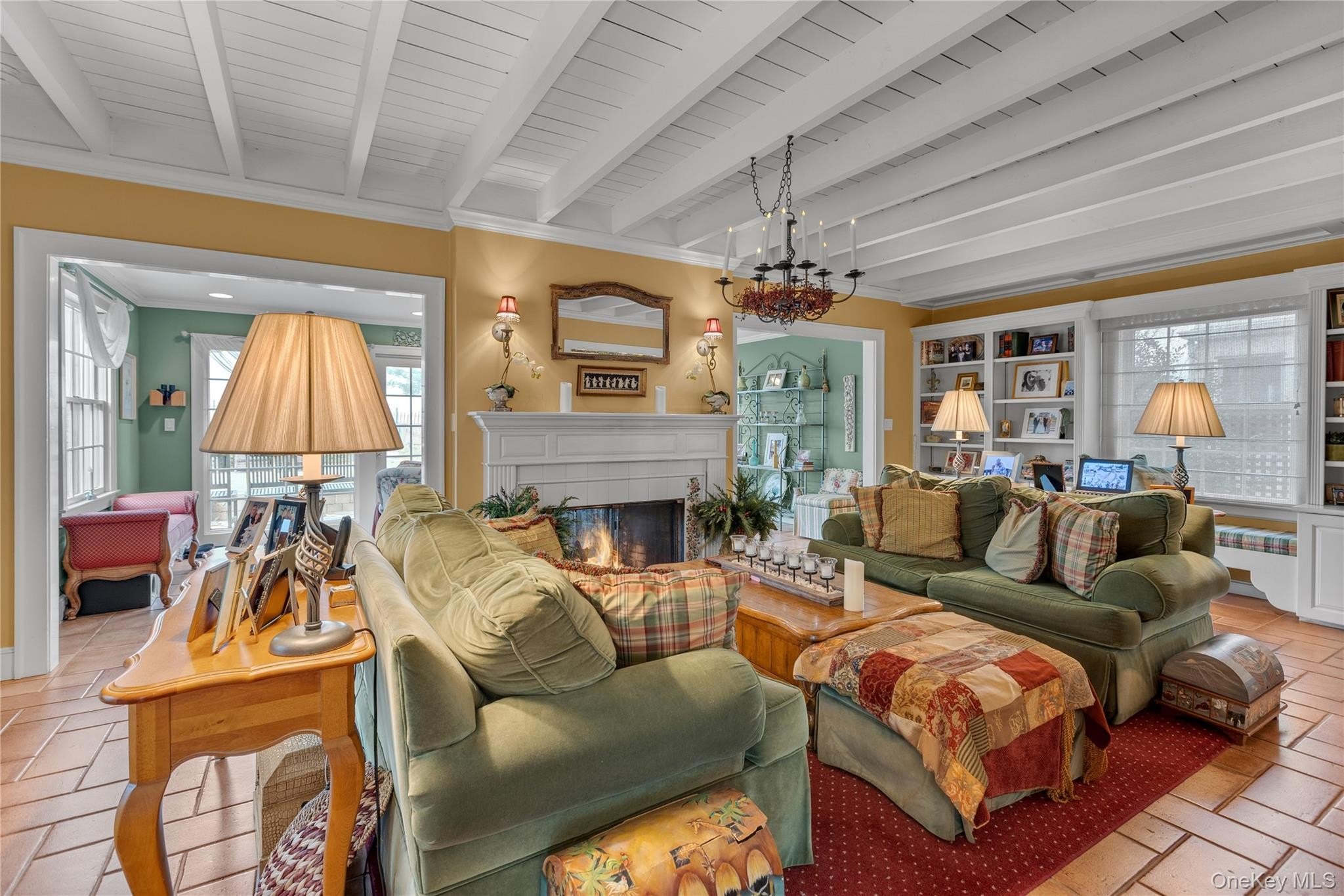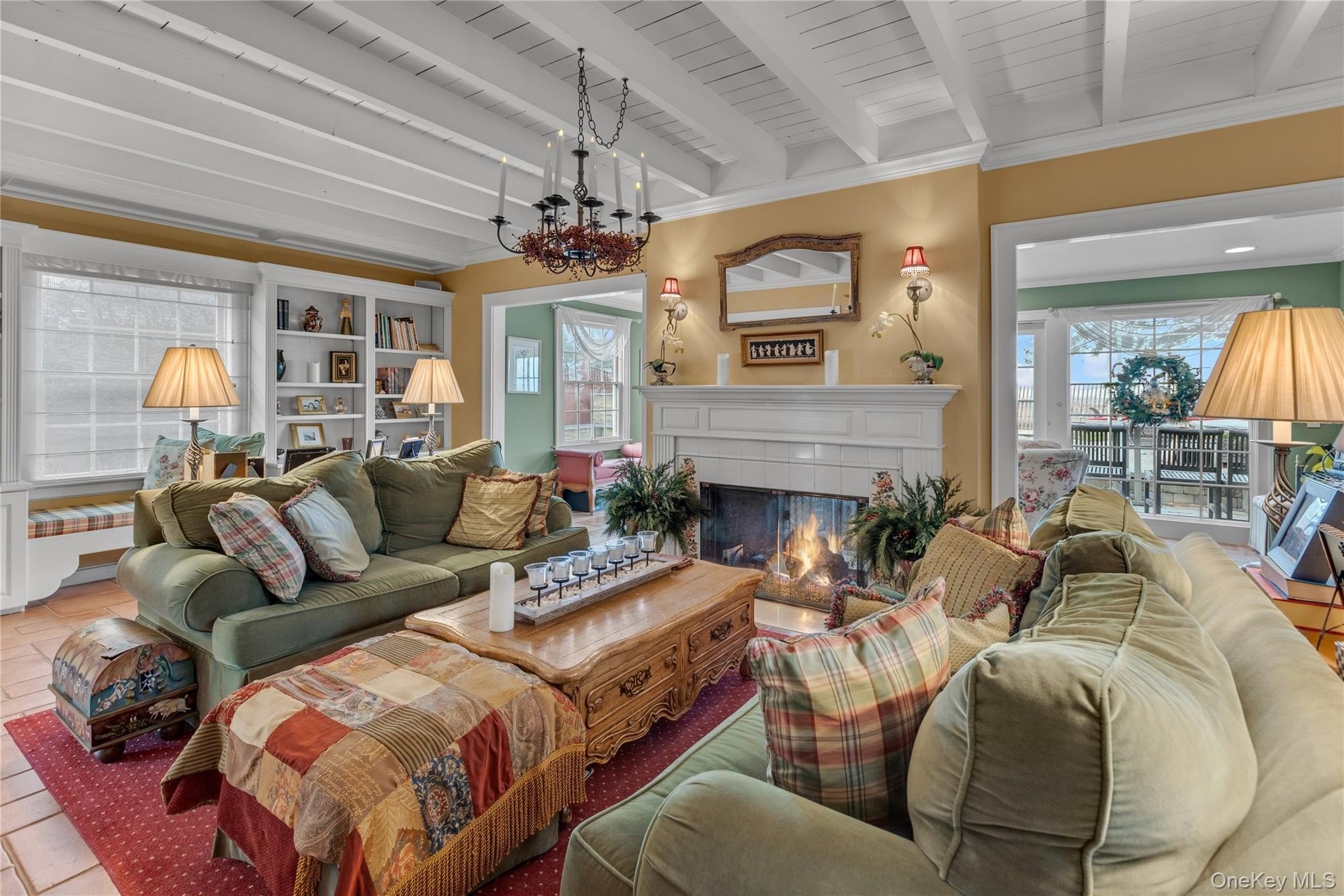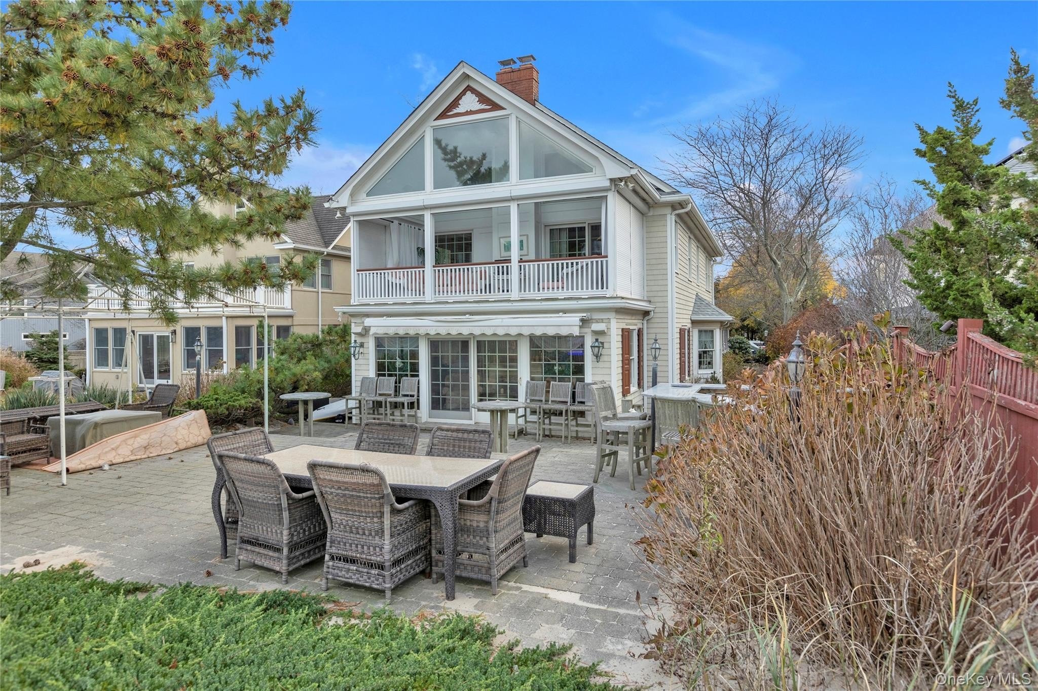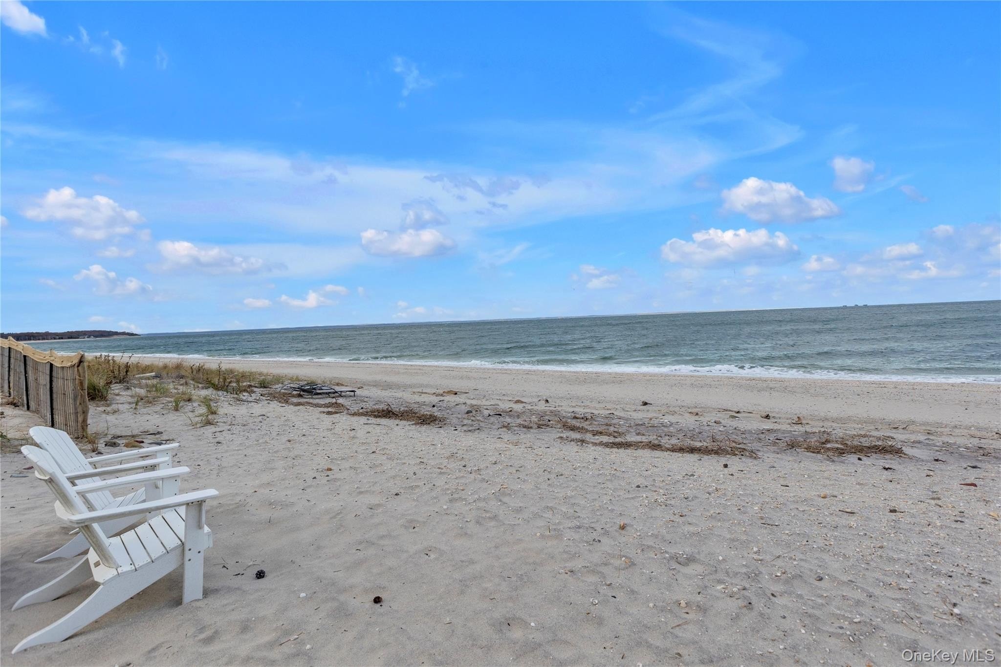 Embrace the toes-in-the-sand lifestyle with this stunning custom-designed 3-bedroom Colonial, perfectly situated on the shores of Long Island Sound. Thoughtfully crafted with elegant finishes and a spacious layout ideal for entertaining, this home offers a rare blend of coastal charm and refined sophistication. The grand Great Room features vaulted ceilings, a gas fireplace with hand-carved wood mantle, custom built-ins, and a wet bar. The chef's center island kitchen boasts custom cabinetry, high-end appliances, radiant heated floors, and a separate breakfast area. Additional main-level highlights include a formal dining room and a formal living room with a dual-sided fireplace shared with a cozy sitting room framed by French glass doors and windows overlooking the beach and Sound. Upstairs, the two-level primary suite impresses with vaulted ceilings, a gas fireplace, custom built-ins, a luxurious spa bath with radiant heated floors, generous closets, and sliding glass doors to a covered porch with sweeping water views across to Connecticut. Two additional bedrooms, a full bath, and a loft office overlooking the Great Room complete the second floor. The lower level includes a wine cellar, storage, and utility room. Outdoors, enjoy a half-acre of private beachfront paradise featuring a large patio with outdoor bar and grilling station-ideal for summer entertaining. Additional amenities include first floor radiant heated floors, Central Vacuum, Gas heat, Whole house Generator, Buderus heating system, detached two-car garage with a second-level artist studio and a spacious stone paver driveway with abundant parking. Experience coastal living at its finest-where elegance meets the sea.
