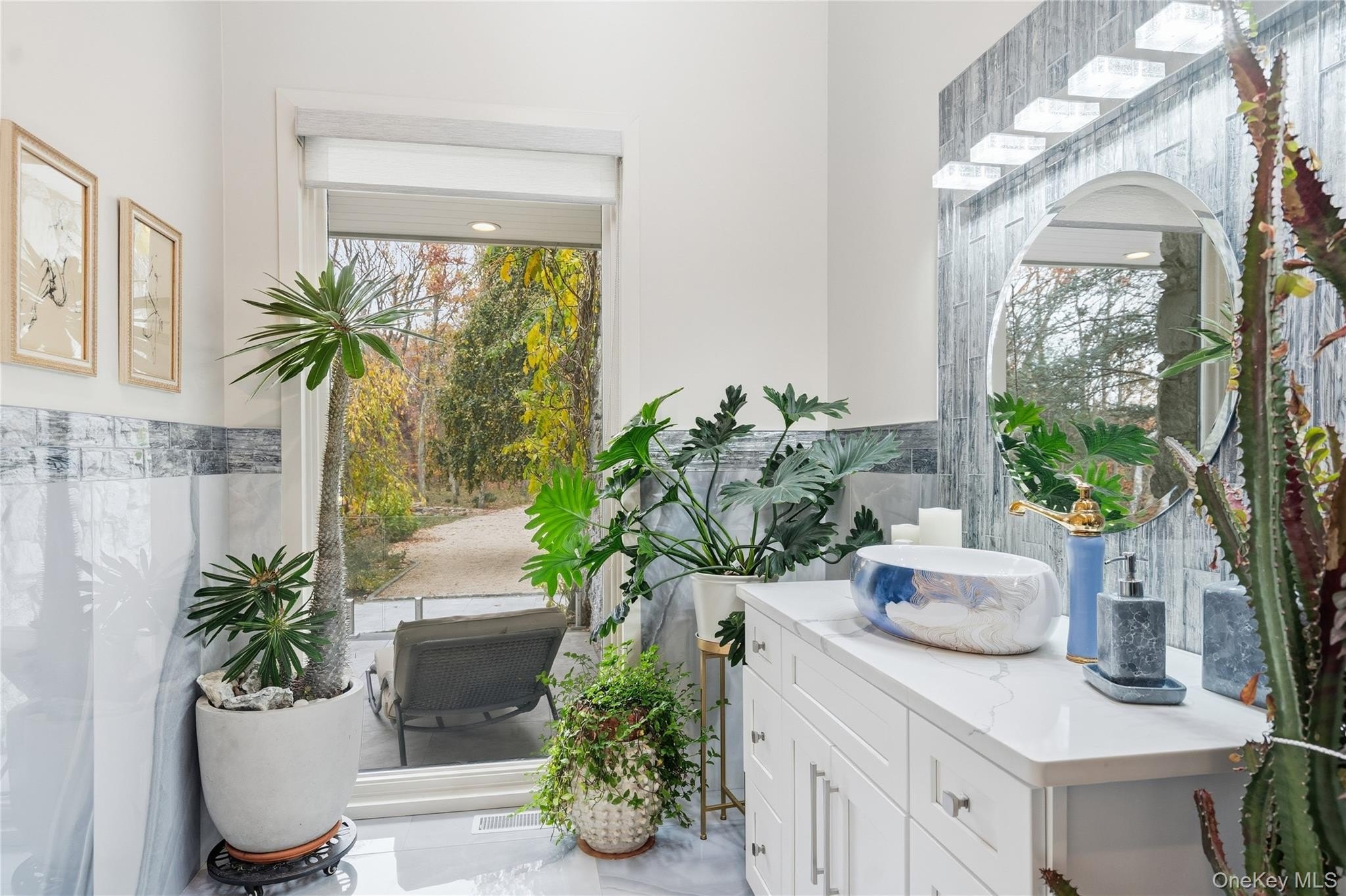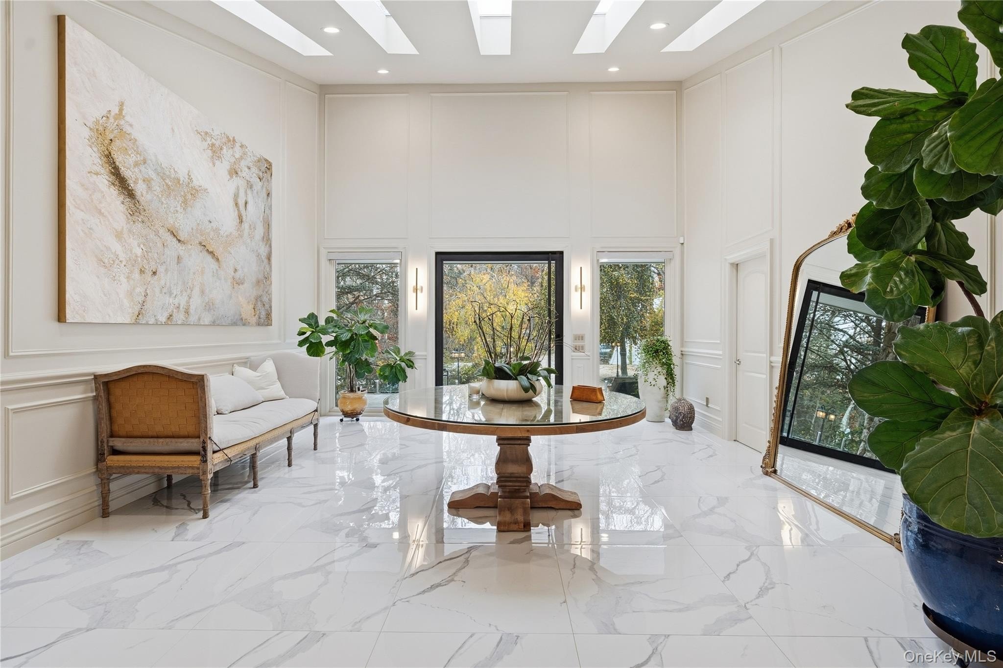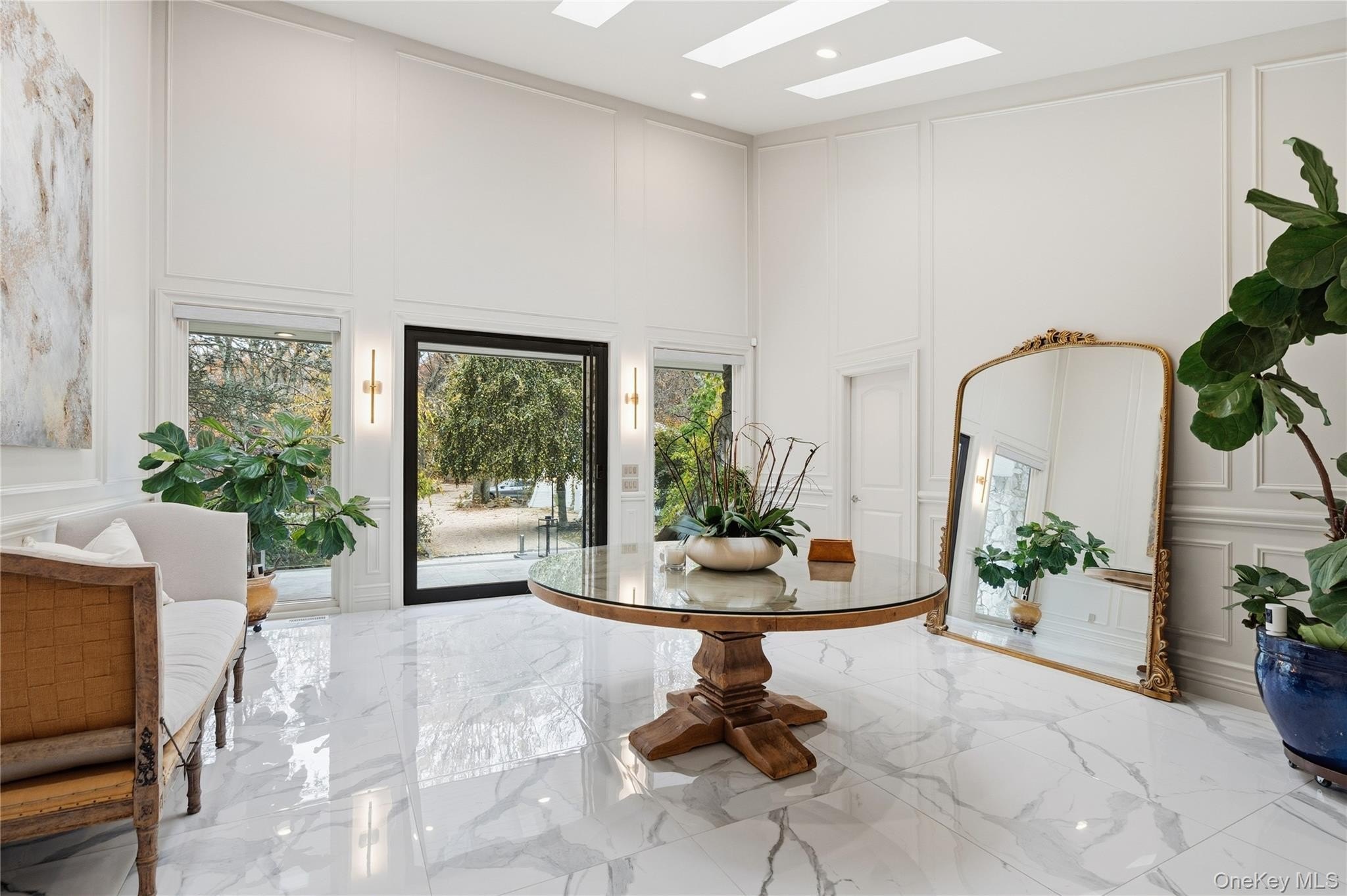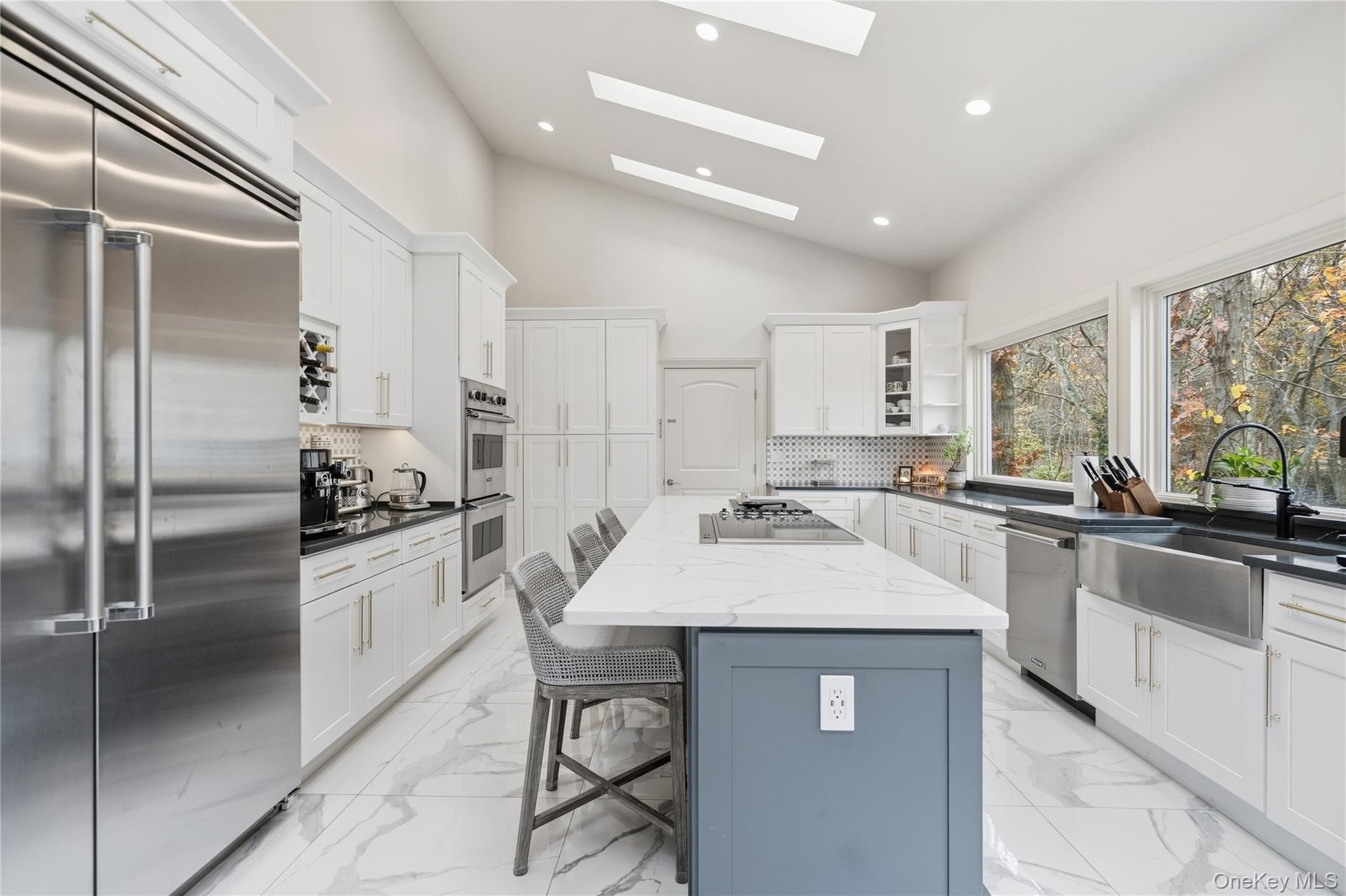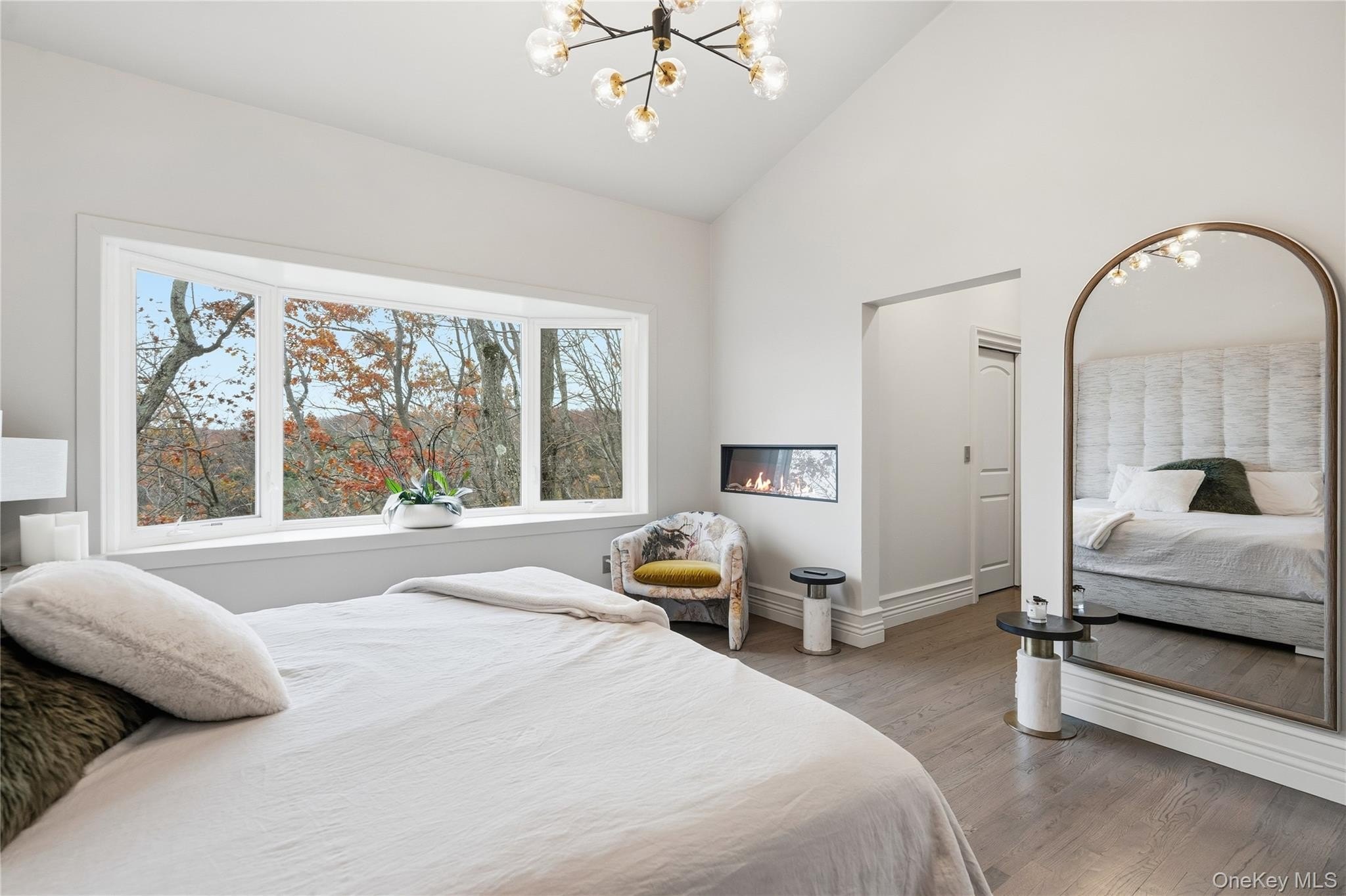 Special Contemporary 5 bedrooms, 5.5 bath home filled with light and space! From the moment you step into the grand foyer with its soaring cathedral ceiling, this contemporary home impresses with its light and open design. Walls of windows throughout create a seamless connection between indoors and outdoors, bathing every room in natural light. Each of the five bedrooms features its own private bath. The gourmet kitchen is equipped with top of the line viking stainless steel appliances. Just beyond the kitchen, the expansive great room features hardwood floors, a double-sided fireplace, and sliding glass doors that open to a wraparound terrace- an ideal space for gatherings or quiet relaxation. The adjacent dining room completes this elegant and functional main living area. The private primary suite offers a serene retreat with a fully renovated bathroom, plenty of closet space and two walls of windows overlooking the property. Outside, surrounded by nature, is a 3 car garage, and a heated gunite salt water pool. This home is truly unique and special.