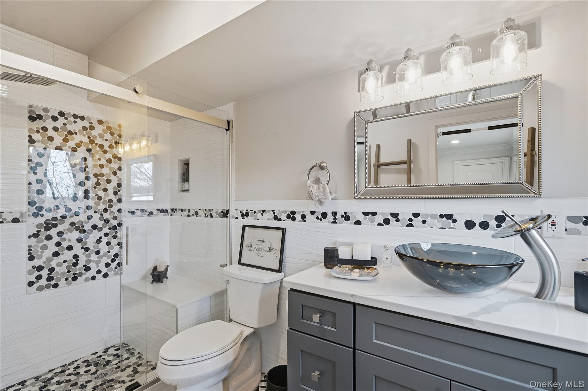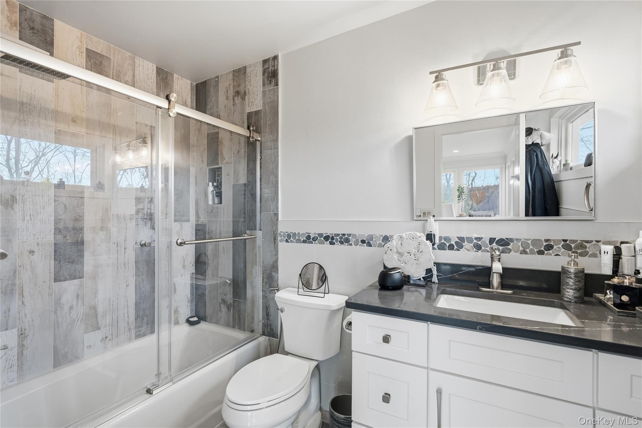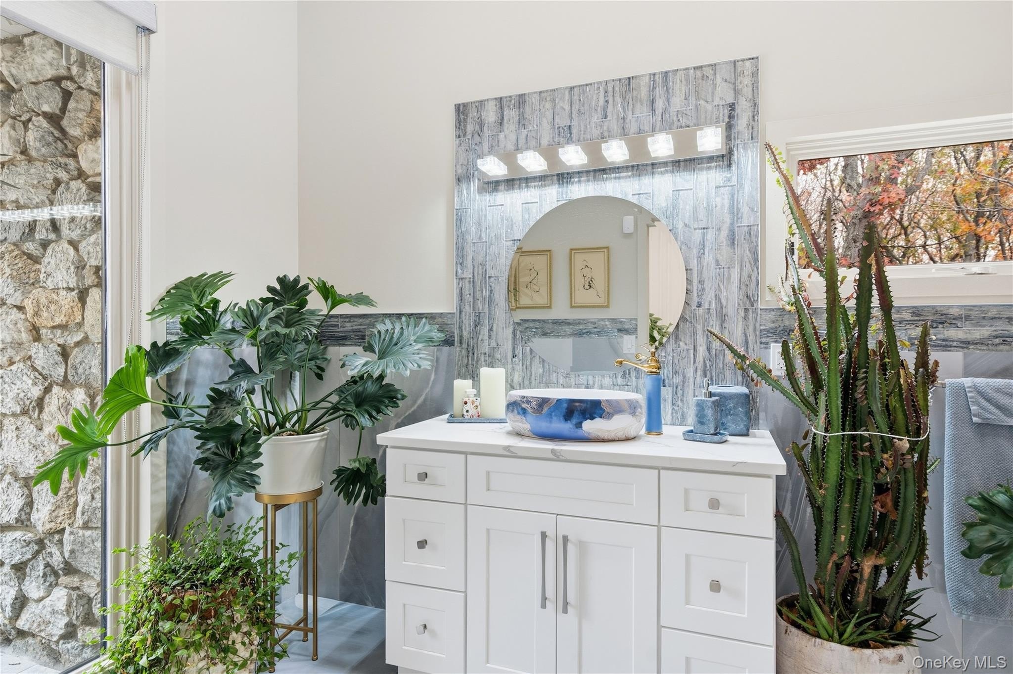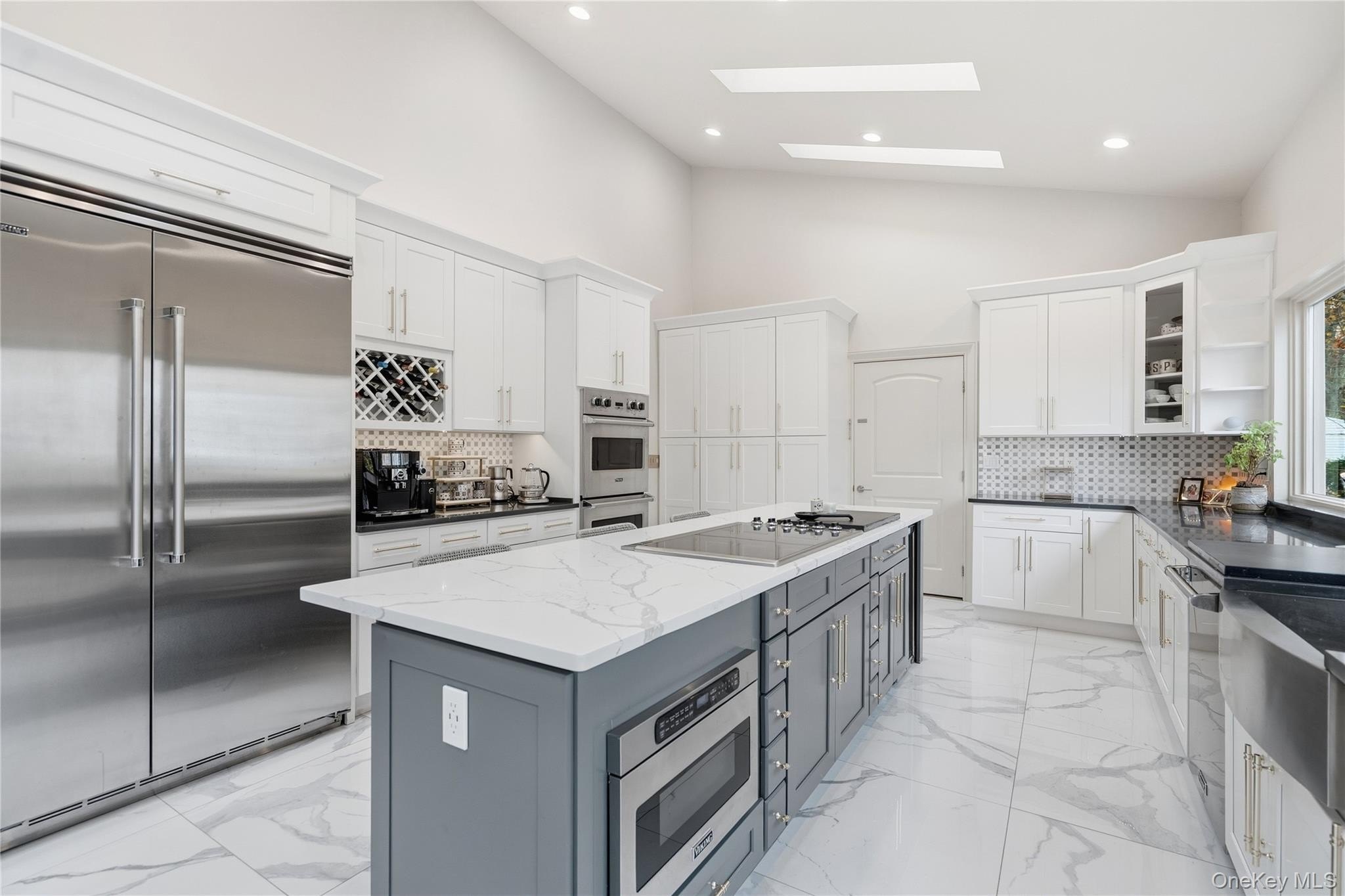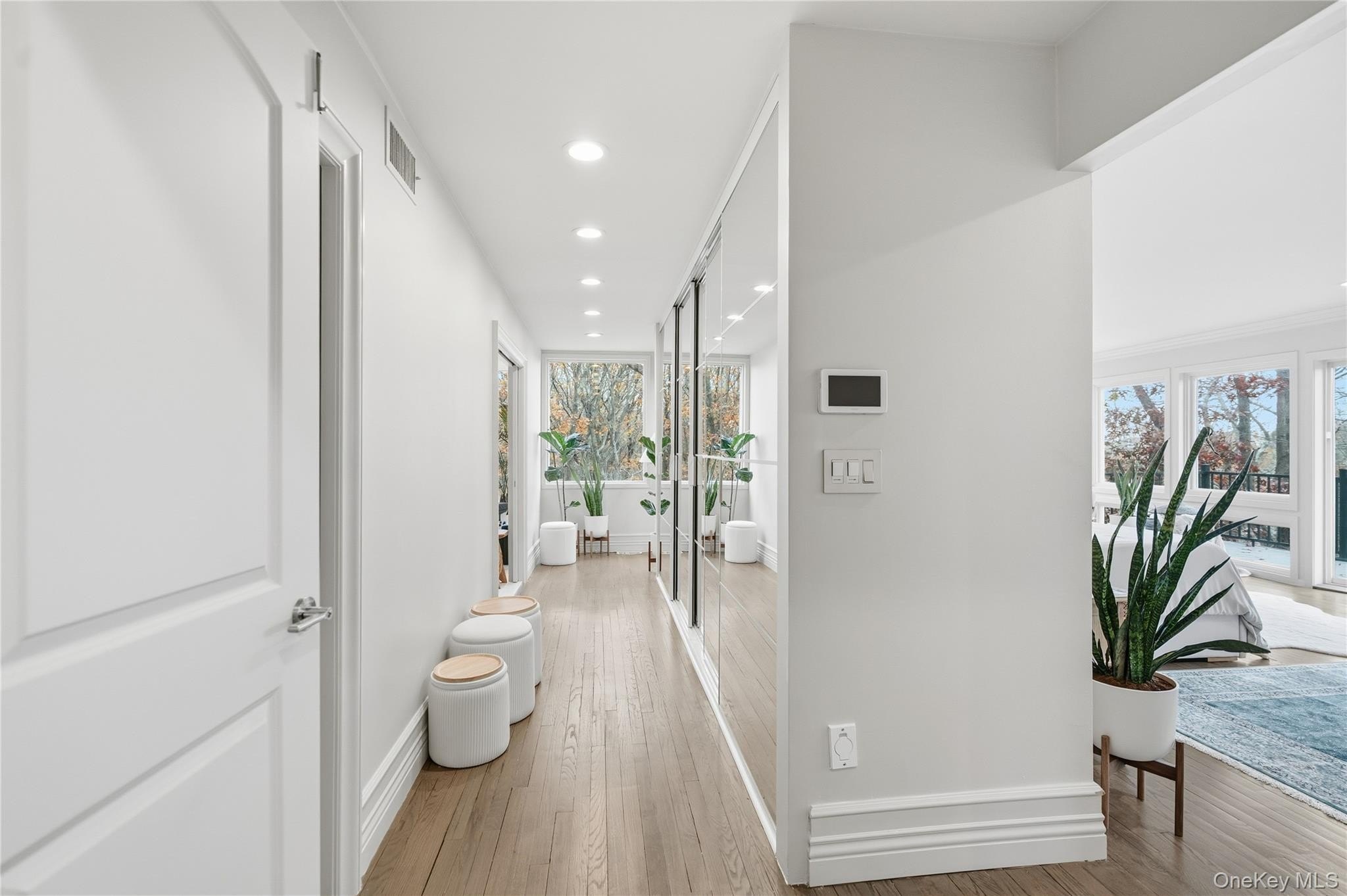 Special Contemporary 5 bedrooms, 5.5 bath home filled with light and space! From the moment you step into the grand foyer with its soaring cathedral ceiling, this contemporary home impresses with its light and open design. Walls of windows throughout create a seamless connection between indoors and outdoors, bathing every room in natural light. Each of the five bedrooms features its own private bath. The gourmet kitchen is equipped with top of the line viking stainless steel appliances. Just beyond the kitchen, the expansive great room features hardwood floors, a double-sided fireplace, and sliding glass doors that open to a wraparound terrace- an ideal space for gatherings or quiet relaxation. The adjacent dining room completes this elegant and functional main living area. The private primary suite offers a serene retreat with a fully renovated bathroom, plenty of closet space and two walls of windows overlooking the property. Outside, surrounded by nature, is a 3 car garage, and a heated gunite salt water pool. This home is truly unique and special.
