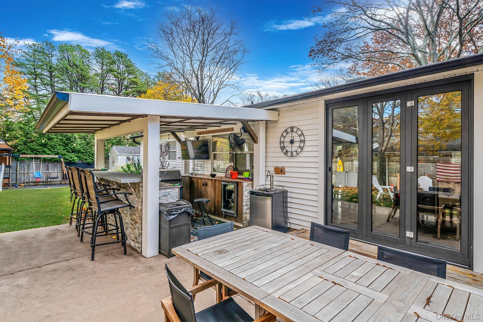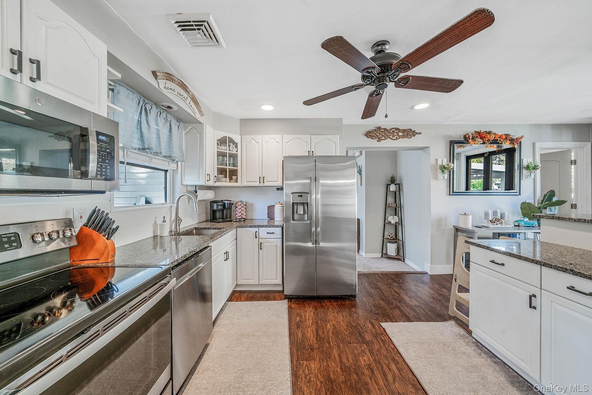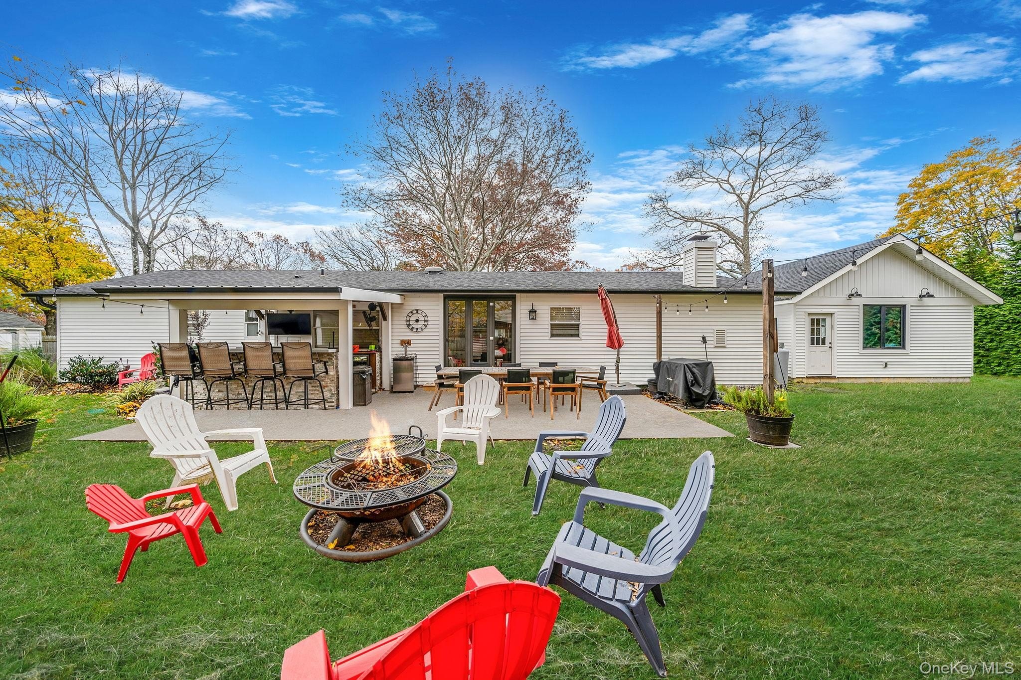 Charming Updated Ranch in the Sought-After Shoreham-Wading River School District! Move-in ready has never looked so good! Welcome home to this beautifully updated 3 bedrooms, 1 bath ranch that perfectly blends comfort and style. Enjoy relaxing evenings or lively gatherings in the spacious family room featuring high ceilings, skylights, and a warm gas fireplace. The modern kitchen shines with granite countertops and stainless steel appliances, all updated within the last 5 years along with the boiler, roof, floors, windows, laundry machines, central air, and inground sprinklers. Enjoy seamless indoor-outdoor living with custom fully-opening sliders that lead to an entertainer's fenced-in backyard complete with a custom-built bar ideal for summer parties, quiet mornings, or anything in between. Need storage or workspace? You'll love the newly constructed 2-car garage with new windows and its own separate electric panel; and a Tesla charging station, a rare and valuable feature. Located in the highly desirable Shoreham-Wading River School District, this home offers both tranquility and proximity to the best of the North Shore: fine dining, wineries, farms, and beautiful beaches just minutes away. A must see property that truly has it all; updated, stylish, and ready for you to move in. Message for more details or to schedule a private showing!