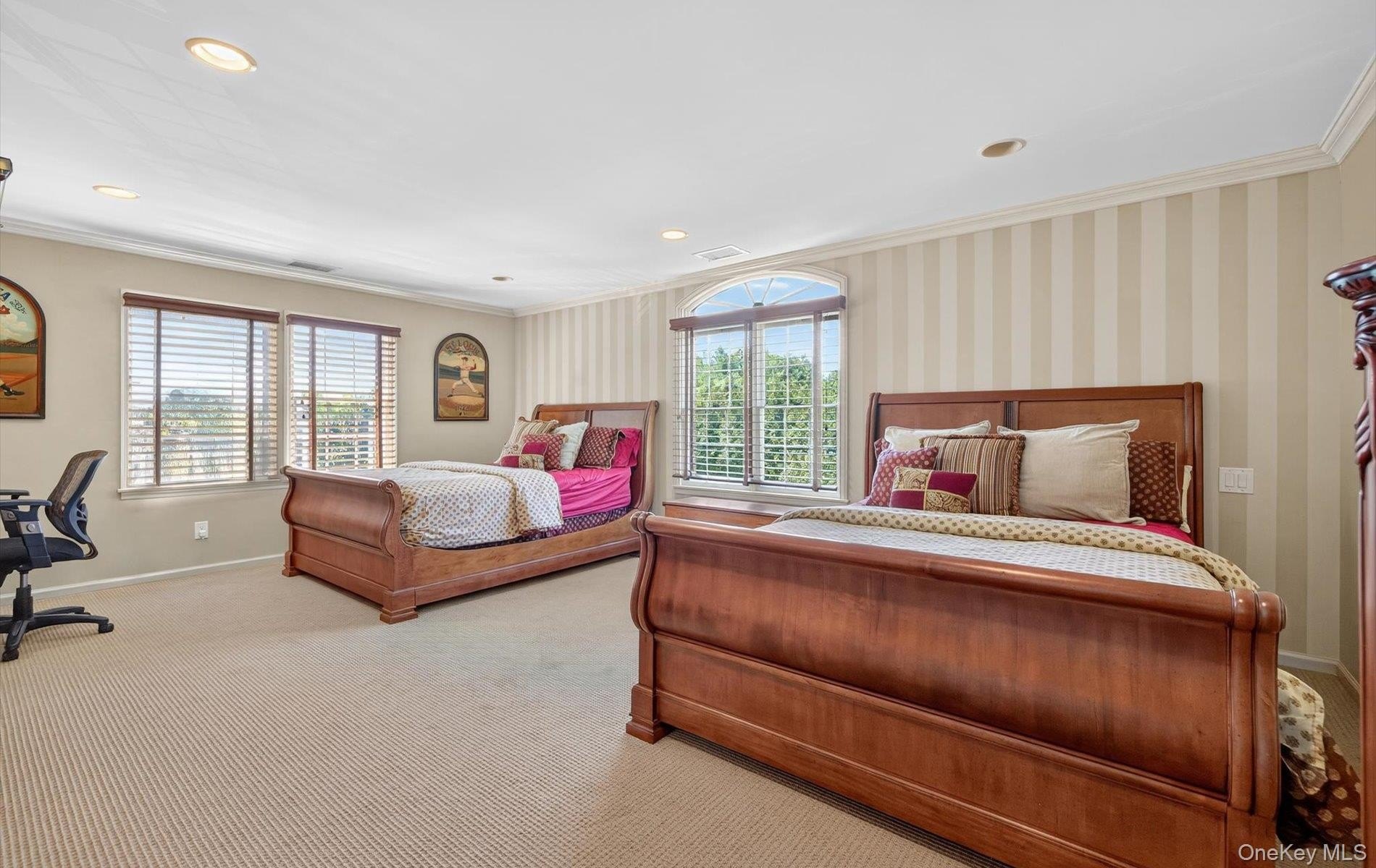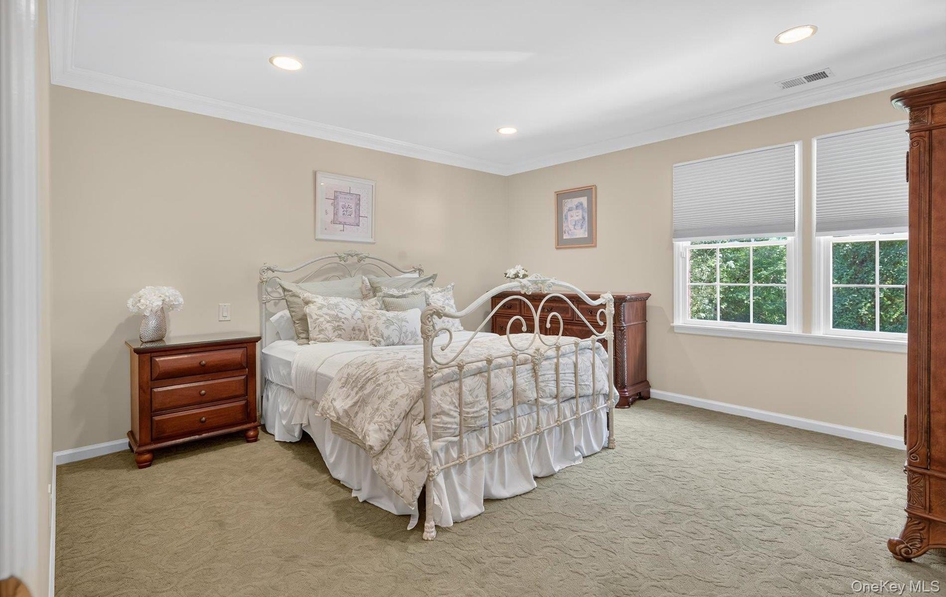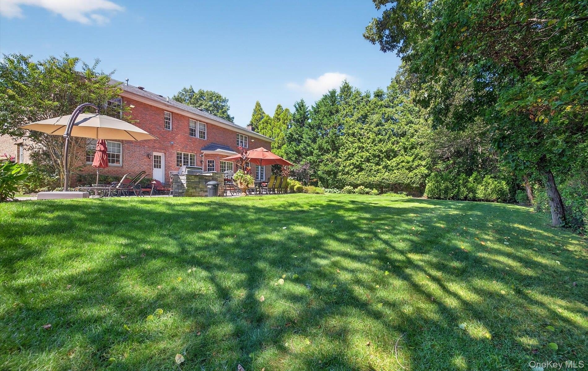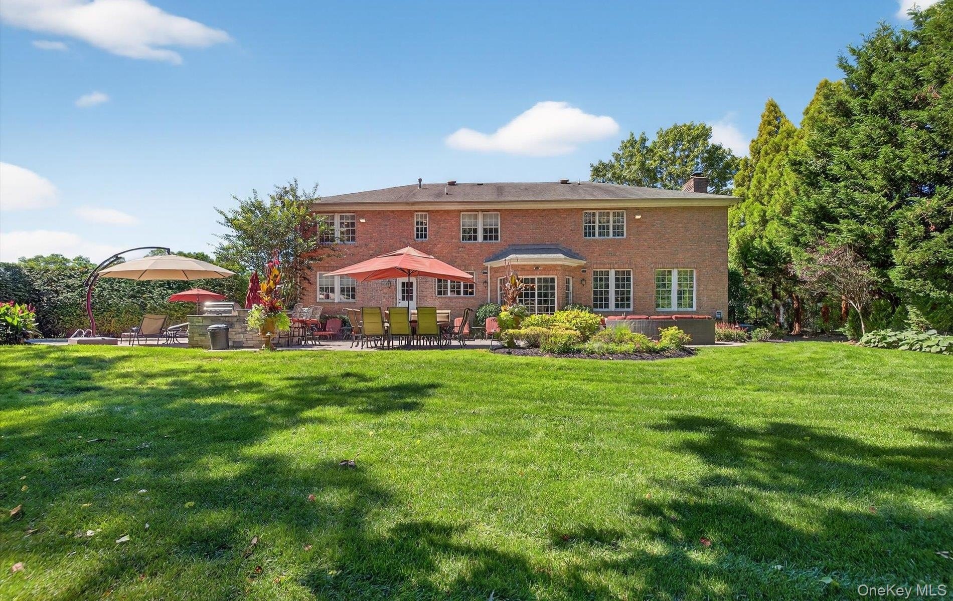 Welcome to 70 Keri Way, Woodbury - an impressive all-brick Colonial nestled on a quiet cul-de-sac in Rolling Hills 3. Built in 2003, this 5,120 sq. ft. home is the largest model in the community, offering 6 bedrooms, 4.5 baths, with a finished bonus room designed as junior suite with its own full bath and sitting room. Inside, you'll find a 2-story entry leading to pa gracious living room with a built-in bar, a formal dining room, and a chefs eat-in kitchen with gas cooking, a center island, and stainless-steel appliances. A versatile first-floor bedroom/office with an adjacent full bath provides flexibility for guests or work-from-home living. The finished lower level and built-in speaker system enhance the home's functionality and entertainment appeal. Set on a beautifully landscaped half-acre (.507) property, the backyard was designed for resort-style enjoyment. Relax and entertain with a 4-year-old heated inground pool with spectacular waterfall, built-in BBQ/bar, and cozy firepit-your own private retreat. A side-entry 3-car garage completes the package. Located within the Syosset School District (Walt Whitman Elementary, HB Thompson Middle, Syosset High School), this residence perfectly blends elegance, comfort, and luxury living