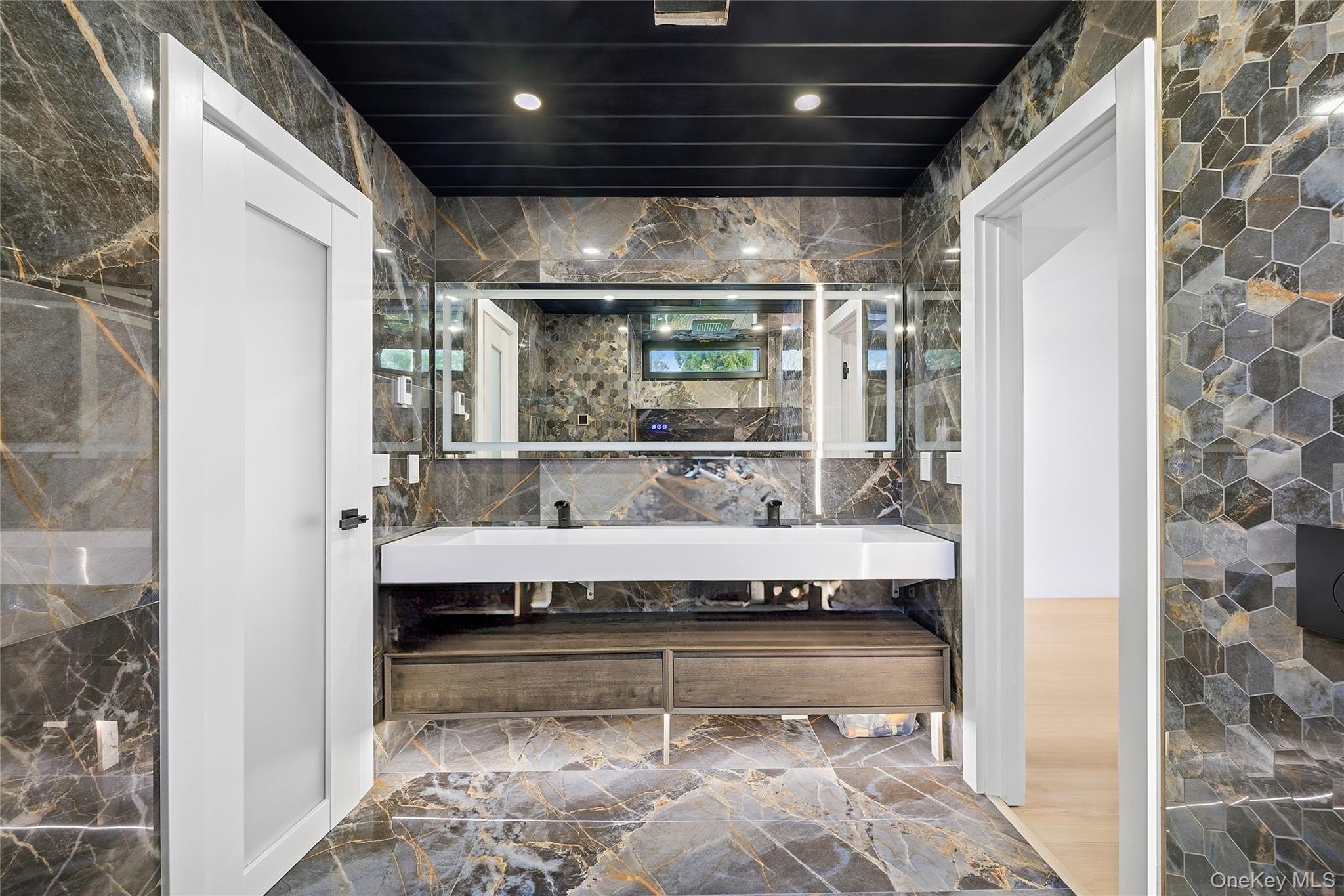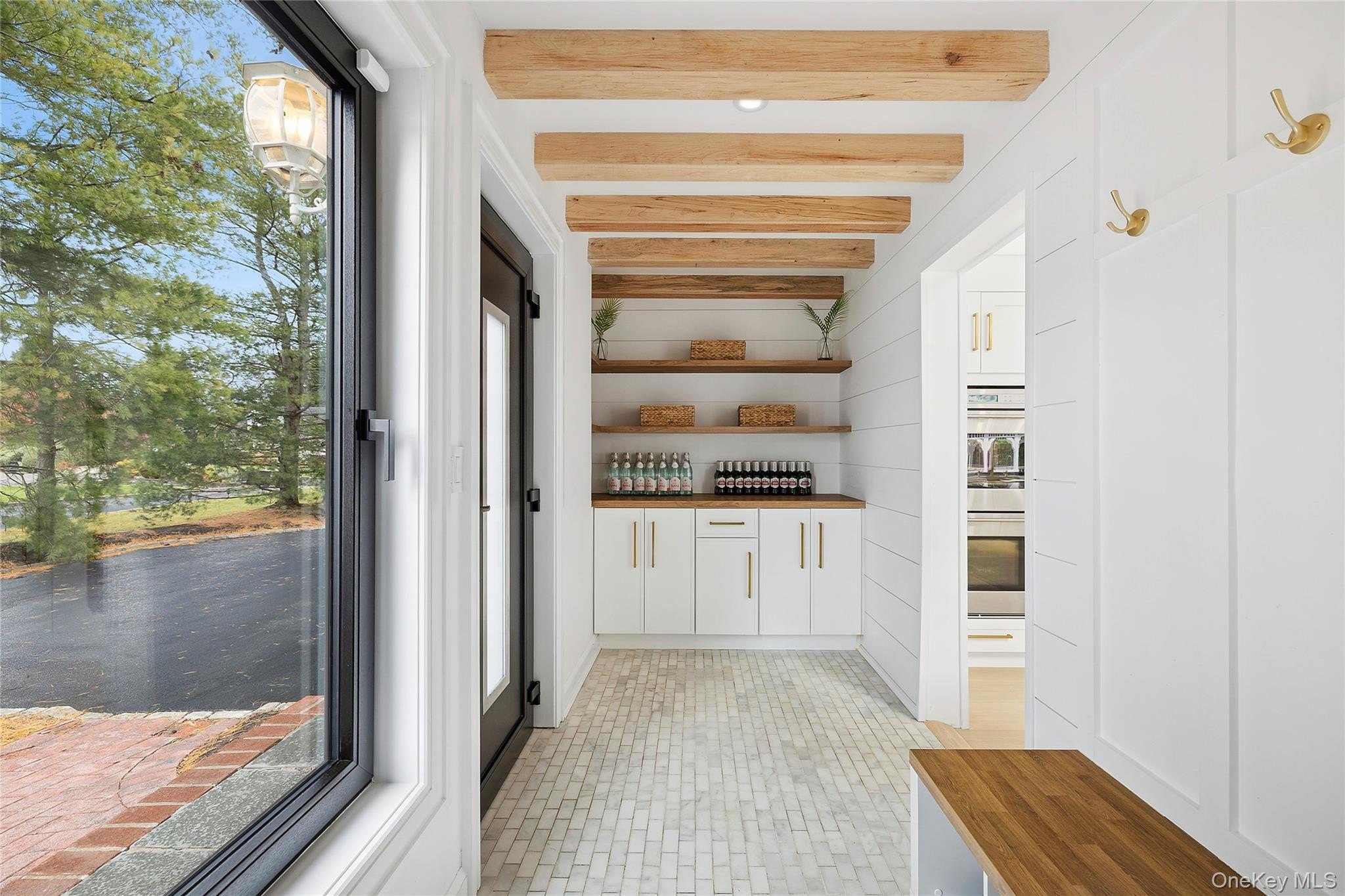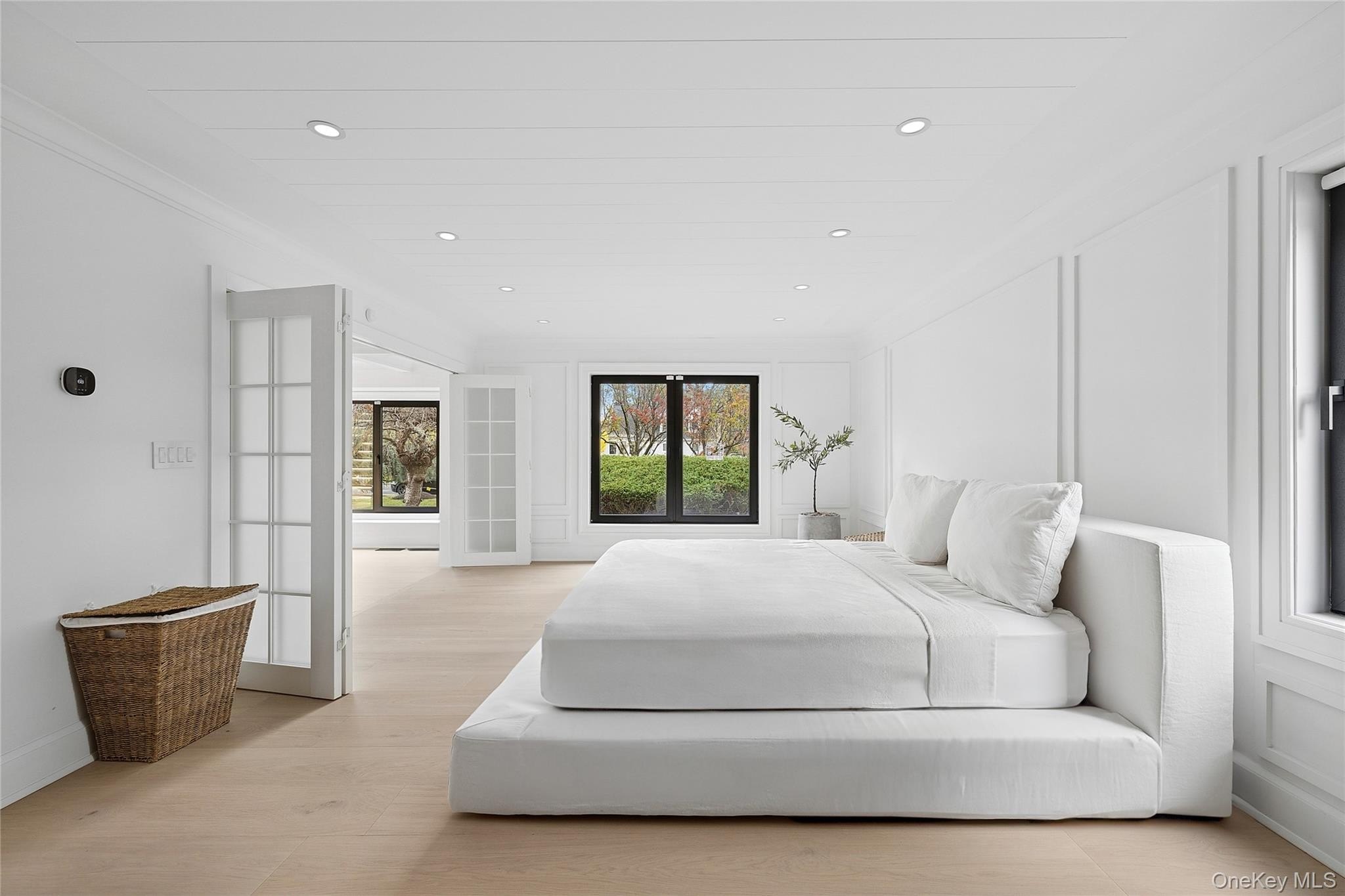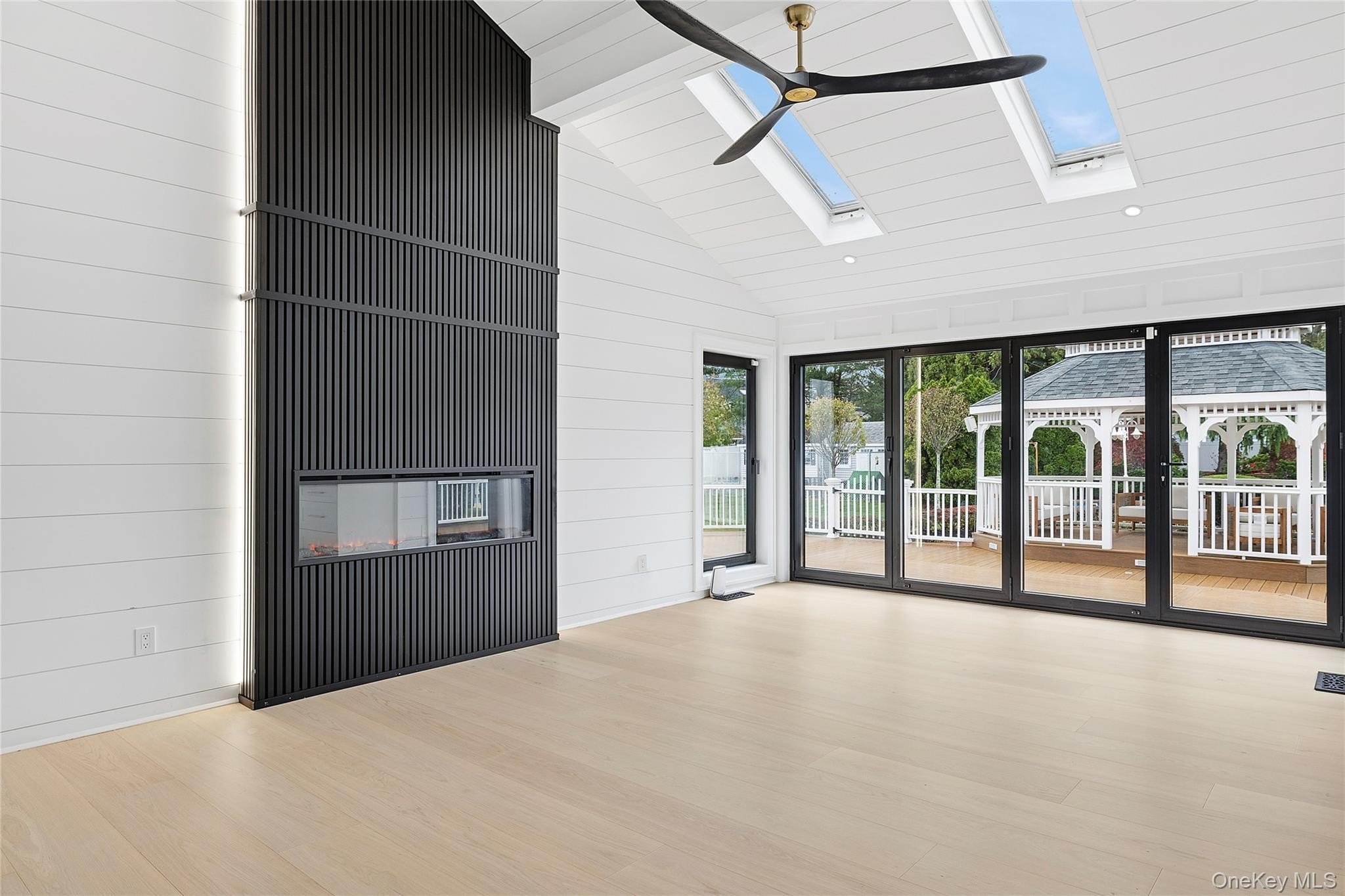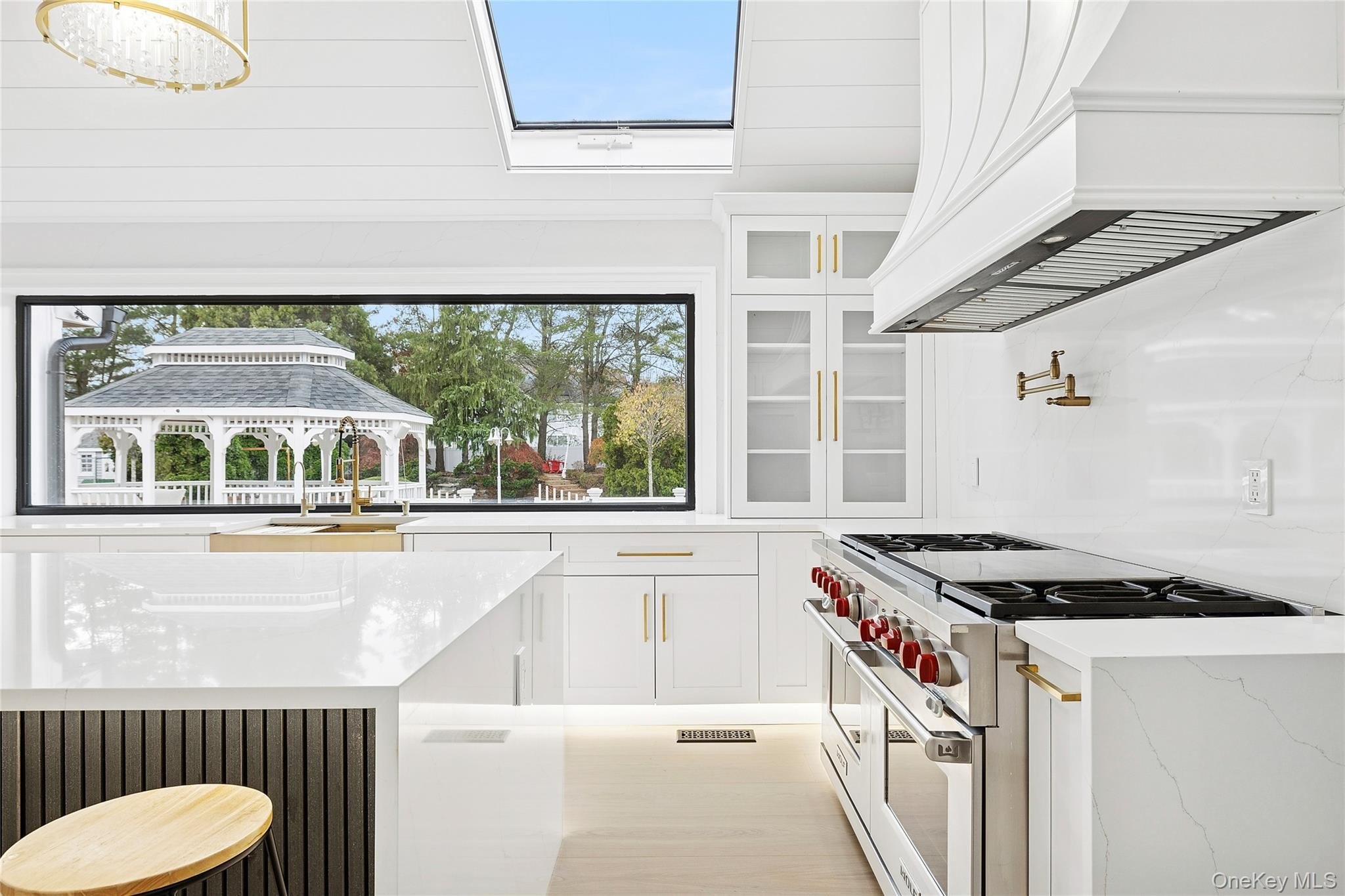 Stunning 4,000 square foot Hampton-style farm ranch, set on a private cul-de-sac and completely remodeled in 2024. This custom-built residence welcomes you with a grand entry foyer featuring 20-foot cathedral ceilings, intricate custom millwork, and white oak hardwood floors with radiant heat throughout. The first floor offers a formal living room with a floor-to-ceiling marble fireplace and bar area, a spacious dining room that opens to the backyard, and an oversized chef's kitchen with a 16-foot island, 60-inch Wolf range, double wall ovens, Subzero side-by-side refrigerator and freezer, a Thermador 7-foot wine cooler, walk-in pantry, butler's pantry, and custom cabinetry. The primary suite includes its own fireplace, a luxurious marble bath with freestanding tub and rain shower, radiant heated floors, and a custom California Closet walk-in wardrobe. Two additional bedrooms and beautifully appointed baths complete the main level, which also features Restoration Hardware chandeliers, three marble fireplaces, radiant heat throughout, Lutron lighting, and a new central air system. Upstairs, a loft overlooks the main living space and leads to two additional bedrooms, including a suite with a steam bath, walk-in closet, and laundry. The 3,000 square foot unfinished basement provides endless potential for additional living or recreation. Outdoors, the property is designed for entertaining with an expansive Peruvian teak deck, paved patio, custom gazebo, free-form heated saltwater pool, and a basketball court, all surrounded by lush landscaping. Ideally located near Stony Brook University, shopping, schools, restaurants, the LIRR, and three hospitals, this extraordinary residence offers the ideal blend of luxury, comfort, and indoor-outdoor living.