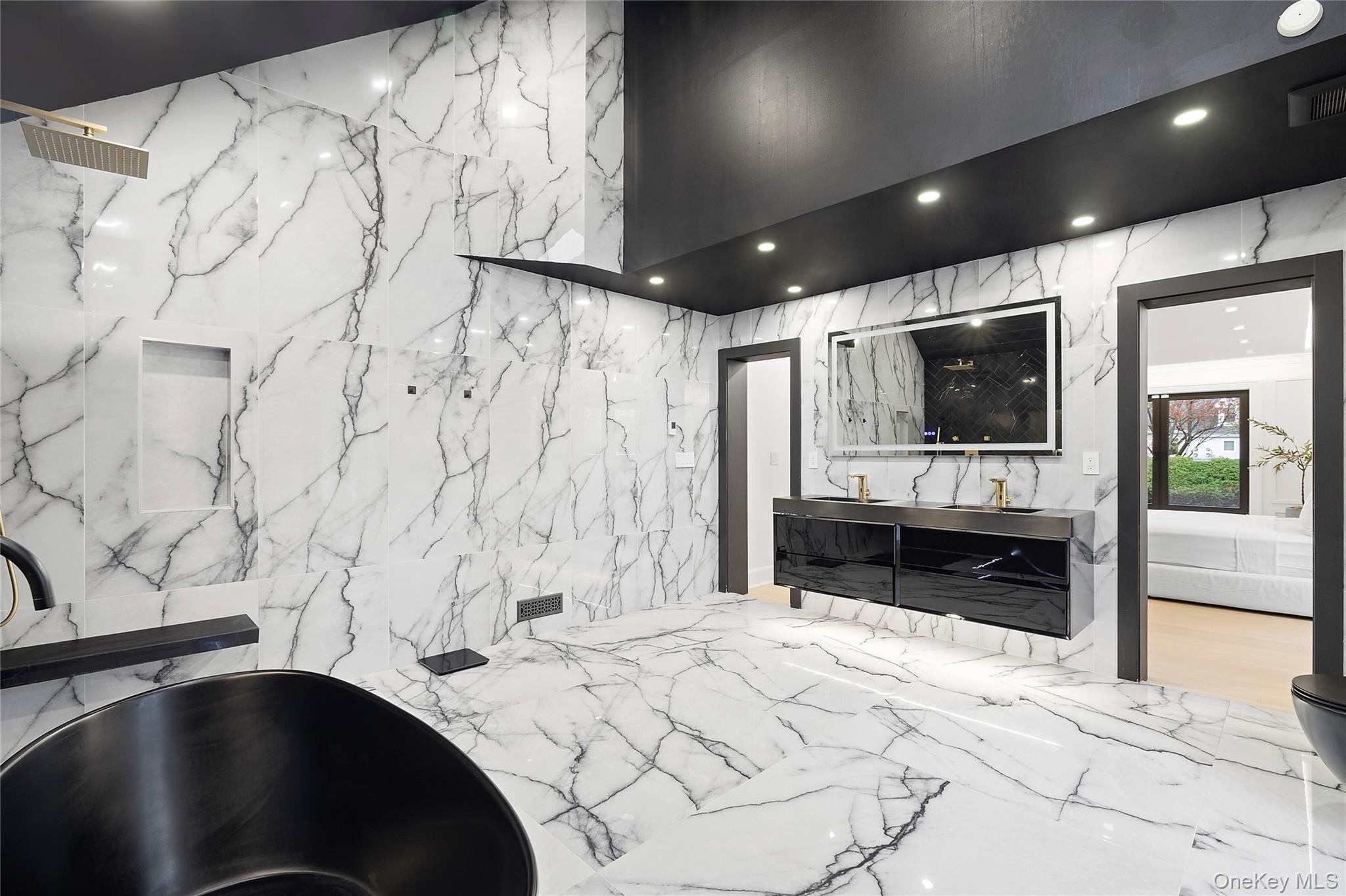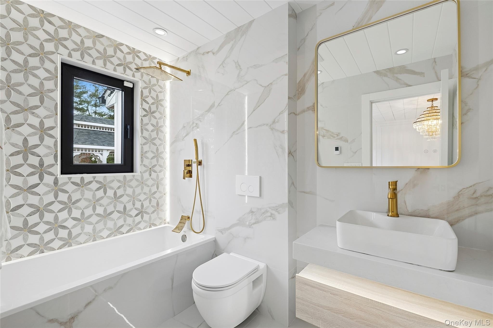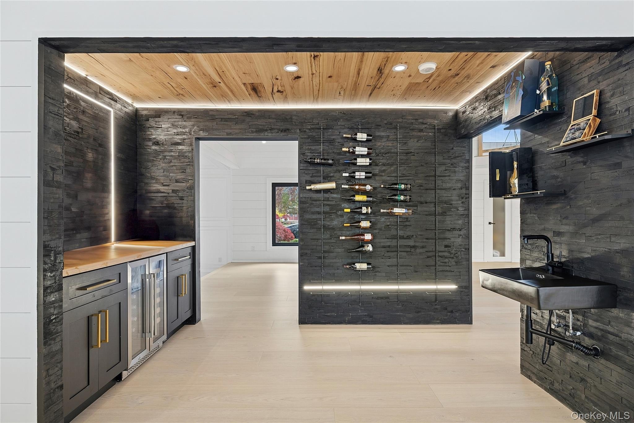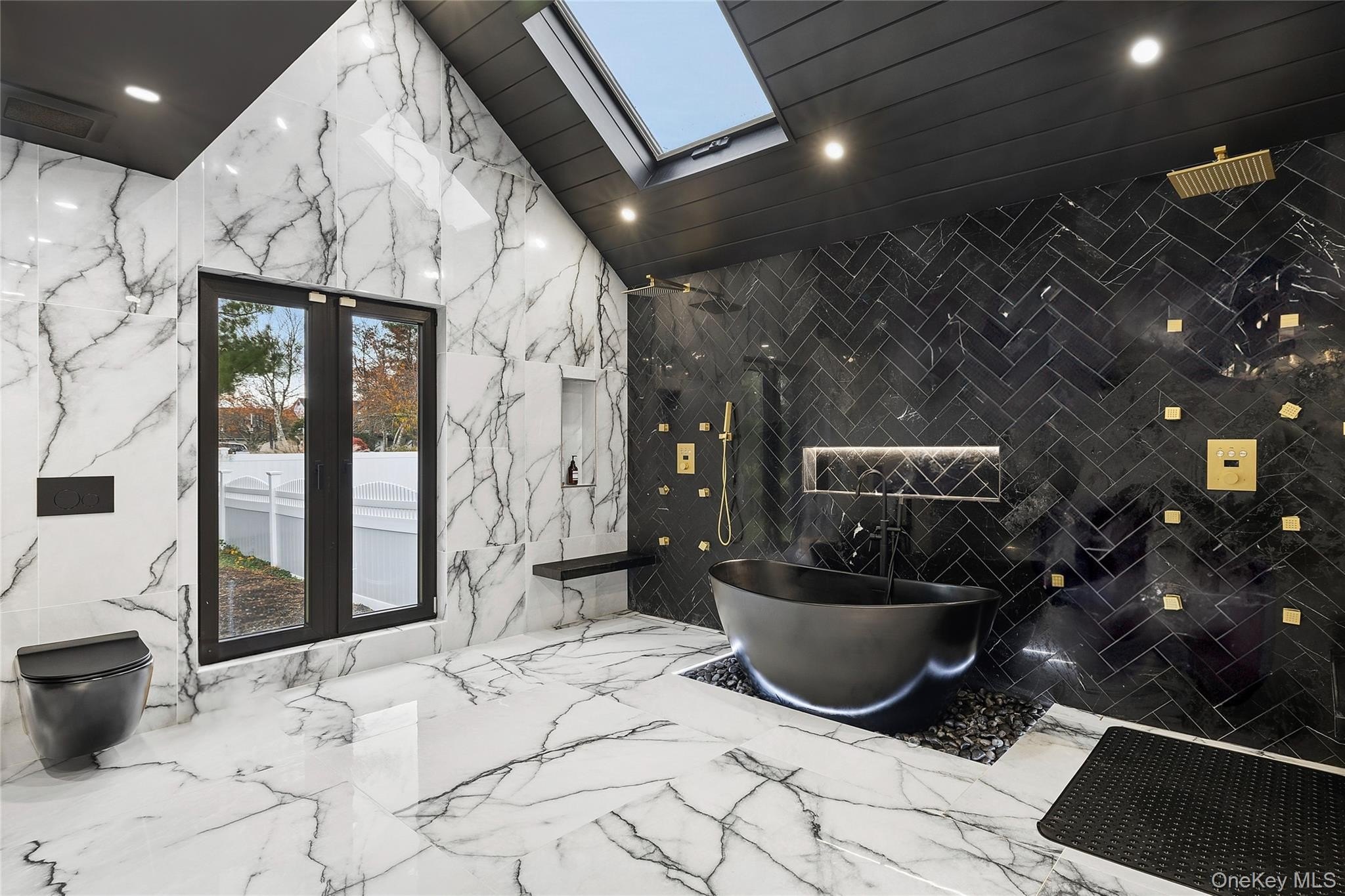 Stunning 4,000 square foot Hampton-style farm ranch, set on a private cul-de-sac and completely remodeled in 2024. This custom-built residence welcomes you with a grand entry foyer featuring 20-foot cathedral ceilings, intricate custom millwork, and white oak hardwood floors with radiant heat throughout. The first floor offers a formal living room with a floor-to-ceiling marble fireplace and bar area, a spacious dining room that opens to the backyard, and an oversized chef's kitchen with a 16-foot island, 60-inch Wolf range, double wall ovens, Subzero side-by-side refrigerator and freezer, a Thermador 7-foot wine cooler, walk-in pantry, butler's pantry, and custom cabinetry. The primary suite includes its own fireplace, a luxurious marble bath with freestanding tub and rain shower, radiant heated floors, and a custom California Closet walk-in wardrobe. Two additional bedrooms and beautifully appointed baths complete the main level, which also features Restoration Hardware chandeliers, three marble fireplaces, radiant heat throughout, Lutron lighting, and a new central air system. Upstairs, a loft overlooks the main living space and leads to two additional bedrooms, including a suite with a steam bath, walk-in closet, and laundry. The 3,000 square foot unfinished basement provides endless potential for additional living or recreation. Outdoors, the property is designed for entertaining with an expansive Peruvian teak deck, paved patio, custom gazebo, free-form heated saltwater pool, and a basketball court, all surrounded by lush landscaping. Ideally located near Stony Brook University, shopping, schools, restaurants, the LIRR, and three hospitals, this extraordinary residence offers the ideal blend of luxury, comfort, and indoor-outdoor living.