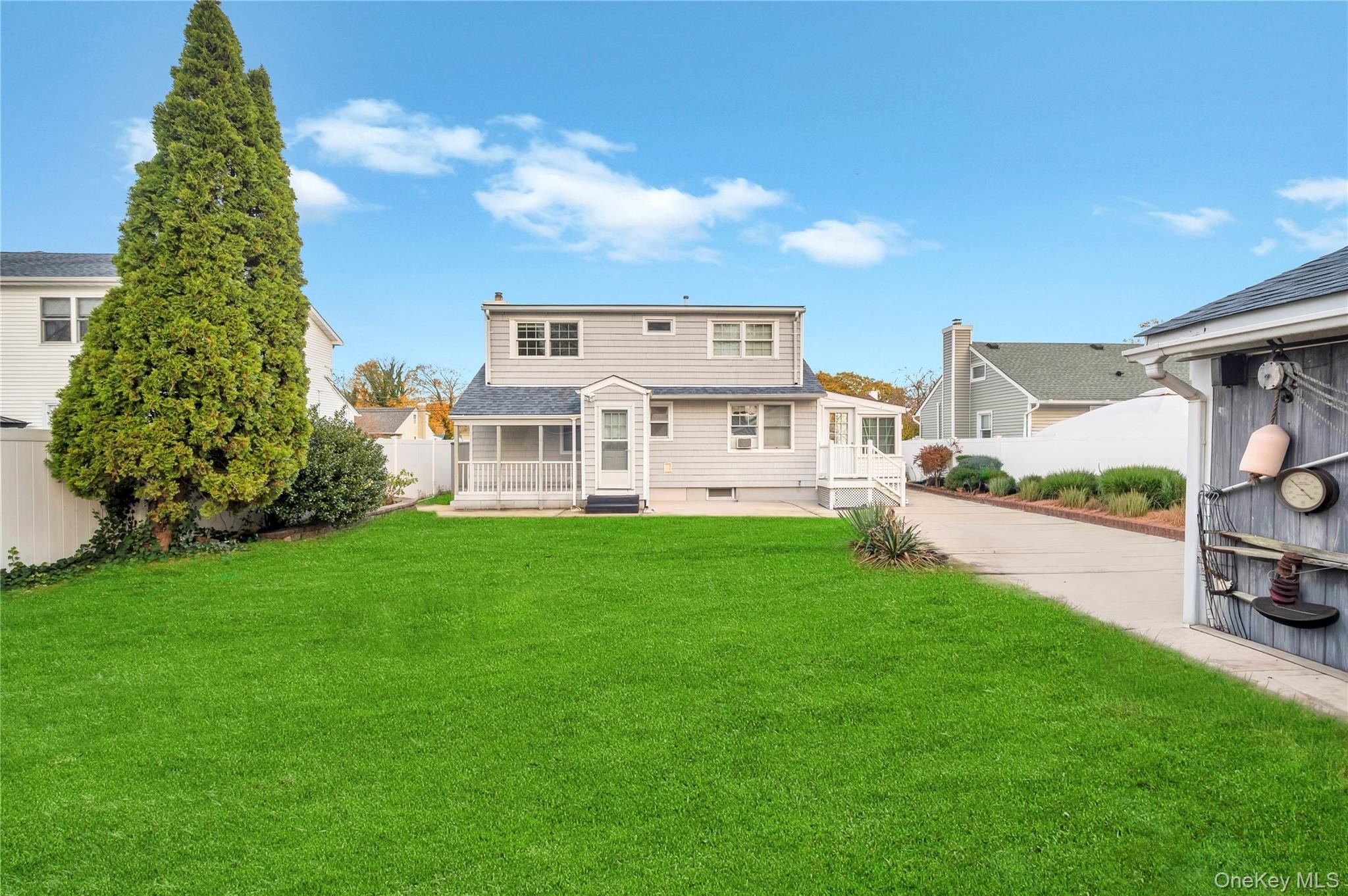 Welcome to 22 Herman Ave! This charming expanded Cape includes 5 bedrooms and 2.5 baths. This bright, light-filled home features a thoughtfully designed layout with a large rear dormer, a sweet sunroom, and a full finished basement with an outside entrance for each level-offering endless potential for a mother-daughter setup or generational living with the proper permits. Enjoy the convenience of efficient natural gas heat, sewer connection, and a detached 2-car garage. You'll delight in the private fenced yard with a storage shed, perfect for outdoor gatherings. Situated neighborhood with abundant shopping and dining along Deer Park Avenue, this home combines small-town charm with easy accessibility for commuters-truly a delightful place to call home. Don't miss your chance to own a piece of Long Island!