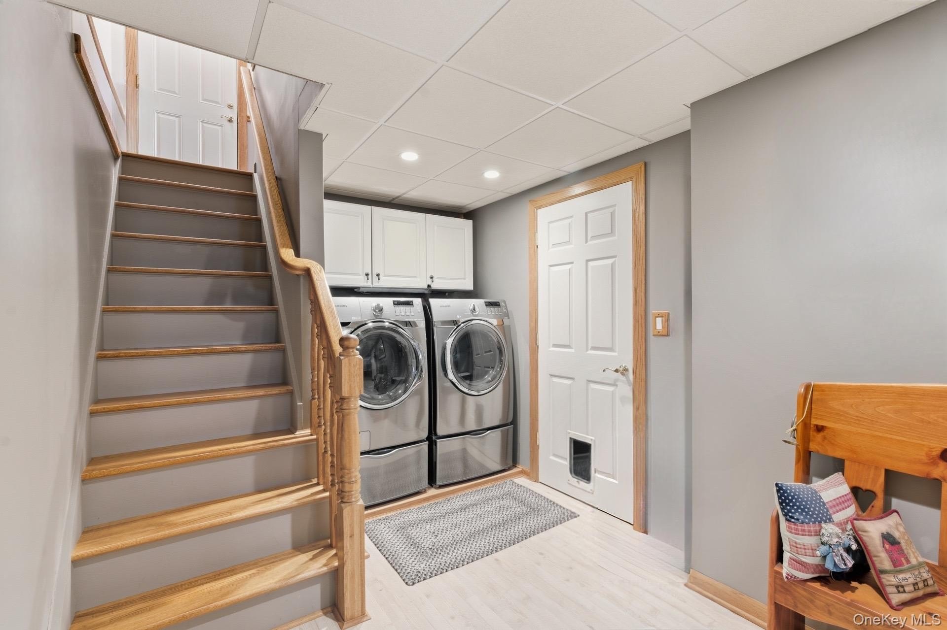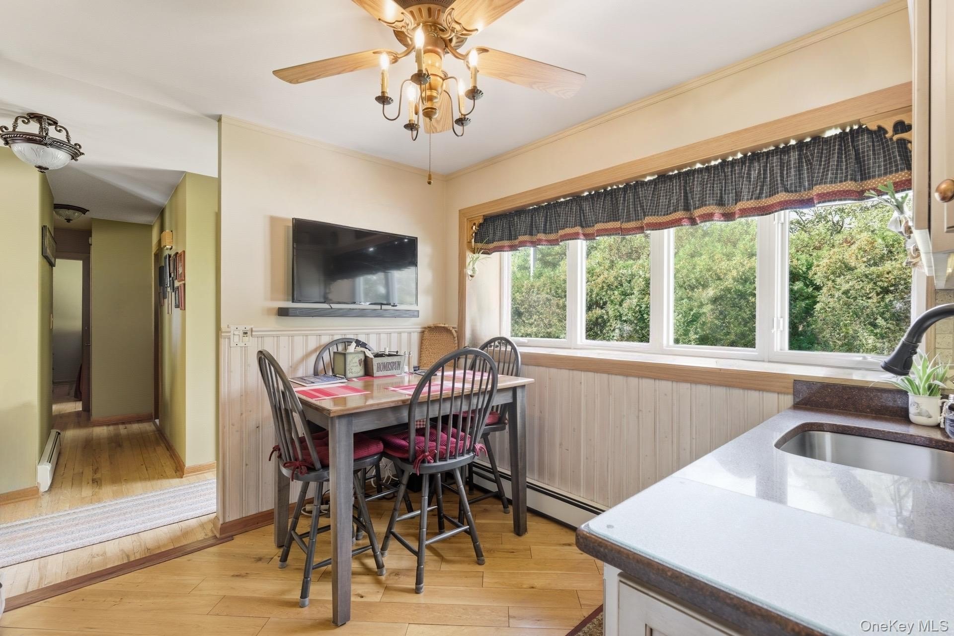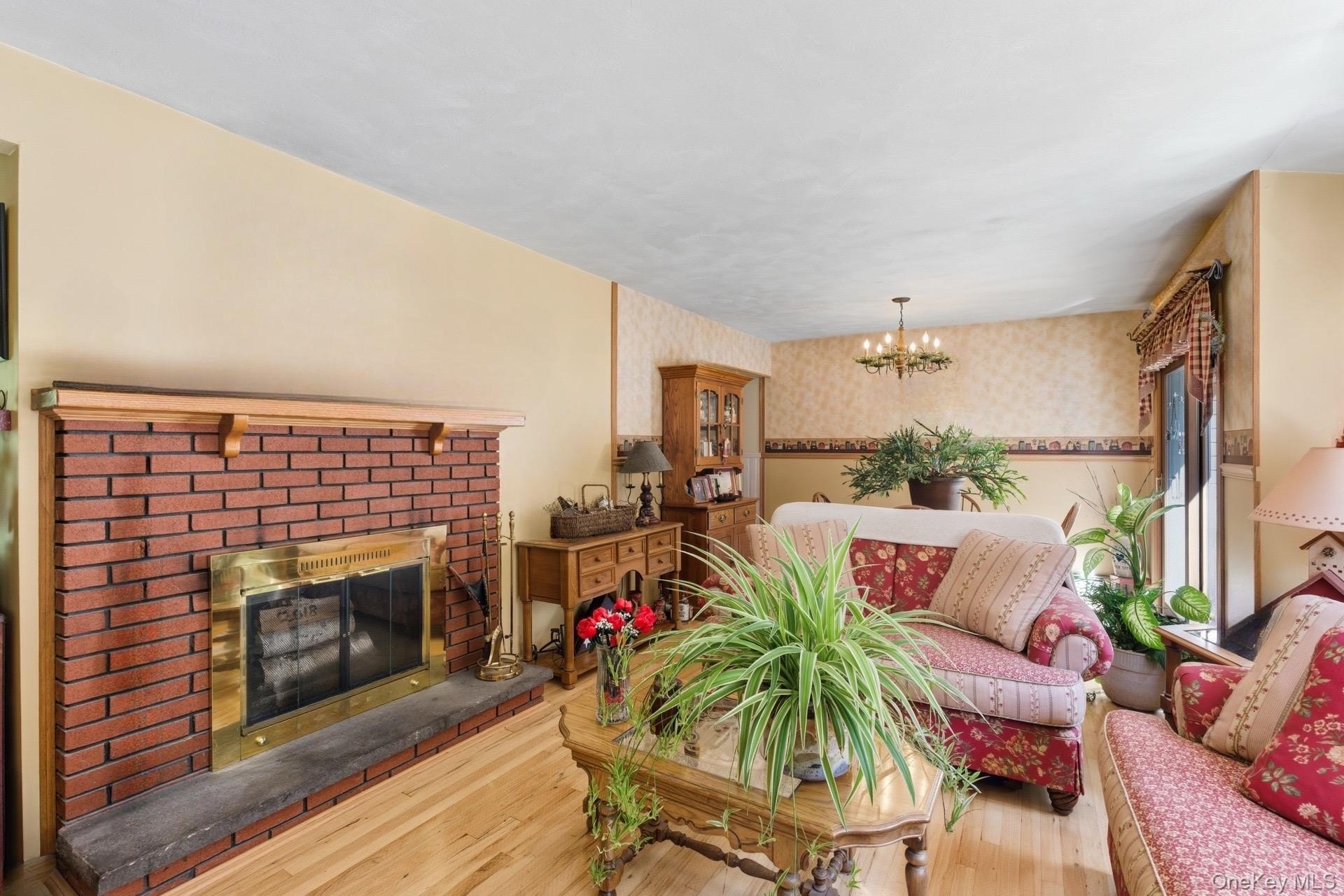 Welcome to this classic ranch-style gem in the heart of Manorville with 1,024 sq. ft. of living space nestled on a private, partially wooded .35-acre lot in the Eastport-South Manor School District. Built circa 1966, this property blends Country Charm with modern updates. The floor plan includes a spacious living room, ideal for entertaining or quiet evenings. A home that offers stunning hardwood and laminate floors, a bright eat-in kitchen with pantry and quartz countertops, three well-sized bedrooms and two full baths. Snuggle up to a wood burning fireplace on those chilly nights on the main level or enjoy the convenience of the finished basement with a den/multipurpose room with gas fireplace that add both character and warmth and a full bath. Imagine the possibilities an egress window could add. Energy star qualified ductless cooling, baseboard natural gas heating, public water, vinyl siding, insulated oversized windows, and protective features such as rain gutters and screens. Outside, enjoy a saltwater, heated, semi inground pool complete with deck and patio areas. Backyard is fully fenced, with sprinkler system and a shed for extra storage. A one-car garage plus driveway parking completes this property. Annual taxes of $11,324!!!!