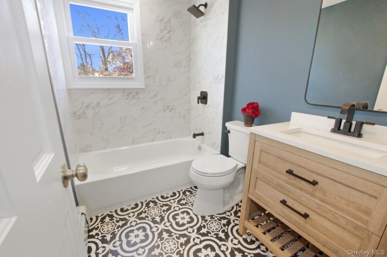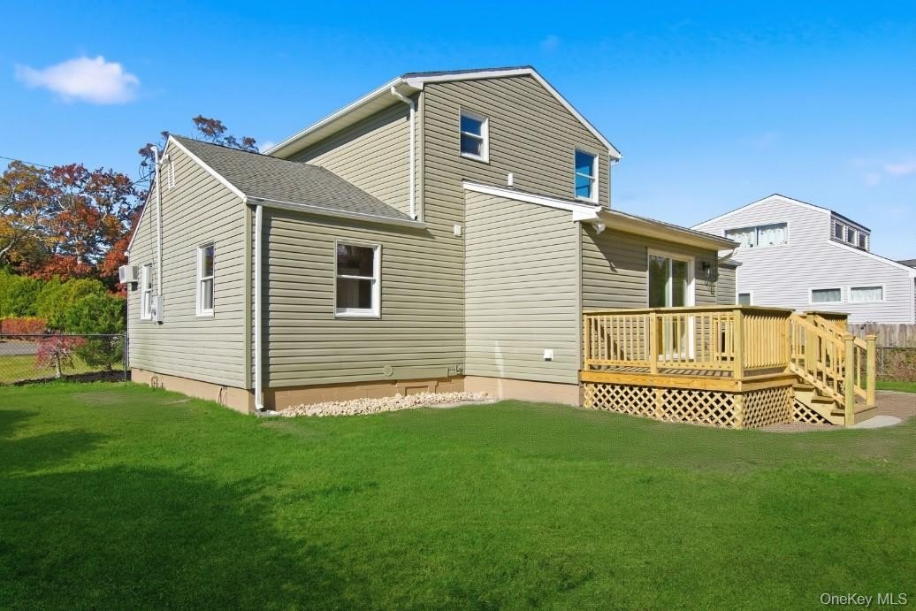 Introducing an exquisitely renovated Colonial home that embodies modern elegance and comfort. This remarkable residence features four spacious bedrooms and two well-appointed bathrooms. The first floor showcases a generously sized eat-in kitchen equipped with quartz countertops and stainless steel appliances, complemented by an oversized family room, a dining room, and a living room adorned with a cozy wood-burning fireplace. Additionally, it includes a secluded laundry area and a beautifully designed full bathroom with a stand-up shower, all contributing to an open, bright, and airy atmosphere. Ascend to the second floor to discover the primary bedroom, an additional bedroom, and an elegantly designed full bathroom featuring a full bathtub. Throughout the home, hardwood floors, recessed lighting, and contemporary fixtures reflect the meticulous renovation, making it truly move-in ready. Outside, enjoy a welcoming front porch and a back deck, all set on a private lot where no construction is permitted behind the property. Ideally located near the water, residents have exclusive access to a private beach in Bellport Beach Estates, requiring only a key for entry. This home is conveniently situated within minutes to Bellport Village, known for its old world charm and community spirit, alongside the vibrant lifestyle of Patchogue Village, famed for its diverse dining, shopping, and entertainment options.