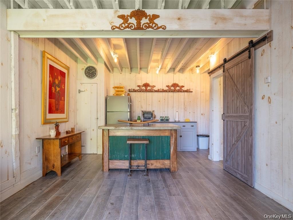 Set on 1.16 acres of beautifully landscaped grounds, this charming and nostalgic property offers exceptional privacy and endless possibilities. The main home features 4 bedrooms, 1.5 bath, an eat-in-kitchen, living room, and sitting area - all with tranquil farm vistas. A contractor's dream garage doubles as an ideal artist studio, home gym, or workshop, while a separate guest quarters with full bath provides comfort and flexibility for visitors. Enjoy a large indoor spa/exercise pool, perfect for year-round relaxation and fitness. With solar panels keeping electric bills around $17/month, central air, public water and oil heat, this home combines efficiency with comfort. The mature landscaping and outstanding farm vistas create a truly serene setting - your private North Fork escape.