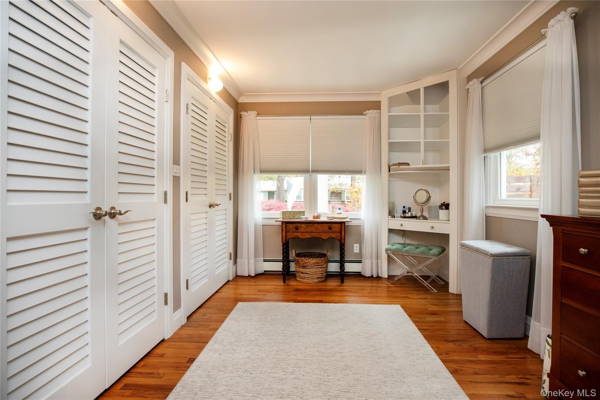 Move right in! This expanded cape has been beautifully updated and offers low Southampton Town taxes. Located in the desirable Bayview Pines neighborhood, you'll be just a half-mile from a sandy bay beach-perfect for summer days on the water. The home features an updated kitchen with quartz countertops and newer appliances (all less than five years old). The spacious family room is a showstopper, designed for effortless entertaining with radiant heat, vaulted ceilings, and floor-to-ceiling windows that showcase peaceful views of a wooded Suffolk County preserve, which borders the property along the side and rear. Step outside to your private backyard oasis, complete with mature landscaping and a tranquil pond-perfect for relaxing or hosting outdoor gatherings. The first floor includes a primary bedroom and renovated full bath with radiant heat flooring, plus a large eat-in kitchen with dining area. The second floor offers two generous bedrooms and half bathroom, each filled with beautiful natural light. Additional features include smart home set up, hardwood floors throughout, radiant heat, ductless air conditioning, a recently installed boiler and hot water heater (3 years old), and 200-amp electric service. Roof, windows, and vinyl siding were all updated approximately 10 years ago, irrigation system and heated wood shop. This is the perfect combination of comfort, privacy, and convenience-just unpack and enjoy.