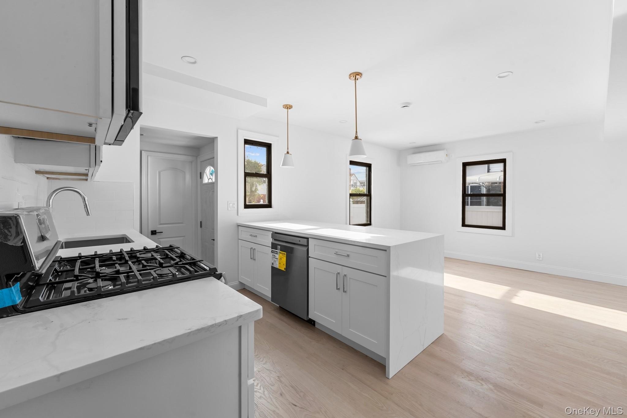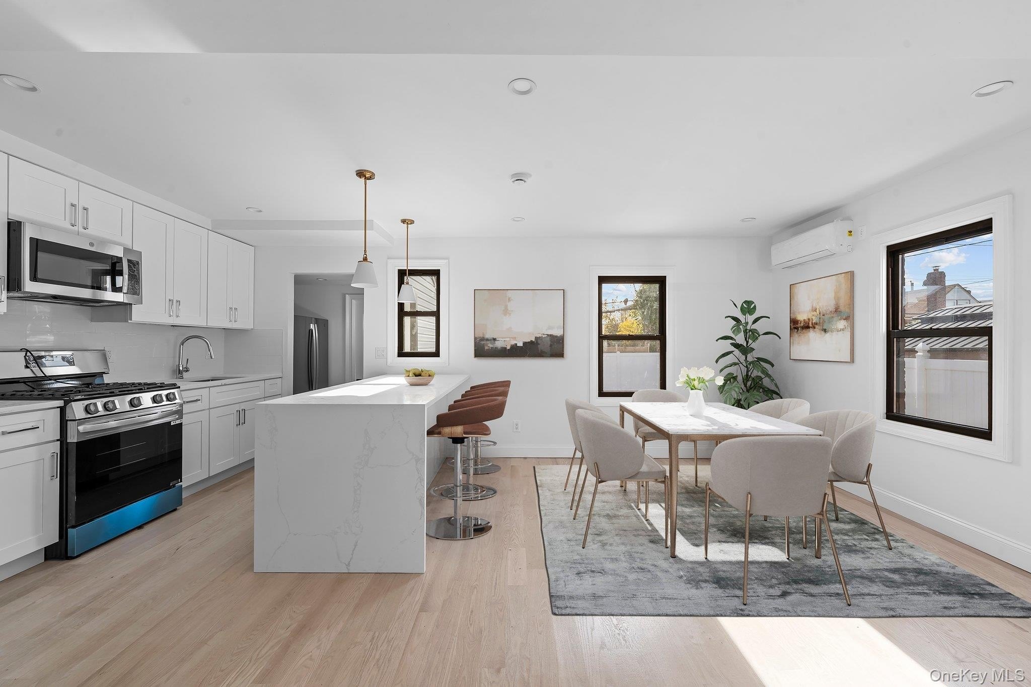 Space, style & modern luxury come together at 171 Fallon Avenue. A meticulously renovated, turn key move in ready single family tucked away on a quiet, tree lined street of Elmont. Sitting on a 50x100 lot featuring a wide private driveway, indoor garage, and tons of yard space to enjoy outdoor gatherings. 1st floor features an expansive, sun drenched, modern open concept living area which provides great space for entertaining. The formal dining area is overlooked by the beautiful kitchen any chef will love. Kitchen features floor to ceiling custom cabinetry, adorned with a full fleet of stainless steel appliances, equipped with island for bar stool seating and leads out into lush rear yard. Powder room for your guest. Up a flight of stairs 4 spacious bedrooms awaits you, each equipped with ample closet space. The elegant primary suite is equipped with a private en suite that boast spa-like finishes. Down the hall a additional fully tiled bathroom is adorned with state of the art wall & floor tiles and shared between the additional bedrooms. The high ceiling full finished basement can be used as the perfect in-law suite, guest quarters, storage space or additional recreational space. Renovations include brand new select wide oak wood flooring, recessed lighting, updated electrical, heating, plumbing and central HVAC systems throughout. This masterfully re-imagined single family is conveniently located with close proximity to major transportation which makes commuting a breeze. Just off Elmont Road, Dutch Broadway, Southern State Parkway. Short blocks to schools, shopping centers, restaurants, cafes, parks and many other vibrant neighborhood amenities.