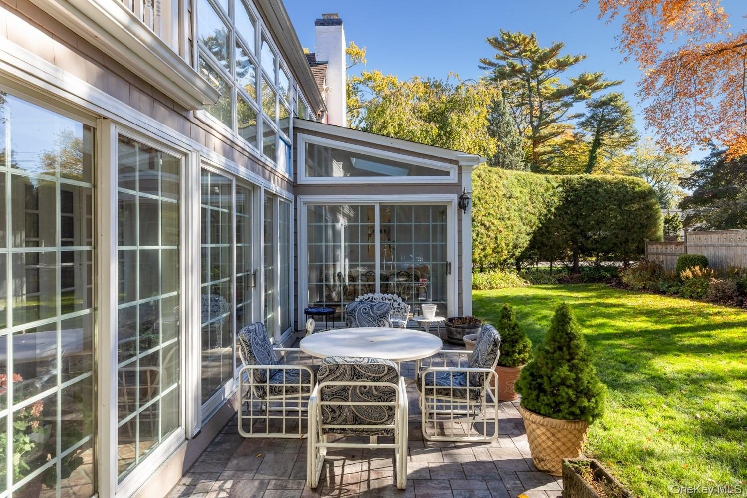RARE OPPORTUNITY to own a 3,200 sq. ft. corner-lot Colonial in the highly coveted Old Harbour Green community of Massapequa-known for its picturesque streets, timeless architecture, and coastal charm. Available for the first time in over 30 years, this home showcases classic design, generous scale, and standout features, including two wood-burning fireplaces, an attached two-car garage, and a stunning sun-soaked, two-story glass atrium. Step inside to discover beautiful hardwood floors, crown molding, built-in bookcases, and an inviting layout that blends traditional character with everyday comfort. The formal living room and cozy den each feature their own fireplace, while a versatile rear entertainment room offers excellent potential for a guest suite or in-law setup. *Important note that all carpeted rooms have hardwood flooring underneath (besides the back entertainment room). An inviting eat-in kitchen with newly upgraded appliances expands seamlessly into a spacious dining room, ideal for hosting parties large or small. A private home office with custom built-in desk, cabinetry, and a sun-drenched bay window provides a refined and functional workspace. The first-floor full bathroom has been newly remodeled with stylish finishes. A true highlight is the impressive two-story glass atrium with brick flooring, vaulted ceilings, and a spiral staircase-a year-round, one-of-a-kind retreat beaming with natural light to unwind, entertain, or simply soak in the outdoors. Upstairs, the primary suite impresses with its private balcony, whirlpool soaking tub, and steam shower. Three additional bedrooms provide ideal comfort and flexibility for family or guests. Additional thoughtful touches include a formal foyer, mudroom entry, newly upgraded HVAC system, and attached two-car garage for everyday convenience. Outside, enjoy a meticulously maintained corner lot with mature landscaping, attractive hardscaping, irrigation system, back patio ideal for entertaining, and a custom-finished driveway. Located just a short walk from Birch Lane Elementary and the Bar Harbour Library, and a short drive to Green Harbour Beach Club, situated directly on the Great South Bay (membership optional), this property offers the perfect blend of comfort, character, and coastal Long Island living. Come discover why Old Harbour Green remains one of Massapequa's most sought-after neighborhoods and make 67 Bay Drive your forever home!