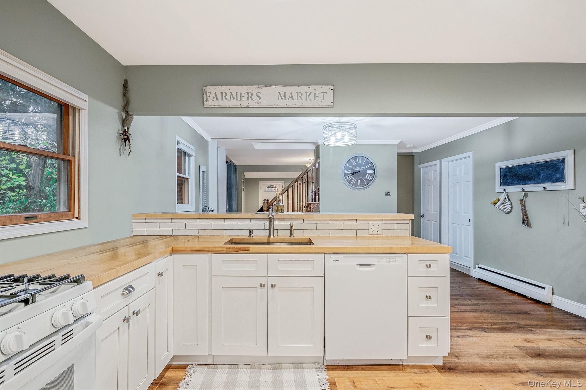 Welcome home to this beautiful 3 bed 1.5 bath expanded cape home. First floor has charming open floor plan featuring sunny kitchen with breakfast nook, dining area & living room. First floor bedroom can also be used as home office, playroom etc... First floor full bathroom has gorgeous spa like walk in shower. Second floor has generous size primary bedroom & additional bedroom. Second floor also has half bath that has plenty of room to convert to full bath. Home has plenty of storage options with unfinished basement where washer & dryer are located as well as very large 2 car garage & shed. Major updates completed in last 10 years are Navien gas heating/hot water system, roof, siding, kitchen, bathrooms, landscaping & cesspool. Hurry this fabulous home with LOW taxes in Smithtown schools will not last!