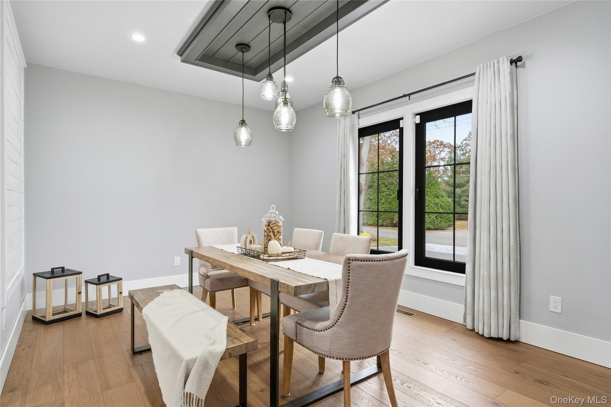 This newer constructed home brings a modern industrial farmhouse presence to one of East Islip's standout blocks. A two-story foyer with custom accent walls and a grand staircase with sleek black railings sets the tone immediately, opening into an airy layout centered around a chef's kitchen with a walk-in pantry, butcher-block details, and Thermador appliances. It's a true entertaining space: purposeful, warm, and adaptable for any gathering. The main level features a modern electric fireplace with a wooden mantle, detailed wall finishes, detailed statement lighting that tie in the design of this home, and a mudroom designed for everyday function. Oversized imported European tilt-and-turn windows. bring in natural light throughout the day, creating an effortless indoor-outdoor feel across the living spaces. Upstairs offers three vaulted-ceiling bedrooms, a second-floor office overlooking the backyard, and a spacious primary suite with a walk-in closet and a spa-style bath. All second-floor bathrooms include radiant heated floors and towel warmers for added comfort. The 1,800 sq. ft. unfinished basement with 8' ceilings provides room for future expansion. Outdoors, the property showcases an 18' x 36' heated saltwater pool with a sun ledge, three waterfall features, 2,000 sq. ft. of pavers, and a large wooden gazebo with a metal roof and outdoor kitchen setup- continuing the adaptable space for those who love to entertain both inside and out! This is a one of kind East Islip Gem!