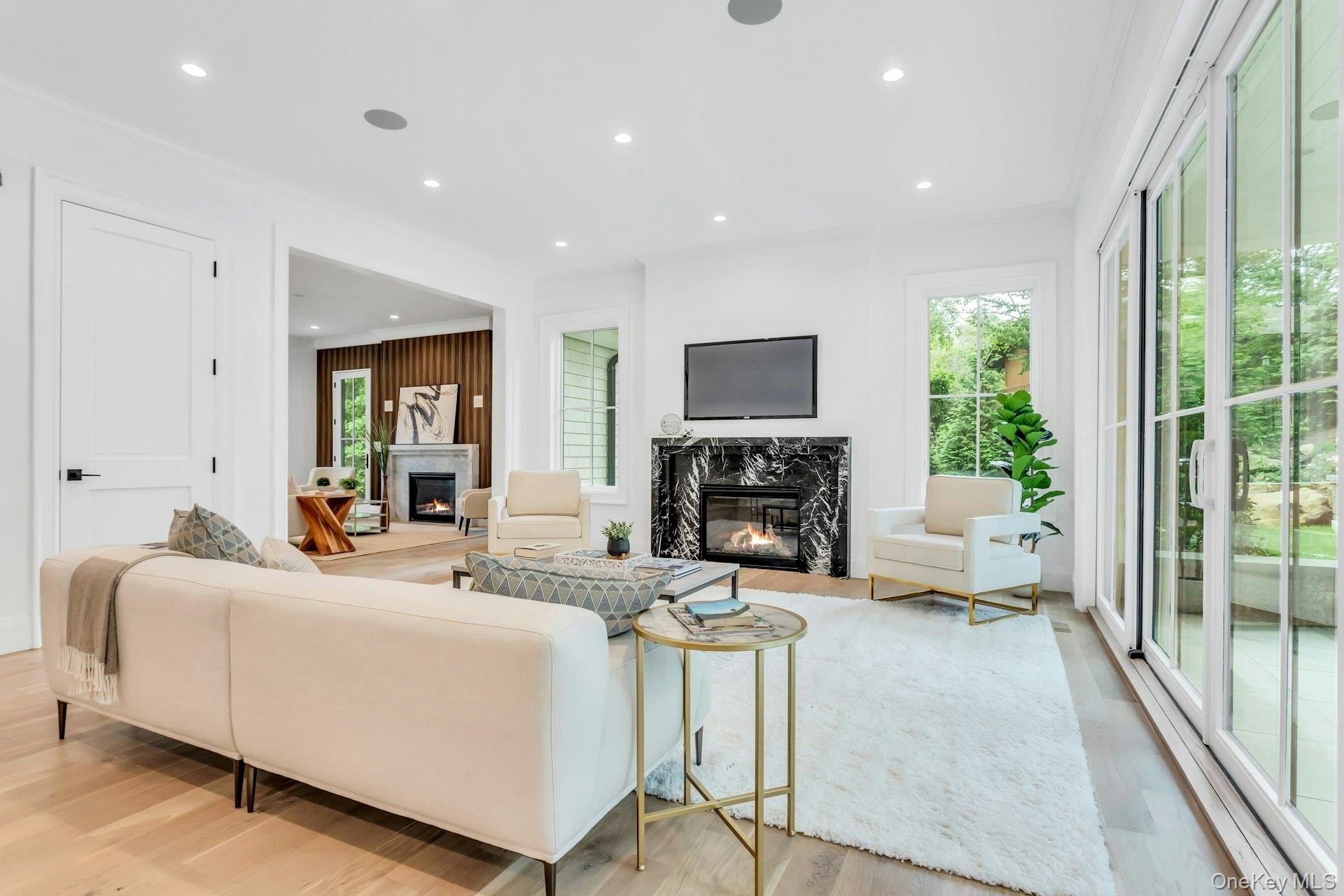 Welcome to 80 The Oaks, Roslyn Estates, a majestic masterpiece with a resort style backyard & pool situated on just shy of half an acre. This extraordinary new construction, built by a renowned builder, is destined to be a true masterpiece, blending modern luxury with timeless elegance. Boasting 4 spacious en-suite bedrooms plus a 5th bedroom on the lower level, and 6.5 lavishly appointed bathrooms. Every inch of this home has been thoughtfully designed with top quality materials and impeccable attention to detail. From the grand entry foyer to the soaring ceilings and sun-drenched interiors, this residence exudes sophistication and scale at every turn. The stunning primary suite offers a serene retreat, featuring a private balcony overlooking a resort-style backyard with a spectacular in-ground pool, outdoor kitchen and lush landscaping. The chef's kitchen features top-of-the-line appliances, including Sub-Zero refrigeration, premium cabinetry, and designer fixtures that elevate everyday living. The expansive lower level features 10 ft ceilings with a state-of-the-art home gym, offering the ultimate convenience and luxury wellness at home, as well as cabana with bathroom serving the pool area. Additional features include laundry room in basement and 2nd floor, smart home capability, radiant heat, steam shower, indoor & outdoor security cameras and a full home generator. Don't miss the opportunity to own one of the Roslyn Estates' most anticipated homes - where superior craftsmanship and visionary design come together.