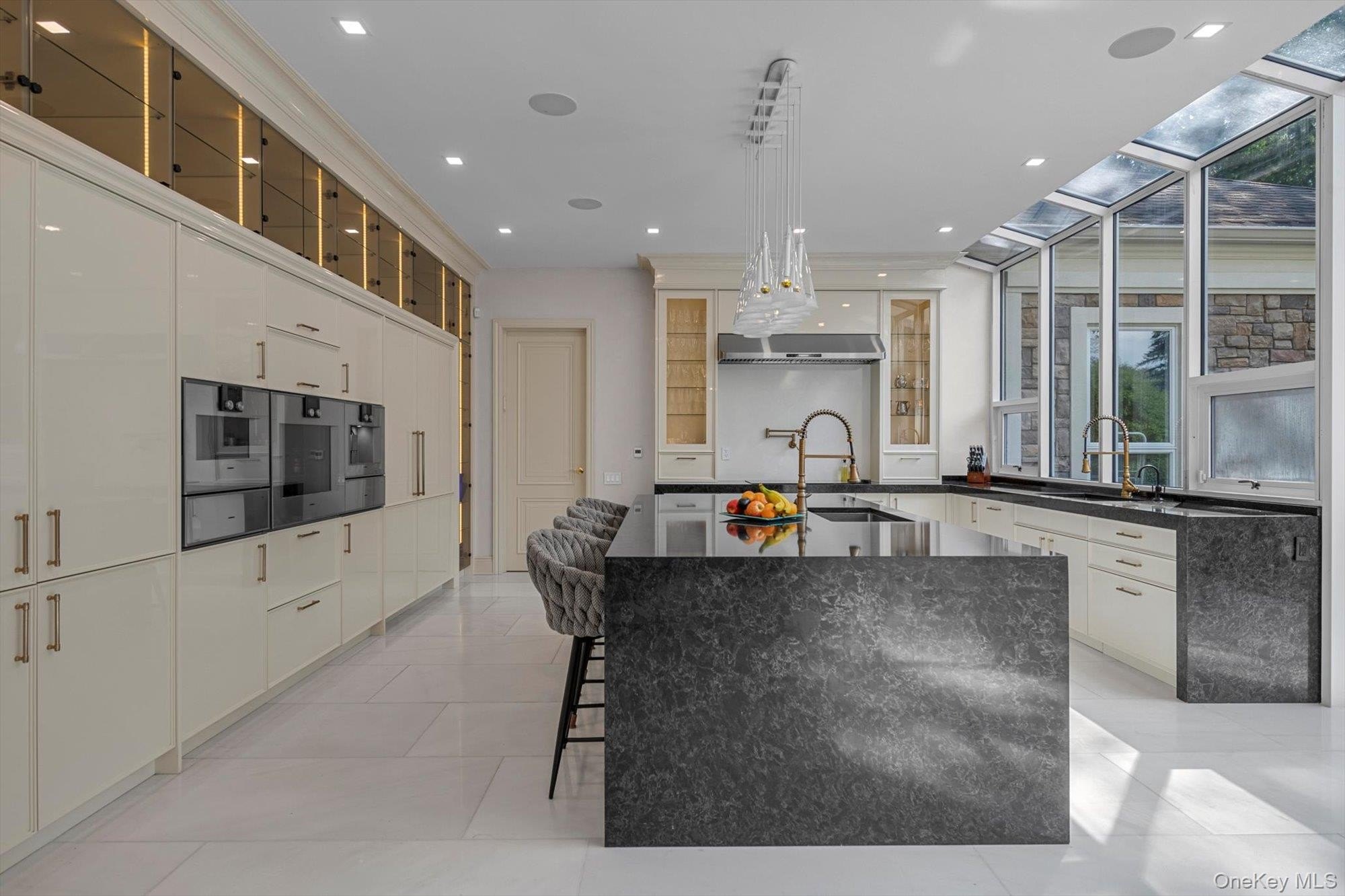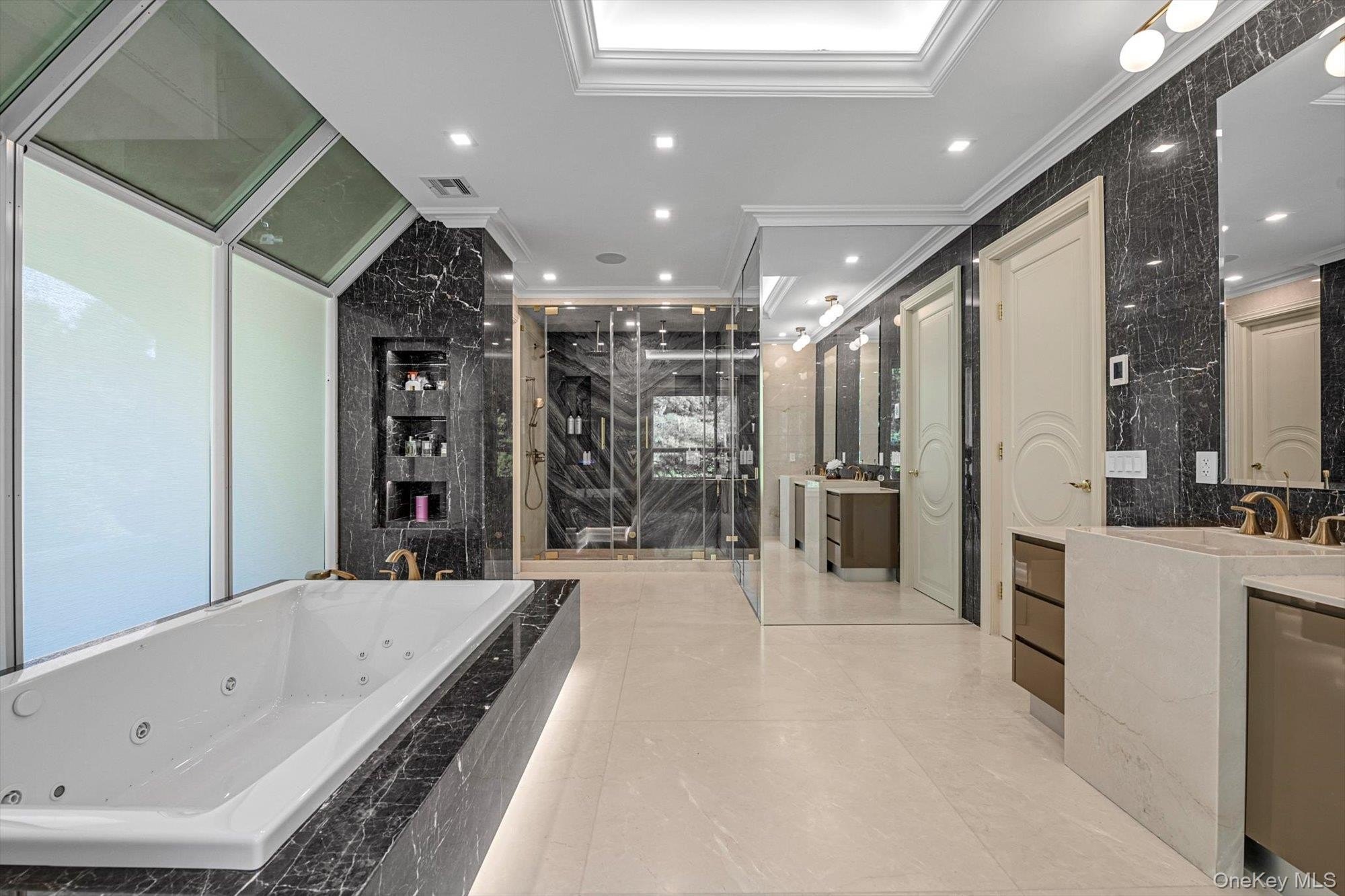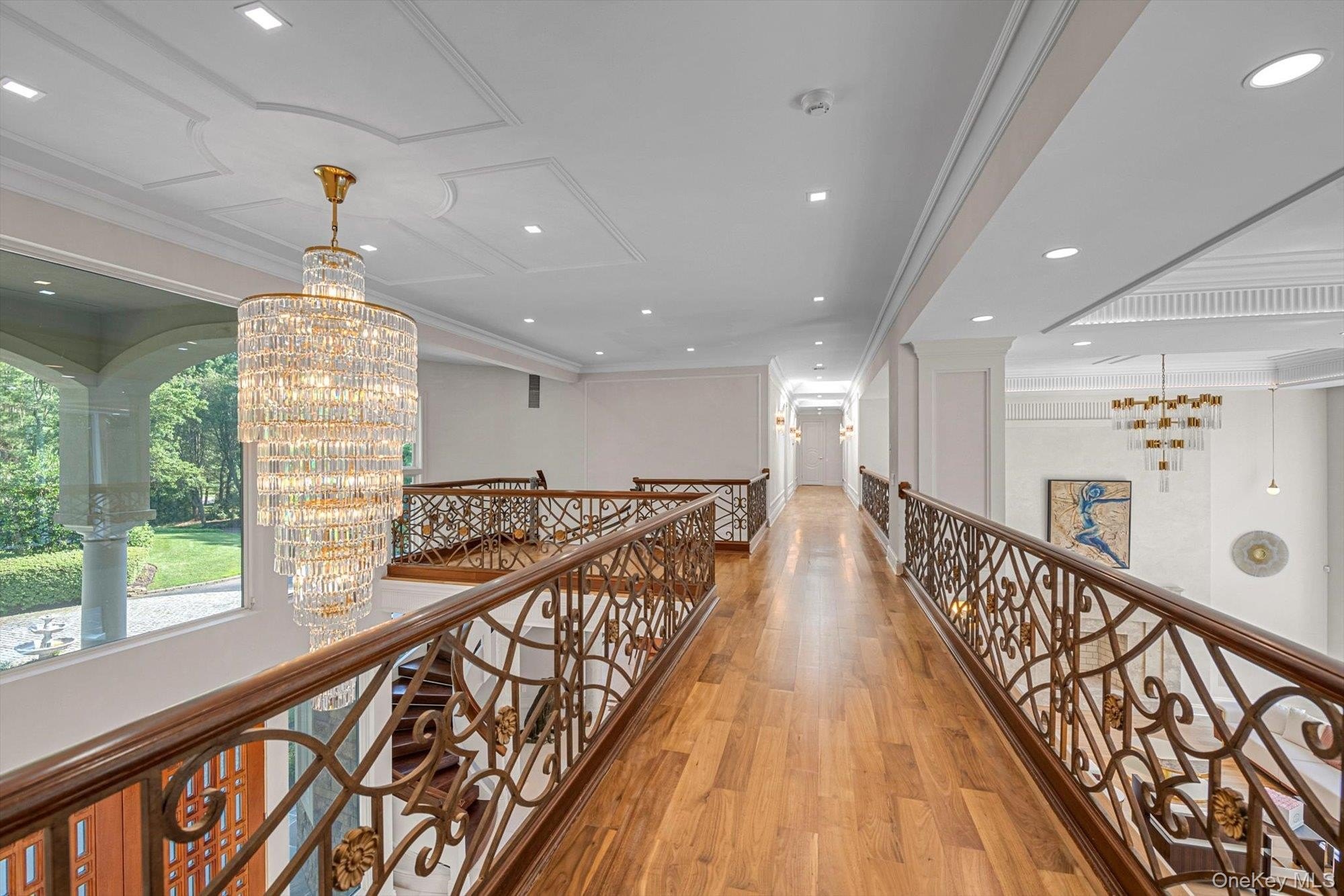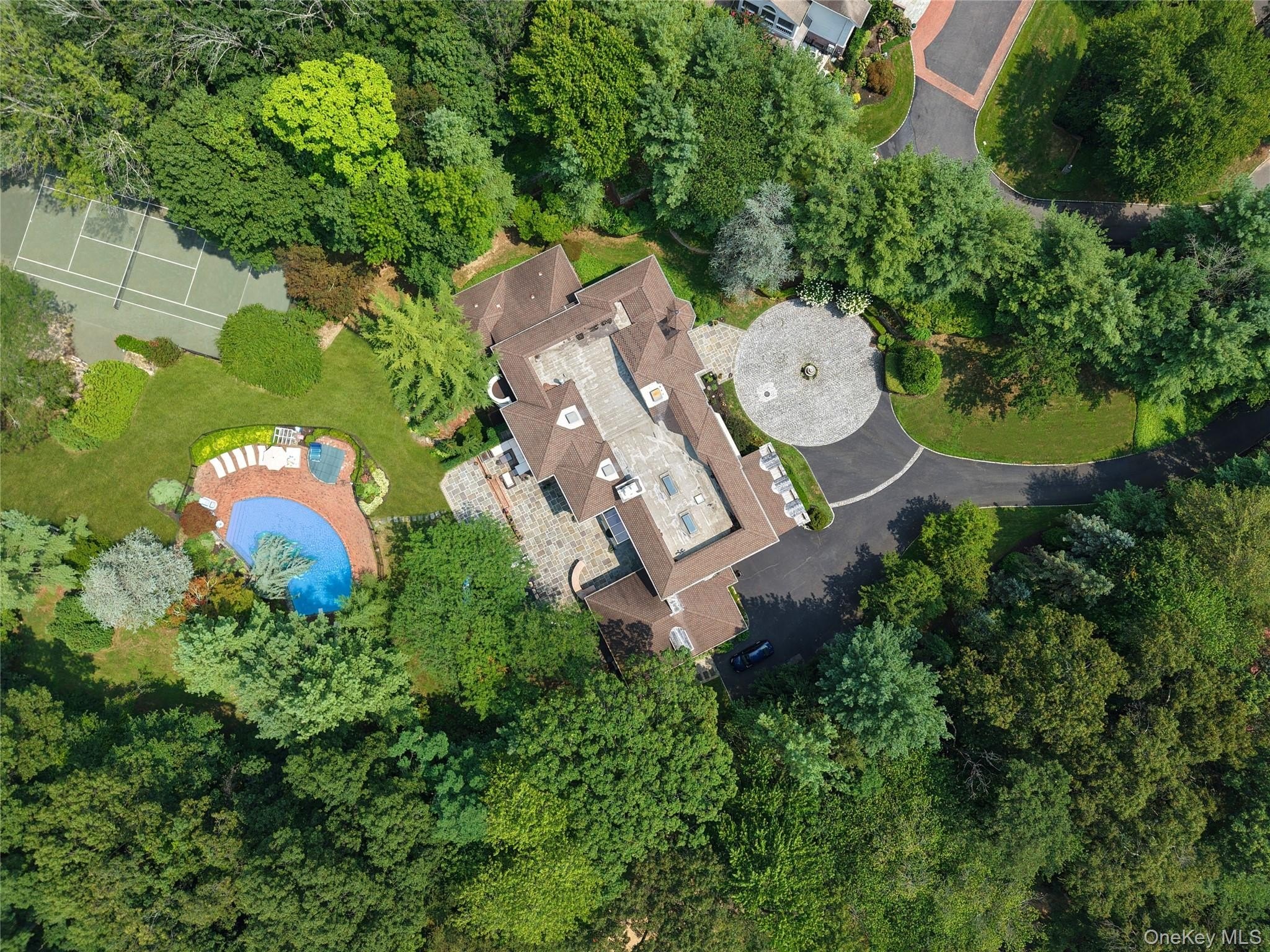 Nestled at the end of a serene cul-de-sac, this breathtaking 9,400 sq. ft. estate offers an unparalleled blend of modern luxury and European inspired elegance. This exceptional home is designed for grand-scale entertaining and resort-style living. Step inside to be greeted by soaring ceilings, sun drenched rooms and a dramatic open-concept layout. The residence features seven spacious bedrooms, seven full and one half bathrooms, and exquisite architectural details throughout. The chef's kitchen is a masterpiece, boasting top-of-the-line appliances, custom cabinetry, and an oversized island. Entertain effortlessly in the formal dining room, grand living room, and billiard room, or work in style from the sophisticated home office. For ultimate relaxation and recreation, the lower level is a haven of indulgence, complete with a basketball court, home theater, full bar, lounge, and both wet & dry saunas. Outdoors, experience a true retreat with a gunite heated pool, a private tennis court, and multiple balconies offering breathtaking views of the lush grounds. The three-car garage adds convenience, while the estate's end-of-cul-de-sac location ensures the utmost privacy. A rare opportunity to own a one-of-a-kind luxury estate-schedule your private tour today!