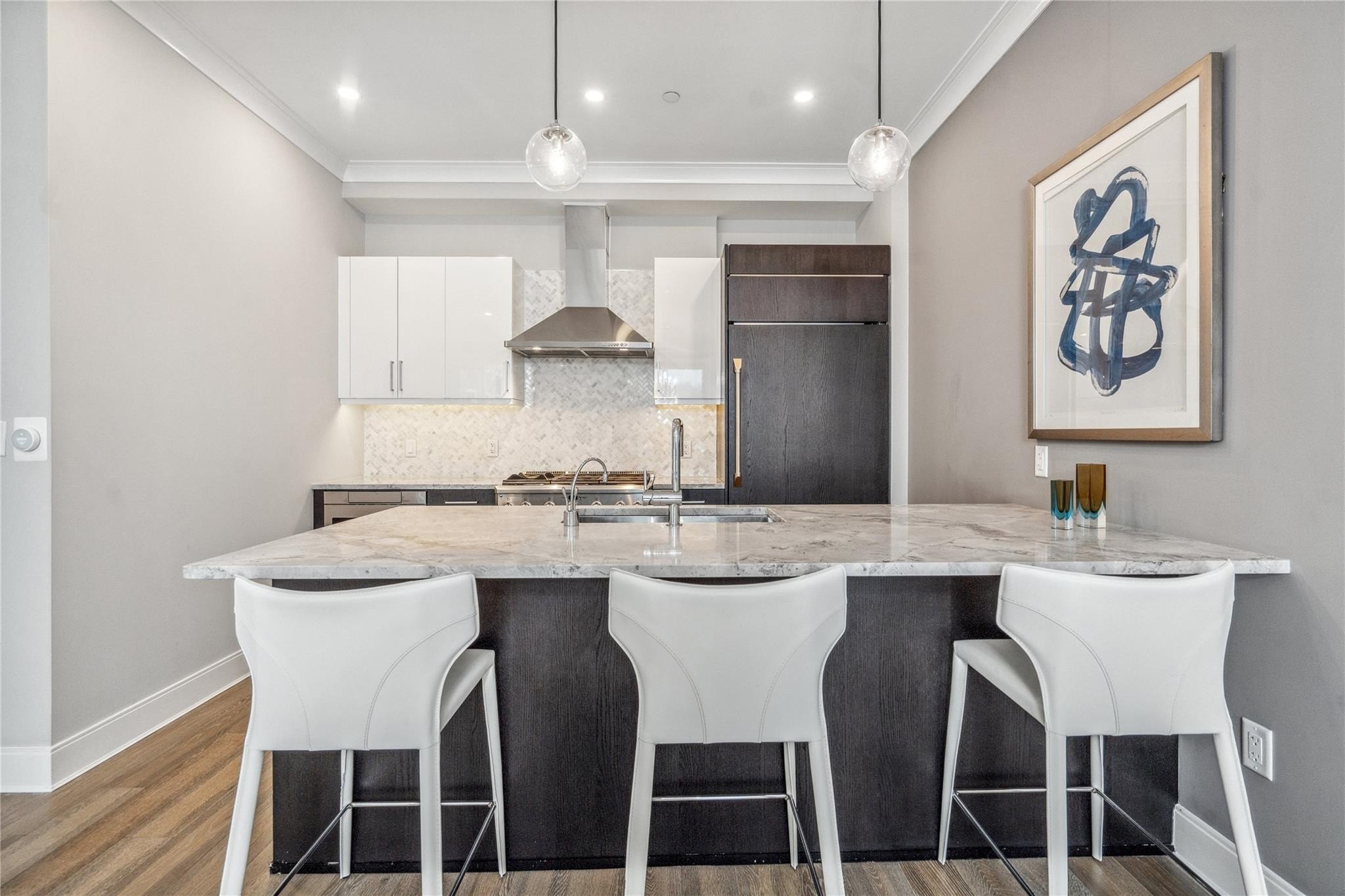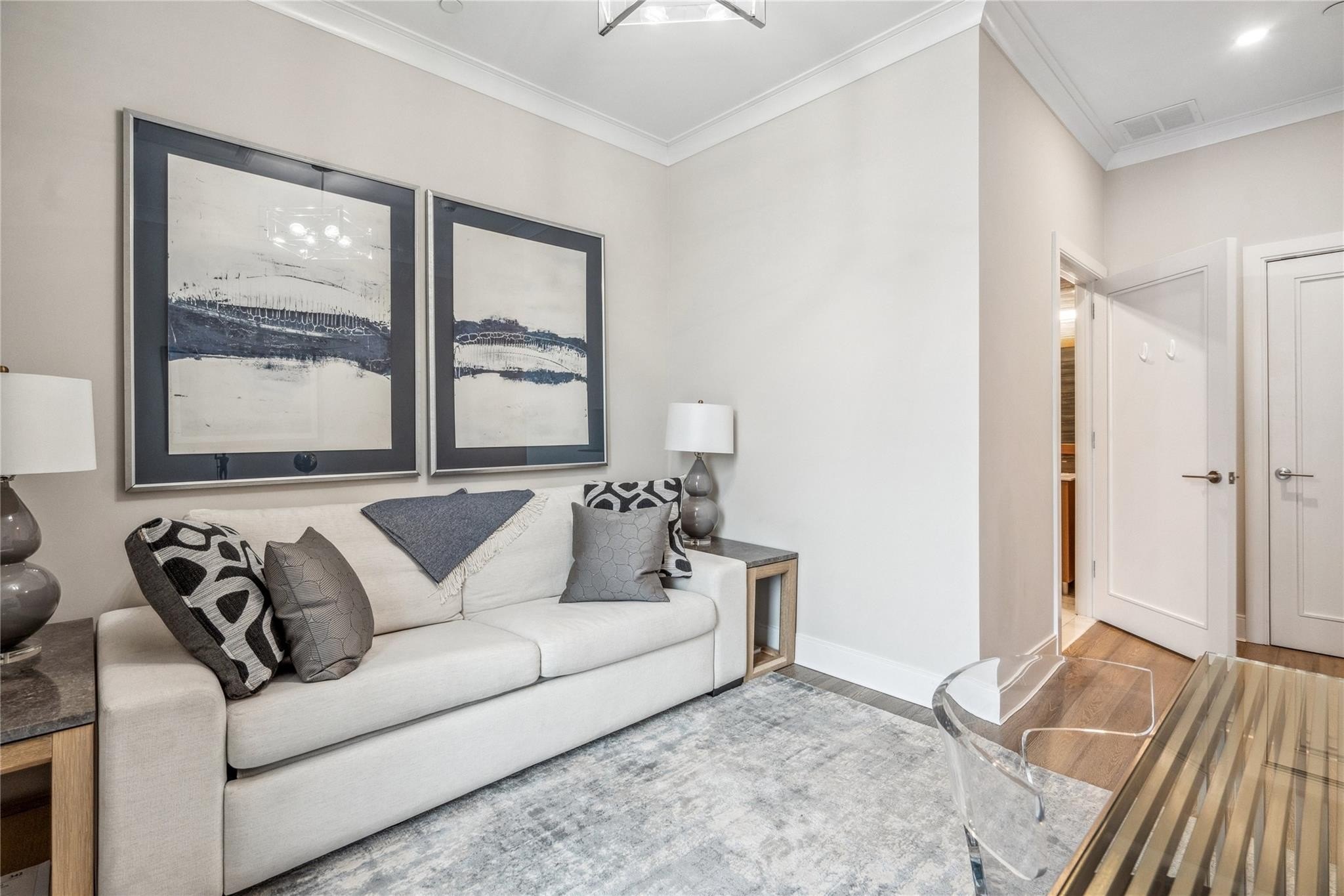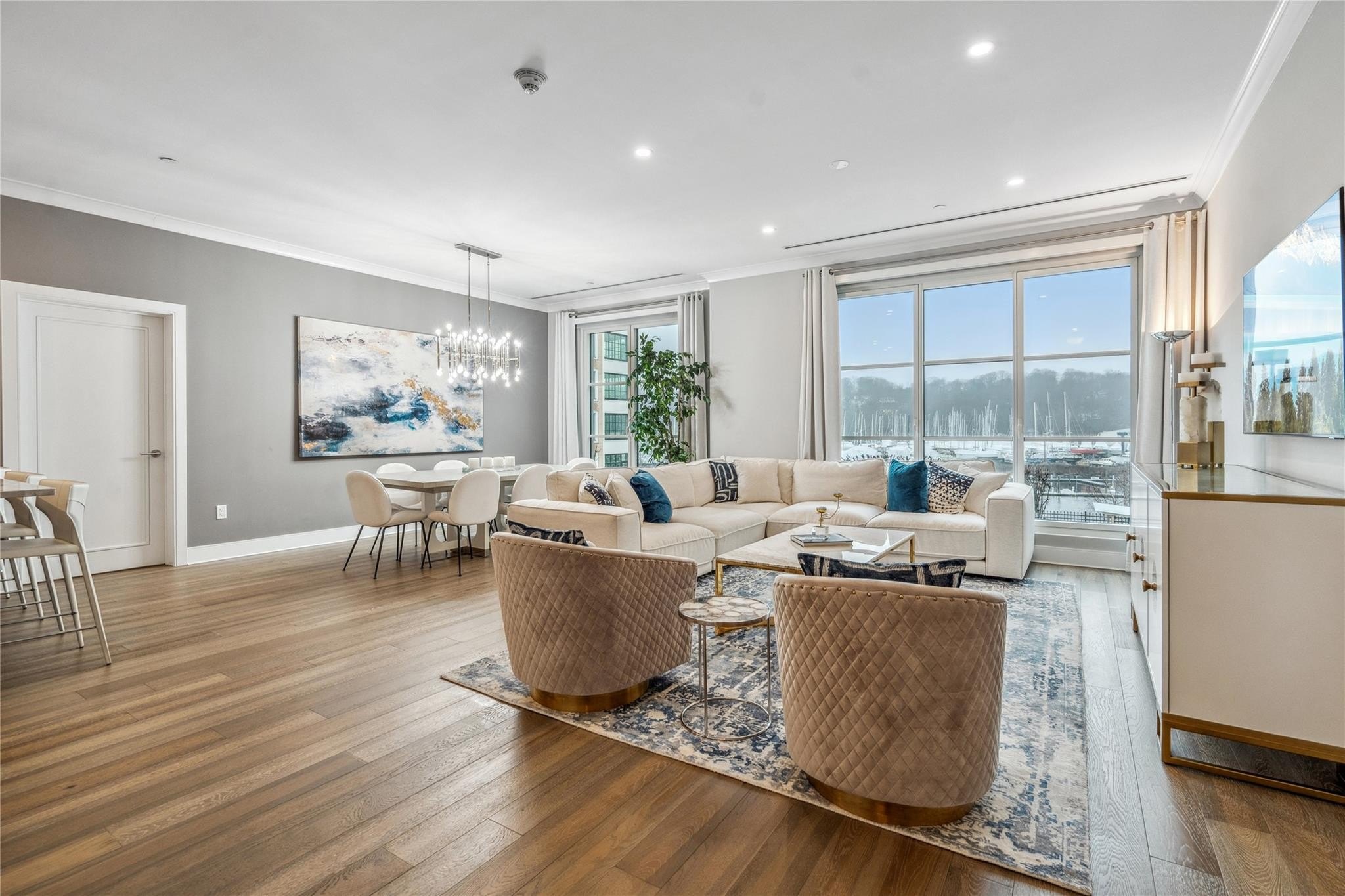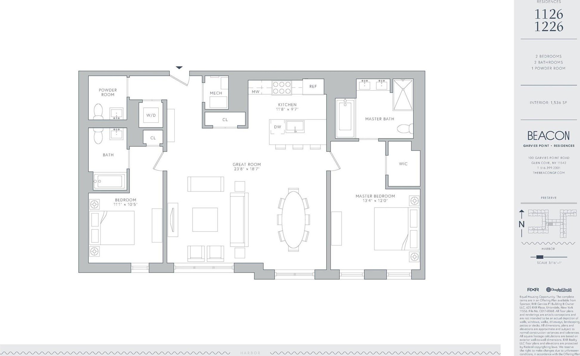 GLEN COVE -This bright two bedroom, two bathroom home features 10' ceilings, and floor to ceiling windows. This layout features an open kitchen with views of the pool and marina. The gourmet kitchen complete with custom paneled GE appliances has white Brazilian quartzite countertops and a kitchen island with a Kohler undermount sink, Insinkerator garbage disposal and instant filtered hot and cold water faucet. A GE Monogram 6 burner gas range is equipped with dual infrared cooking and is fully vented. The white Siena flat paneled cabinets and a Sharp easy touch drawer style microwave complete the space. The spacious primary bedroom features a large closet and an en-suite 4-fixture primary bathroom with white marble floors, countertops and full height porcelain tiled walls, a glass enclosed shower and a double vanity with all Kohler fixtures. The home includes a front loading washer and dryer.The Beacon at Garvies Point is perfectly situated in North Shore's most dynamic new community, set in a 56-acre picturesque waterfront and adjacent to a 62-acre serene nature preserve, within 1 hour of Manhattan. Exclusive residential services & amenities feature a 24-hour concierge, a landscaped courtyard and viewing garden, outdoor kitchens, outdoor pool, state-of-the-art fitness center, yoga studio, library, lounge, card room, game room, dining/party room with prep kitchen and a 32 person screening room.