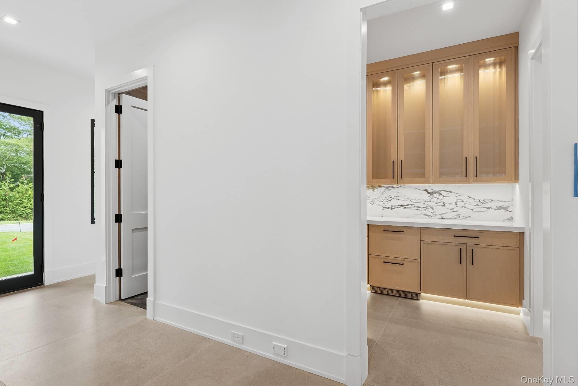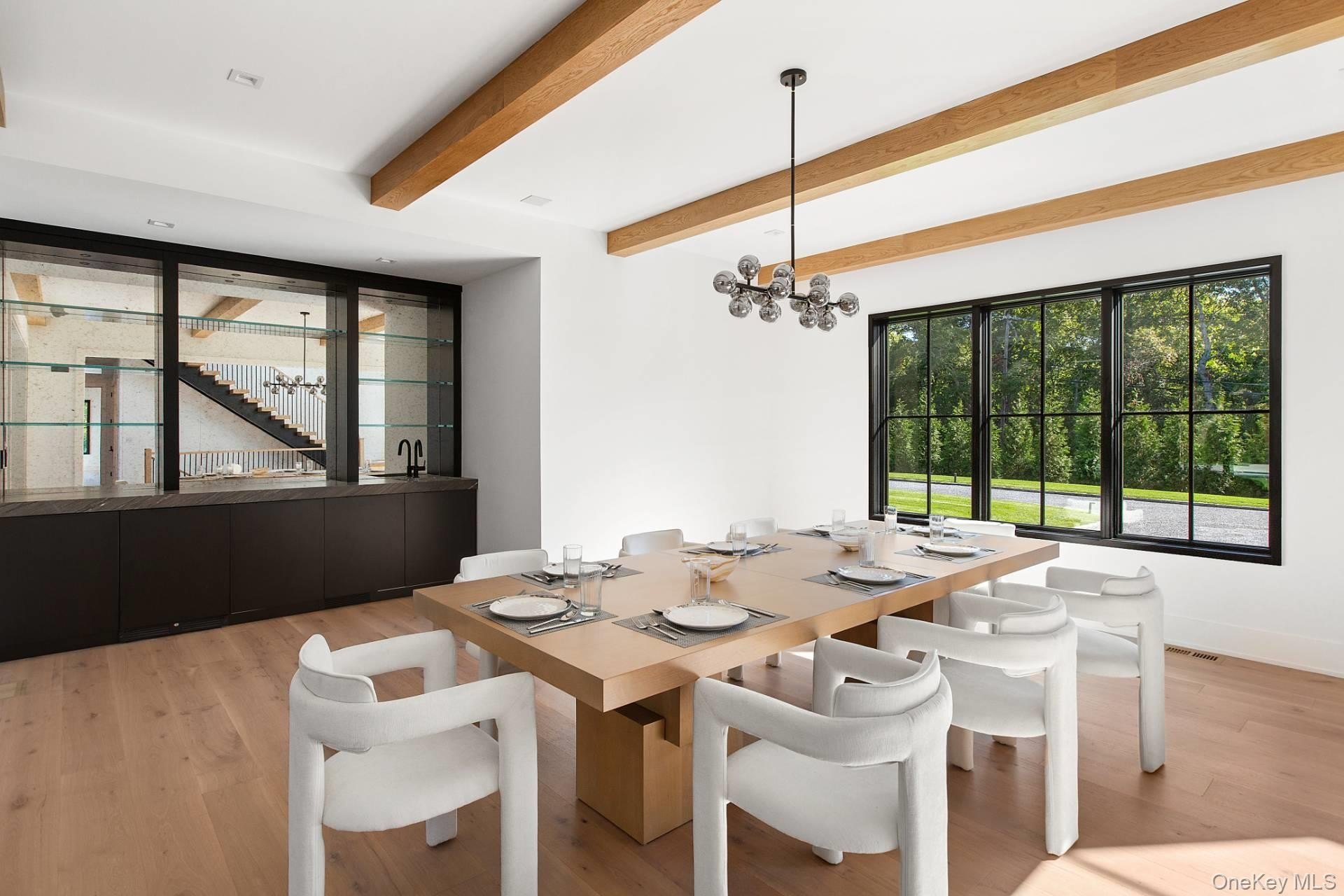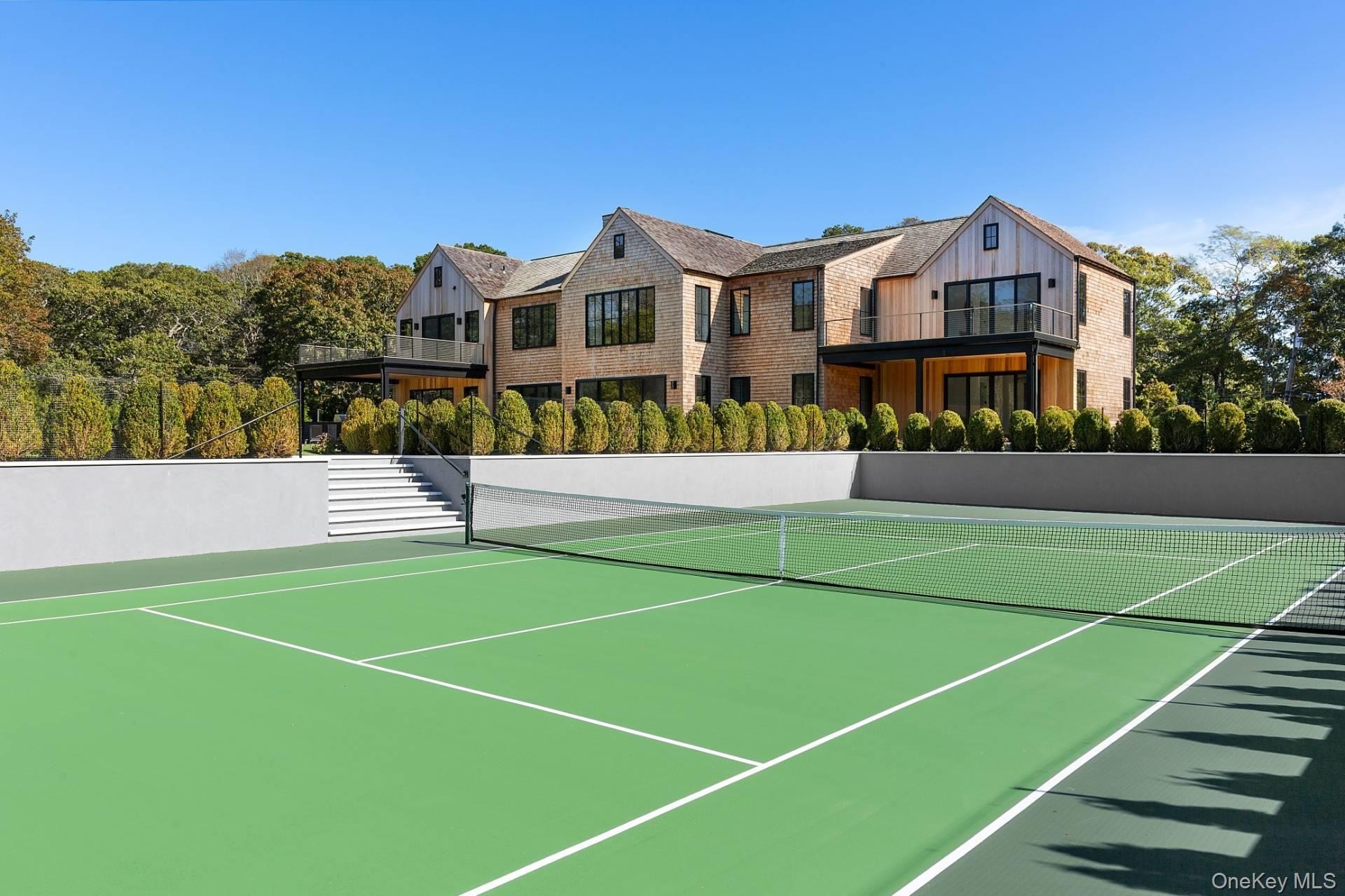 Welcome to 150 Edge of Woods, an extraordinary new build by BJC Custom Builders that's just being completed. This exceptional estate spans 10,000 square feet of impeccably designed living space, set on two lush, rolling acres that offer the ultimate in privacy, tranquility, and elegance. From the moment you arrive, you're greeted by a soaring double-height entryway that sets the tone for the home's grand yet inviting design. Thoughtfully curated for both elevated living and effortless entertaining, the home features eight spacious bedrooms and eleven luxe bathrooms, including dual primary suites-one conveniently located on the main level and another upstairs-perfect for hosting guests or accommodating multigenerational living. Western exposure floods the interiors with golden natural light and frames breathtaking sunset views. The heart of the home is a custom chef's kitchen outfitted with a full Thermador appliance suite, oversized island, and sleek custom cabinetry-ideal for preparing intimate family meals or catering lavish gatherings. Adjacent, a formal dining room with built-in bar offers a refined setting for dinner parties and celebrations. Additional highlights include a three-car heated garage, providing year-round comfort and convenience, as well as ample storage. Designed to blur the lines between indoor and outdoor living, the estate boasts an oversized pool and spa, poolside cabana, and a private tennis court, all surrounded by beautifully landscaped, park-like grounds. The finished lower level is a destination in itself, offering a home theater, gym, wellness center with sauna and steam room, recreation area, custom showcase bar, and a cozy outdoor living room, ideal for relaxing or entertaining under the stars. With its prime location, exceptional craftsmanship, and resort-style amenities, 150 Edge of Woods is not just a home-it's a private Hamptons sanctuary.