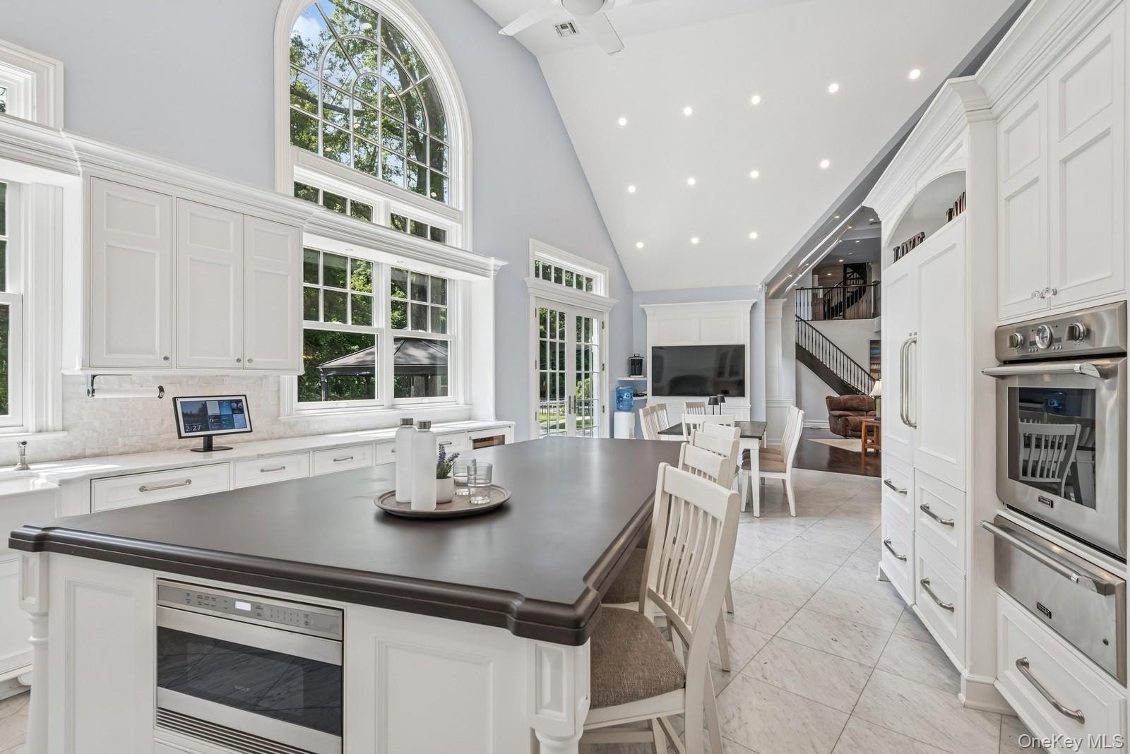 A Rare and one-of-a kind living experience awaits you in this Hampton Style sun-drenched beauty. Gracefully poised and beautifully designed, this unique farm ranch exudes sophistication, class and gracious North Shore luxury living. This property located in the acclaimed "The Gates" of Woodbury, boasts the utmost attention to detail, finest European imported materials, seamless quality and extraordinary custom creations. Fine finishes, to include wainscoting, custom mill work and built-ins, are evidenced throughout. Offering an impressive two story entry, with beautifully appointed formal rooms with an incredible open concept eat-in-kitchen and adjoining great room that are the heart of the home and offer a wonderful layout for exceptional entertaining and personal comfort. The gourmet kitchen is a chefs delight featuring top of the line appliances, subzero, Bosch, Miele and Thermador. The expansive custom cabinetry offers endless possibilities for all your storage needs. The kitchen is further outfitted with 2 dishwashers, a wine cooler, garbage disposal, an insta-hot faucet, warming drawer, two subzero refrigerated drawers, 6 burner stove with griddle, built-in microwave, 3 ovens, Carrara marble counter top and floor, large stone center island, radiant heat, impressive ceiling and under counter mounted LED lighting. Tons of natural light pour in thru the impressive custom floor-to-ceiling windows and skylights. Enjoy formal dining in the banquet sized dining room with coffered ceiling. Watch endless movies and sports events in your very own first floor soundproof movie theater room which includes a wet bar, subzero fridge, microwave and cabinetry. Bask in the awe-inspiring luxury of 6 bedrooms and 6 full bathrooms (all en suite) and 2 half baths. Retreat to the sumptuous primary suite located on the main floor which features a fireplace, dual closets, a sitting area, and a luxurious marble bathroom with dual sinks, a Toto toilet, in its own water closet, soaking tub and eucalyptus infused steam shower. French doors from the primary suite lead to a blue stone porch overlooking a resort-like backyard including a gunite pool, with a fully functional pool house with kitchenette, bathroom and recreation room. The second floor features 4 en suite bedrooms. Each king size and boasting marble accented bathrooms with Toto toilets. One of the bedrooms is part of a nanny/in-law/guest suite, which includes a sitting area, wet bar and full shower bathroom. Be prepared to be amazed by the suspended cat walk that connects the east and west wings of the second floor. Follow the oak spiral staircase to a bonus room that has a multitude of possibilities to meet your families needs. Need more space? The finished basement offers the perfect extension of additional entertainment space, numerous closets, and houses the utilities. The laundry room is conveniently located on the main floor and contains 2 washers, 2 dryers, a mud sink and plenty of cabinets and counter space. The one acre property is expertly maintained and includes well lit low lying and towering mature specimen plantings. The hardscape was well thought out and includes wide blue stone walkways, multiple patios, stone pillars and an expansive blacktop drive way with cobblestone accents that accommodates 12 cars. Enjoy the convenience of an oversized 3 car garage with plenty of room for storage, custom interlocking flooring and an electric car charger. This home is nothing short of perfection and awaits its discerning buyer. Don't miss your chance to experience the ultimate in luxury living on Long Island's Gold Coast! Located just 15 minutes from the North Shore beaches of Long Island, 45 min to NYC, near the finest shopping, restaurants, parks, golf courses and country clubs. Check out our Virtual Tour!