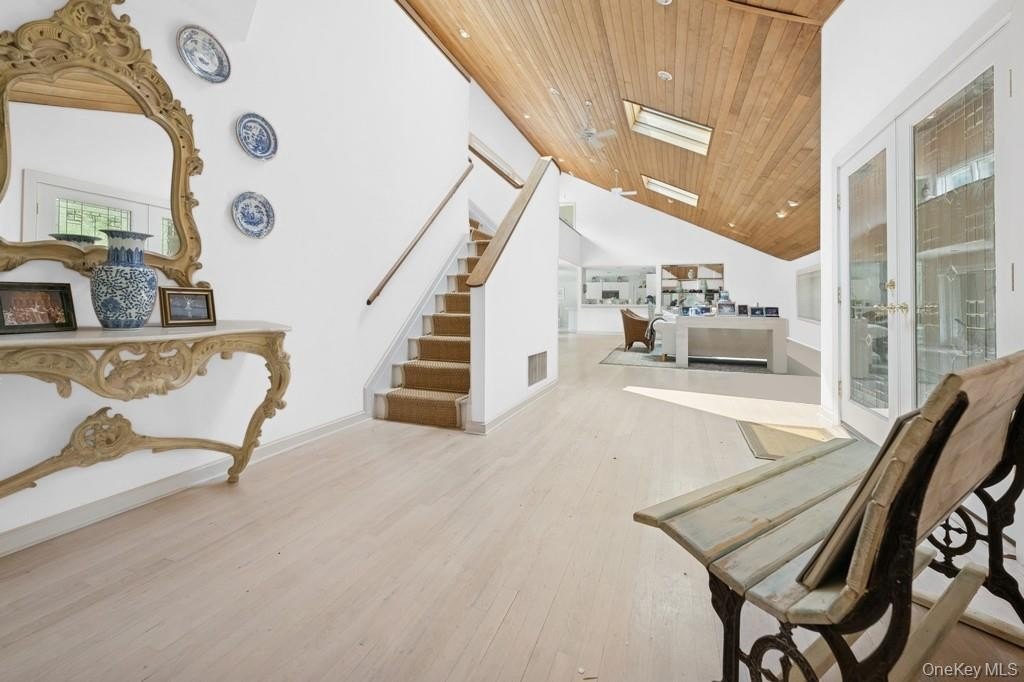 Tucked away on 1.4 acres of lush, landscaped grounds, this bright contemporary residence offers the ultimate Hamptons lifestyle-minutes from scenic bay beaches and local farm stands. A private driveway winds through mature plantings, guiding you to a welcoming retreat where natural light pours through expansive windows and every detail is curated for relaxation and entertainment. With 4,000 square feet of open concept living space, this home seamlessly blends indoor comfort with outdoor luxury. The layout features four spacious ensuite bedrooms, each with private outdoor access that opens directly to the beautifully designed pool area-creating an effortless flow between indoor and outdoor living. The lower level features a state-of-the-art home theater, game room, and fitness area offer plenty of room for recreation and wellness. Step outside to find a true backyard oasis: a large heated pool with sun-drenched lounging areas, a jacuzzi, and a cedar sauna for year-round indulgence. To complete the exterior amenities, a full-size tennis court and covered outdoor dining area. Mortgage Assignable at Low Interest.