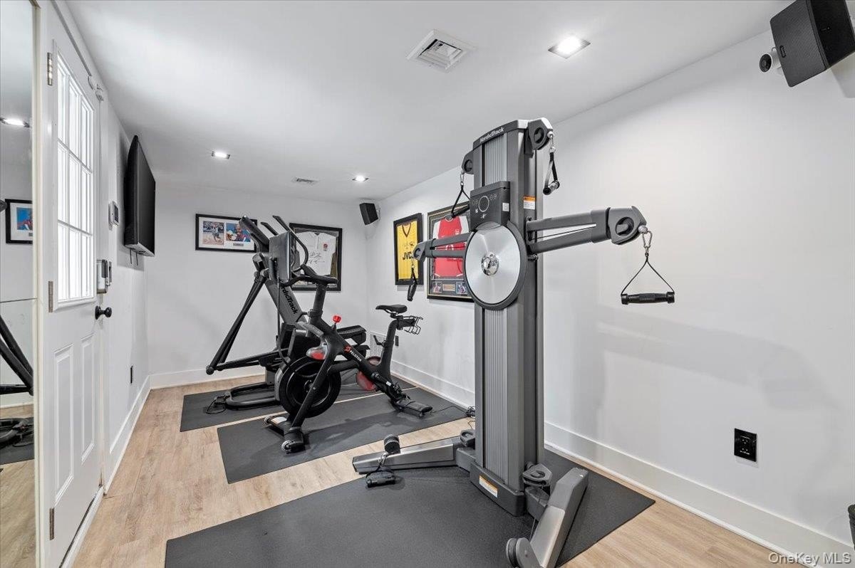 Effortlessly stylish and perfectly located, this four-bedroom, three-bath modern Hamptons home offers the ultimate East End escape-just minutes to East Hampton Village and pristine ocean beaches. Set behind a private driveway framed by boxwoods, the home opens to an airy, open concept living space with a beamed cathedral ceiling and an operable skylight that brings in incredible natural light. A sleek chef's kitchen is outfitted with premium stainless-steel appliances, including a Bosch refrigerator and dishwasher, dual-fuel range, and LG washer/dryer. The adjacent dining area features custom designed floor-to-ceiling bookshelves. Three main-level bedrooms share two beautifully appointed baths, with Thassos marble and glass tile finishes. Downstairs, a finished lower level (included in the total square footage) offers versatile space for a gym, media lounge, or guest suite-complete with a second primary bedroom and full bath. Out back, the private yard is designed for summer living with an 18x48 heated saltwater pool, lush lawn, fruit trees, and garden beds. Entertain with ease at the fully equipped outdoor kitchen, complete with a refrigerator, grill, hot/cold sink, and electric awning for shaded dining. Built-in audio, an outdoor TV, and multiple lounge zones complete the experience. Upgraded throughout, the home includes a Navien three-zone HVAC system with instant hot water, nitrogen septic system for six bedrooms, smart locks, security system, 240V EV charger, and fiber-optic internet. This is a true turn-key retreat in the Hamptons most desirable locations.