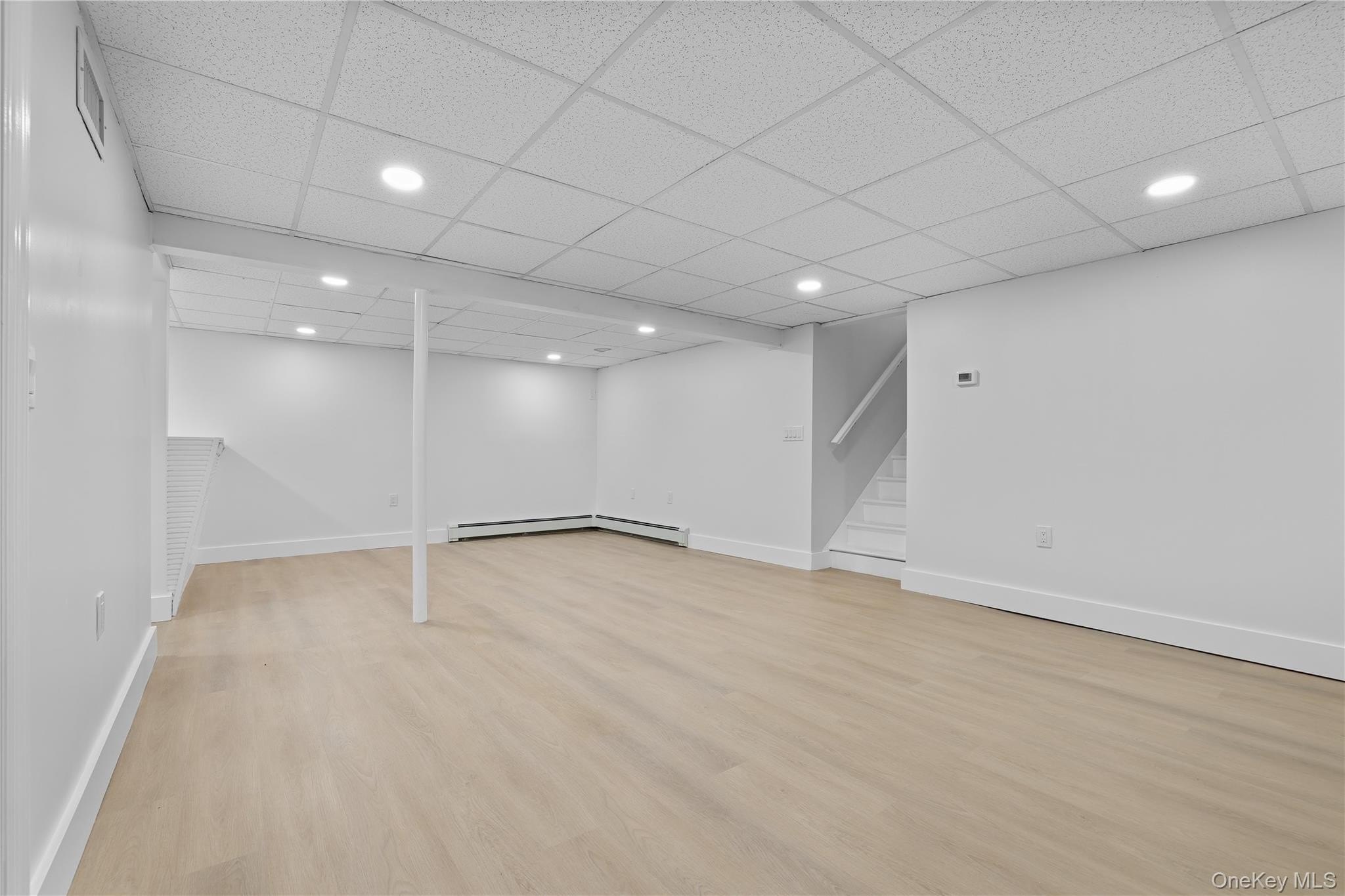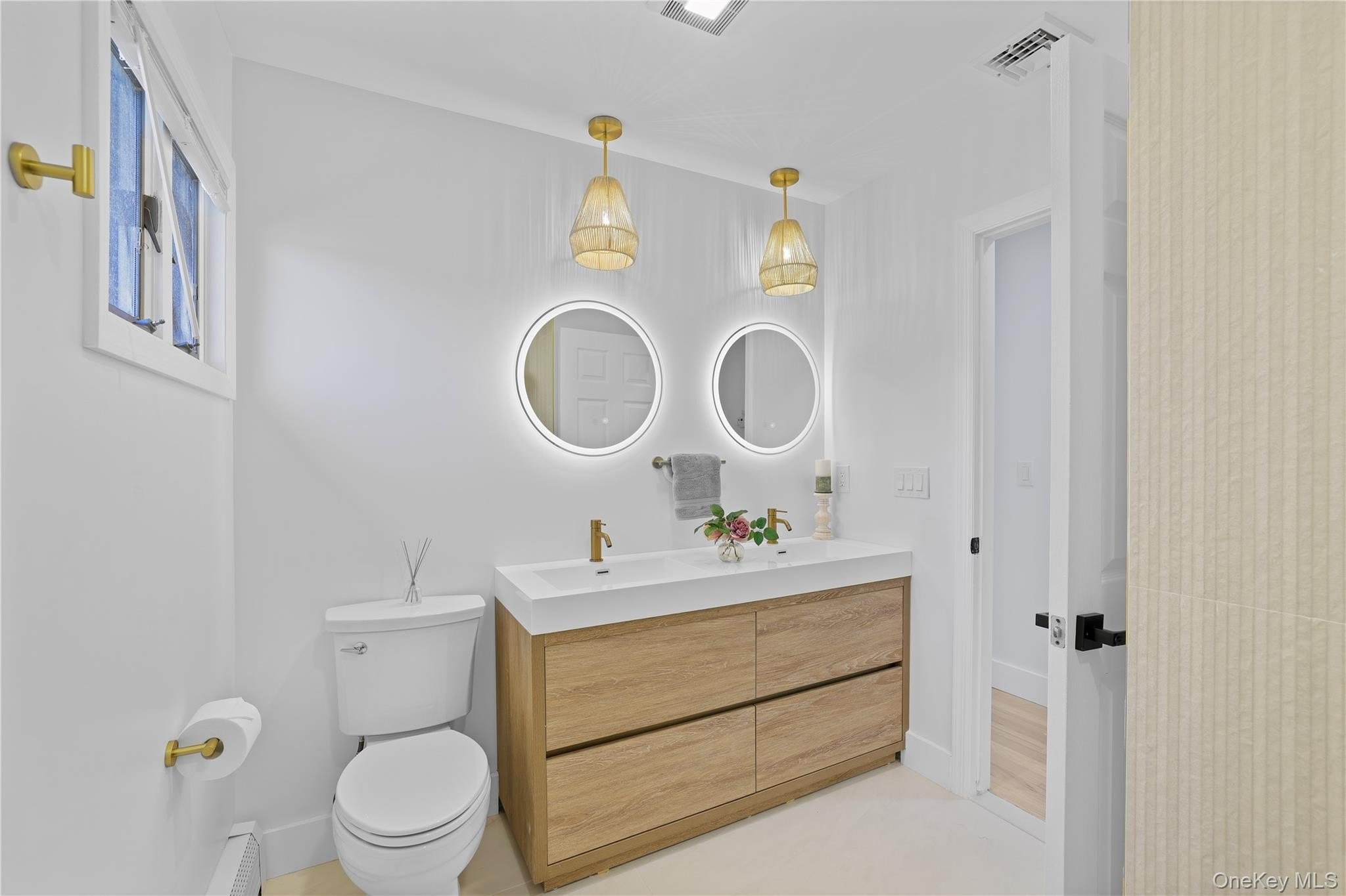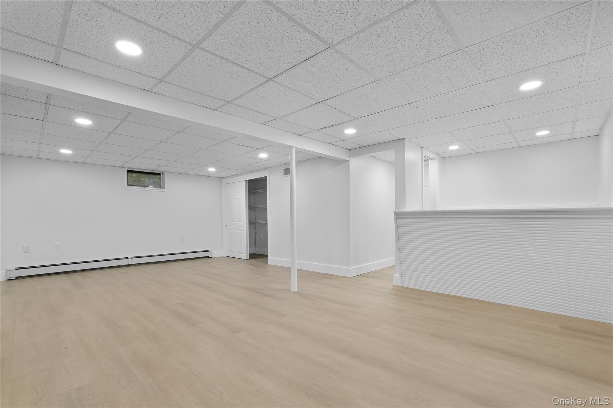 Stunning Fully Renovated Home in the Heart of Hampton Bays: where modern luxury meets everyday comfort. This beautifully renovated 4-bedroom, 3-bath home is thoughtfully designed for both relaxed living and stylish entertaining. At the heart of the home is a gourmet chef's kitchen, featuring top-of-the-line Bosch gas range, hood, quartz countertops, and an oversized 8' x 5' waterfall island with double-sided cabinetry-perfect for prep, dining, and conversation. Additional premium appliances include a French door refrigerator with freezer drawer, microwave drawer, dishwasher, and an XO wine cabinet for your favorite beverages. The open-concept layout flows effortlessly from the kitchen into the spacious dining and living areas, creating the perfect setting for gatherings. Step down into the cozy den with an electric fireplace, custom built-in shelving, and cabinets that add warmth and elegance. A full bath on the main level adds convenience for guests. Upstairs, you'll find four generously sized bedrooms. The primary suite is a private retreat with a spa-like ensuite bath featuring a soaking tub, double vanity, and a walk-in closet. A second full bath with double vanity serves the additional bedrooms. Additional Highlights: LOW TAXES ! Central air. Dedicated laundry/mudroom with sink, cabinetry, and direct access to the 2-car garage. Beautiful hardwood and luxury vinyl flooring throughout. Fully finished basement with a stylish wet bar; ideal for entertaining or bonus living space. Expansive backyard with multilevel deck and partial white vinyl fencing; perfect for outdoor entertaining and play. New roof! Energy-efficient stainless steel appliances. Low-maintenance, move-in-ready living. Located just minutes from the beach, marinas, shops, and dining, this turnkey home offers the perfect blend of coastal charm and modern design. Don't miss your opportunity to own this exceptional property in Hampton Bays!