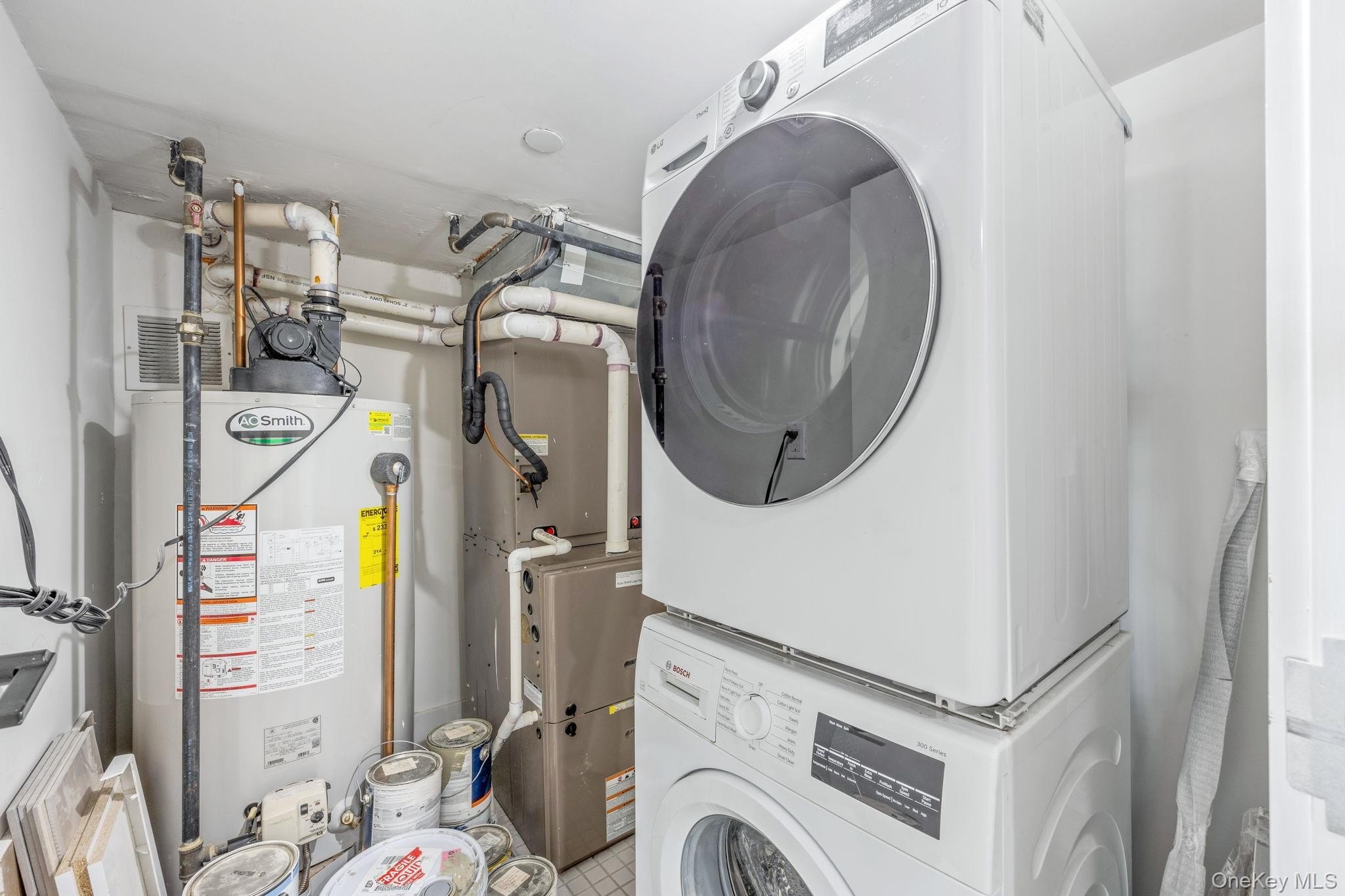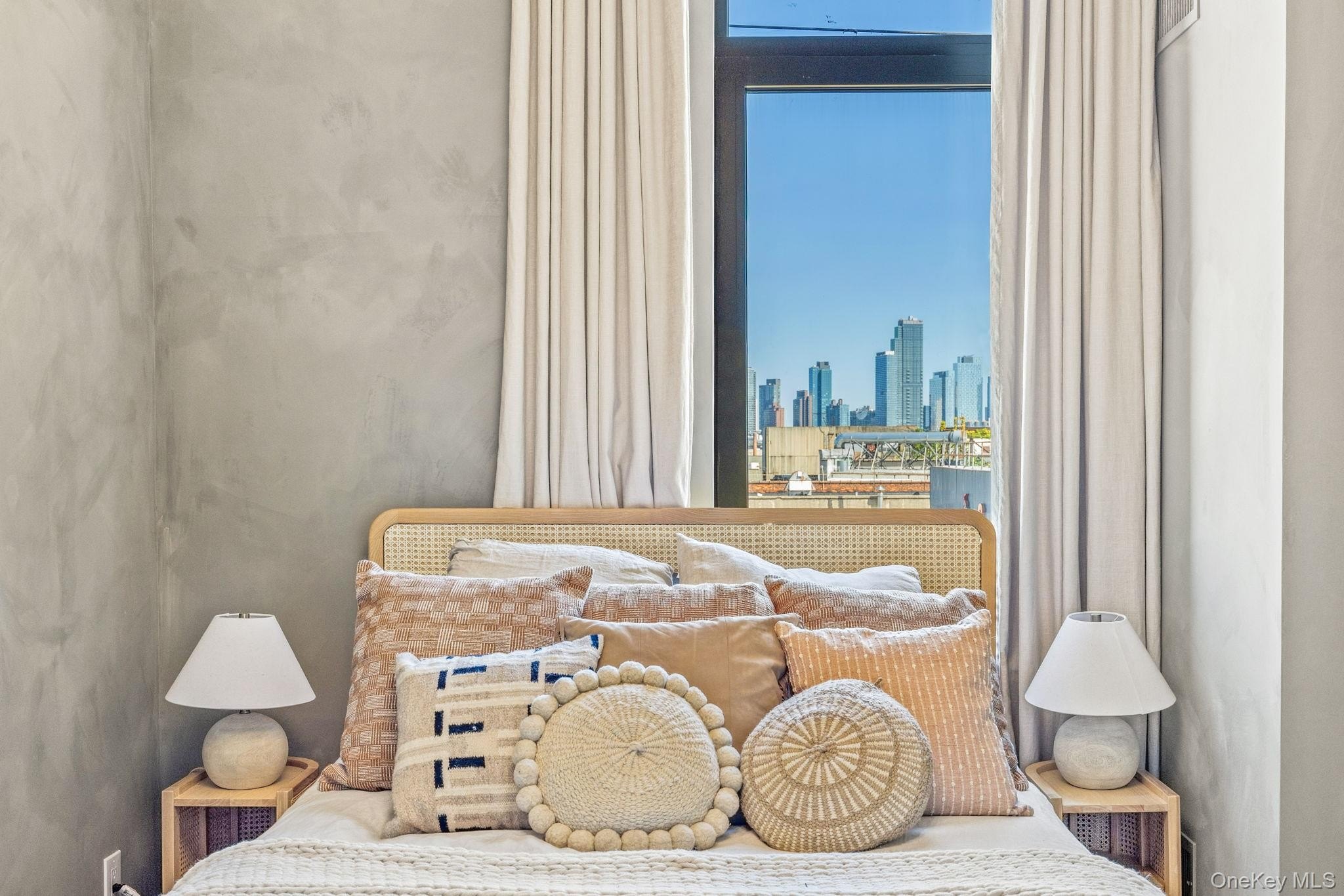 Exceptional 1BR/2BTH + Office Duplex Condo in Greenpoint! This sun-filled 1BR/2BTH condo is a thoughtfully reimagined duplex where modern luxury meets custom design in the heart of Greenpoint. This unit offers soaring 14-foot ceilings, curated finishes, and an effortless blend of style and functionality, all within a boutique 7-unit condominium. Step inside through a foyer accented with shiplap detailing and custom hooks, leading into a chef's kitchen outfitted with Miele and Bosch stainless steel appliances, quartz countertops, and soft-close cabinetry with a stone backsplash. Just off the entry, two oversized closets provide abundant storage. The spacious living room boasts new ceiling boards, custom built-in library shelving, and striking board-and-batten millwork across every wall. From here, step onto your private balcony with open skyline views, perfect for morning coffee or evening unwinding. The bedroom has been freshly painted in a sophisticated Forrest Green limewash, complemented by all-new millwork in the massive closet, blackout curtains, and a woven statement light fixture. The main bathroom offers spa-like tranquility with a deep soaking tub, bidet toilet seat with remote, and integrated Bluetooth speaker lighting. Upstairs, discover a versatile office/guest room with designer touches: full board-and-batten walls, wallpapered ceiling, and a shiplap accent wall. The second bathroom features a rainfall shower with body jets and Bluetooth speaker lighting. A dedicated laundry room with washer/dryer sits conveniently next to the bathroom, providing modern comfort and practicality. Additional highlights include: - Upstairs office can also be a flex second bedroom or guest room - Low common charges of only $492/mth - Brand new HVAC condenser controlled by Nest - ButterflyMX video intercom system with smartphone access - Thoughtful lighting throughout, including illuminated stairwell - Common rooftop deck with panoramic skyline views and a stunning vantage of the Kosciuszko Bridge With its flawless renovations, boutique setting, and rooftop amenities, this condo is a true turnkey home in one of Brooklyn's most vibrant neighborhoods. *Disclaimer: All Information provided is deemed reliable but is not guaranteed and should be independently verified.